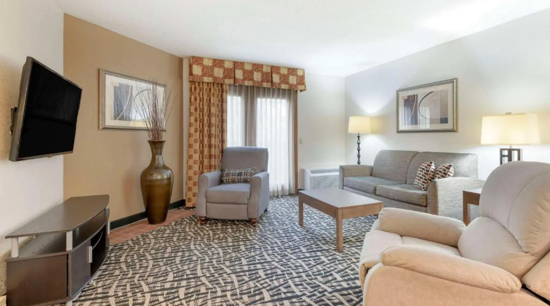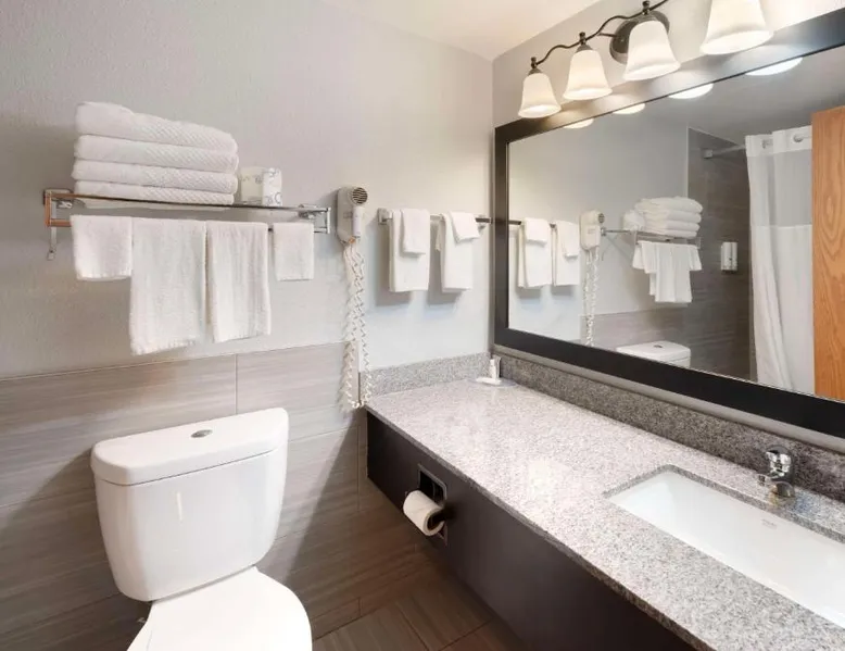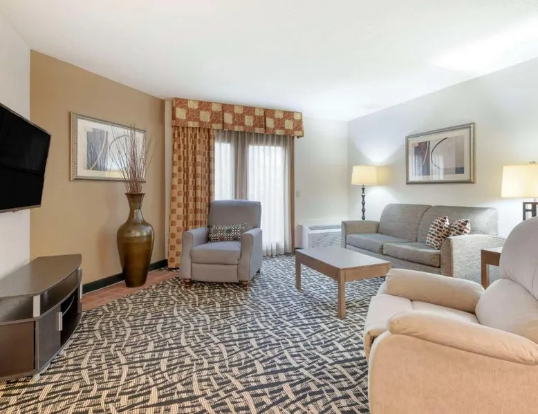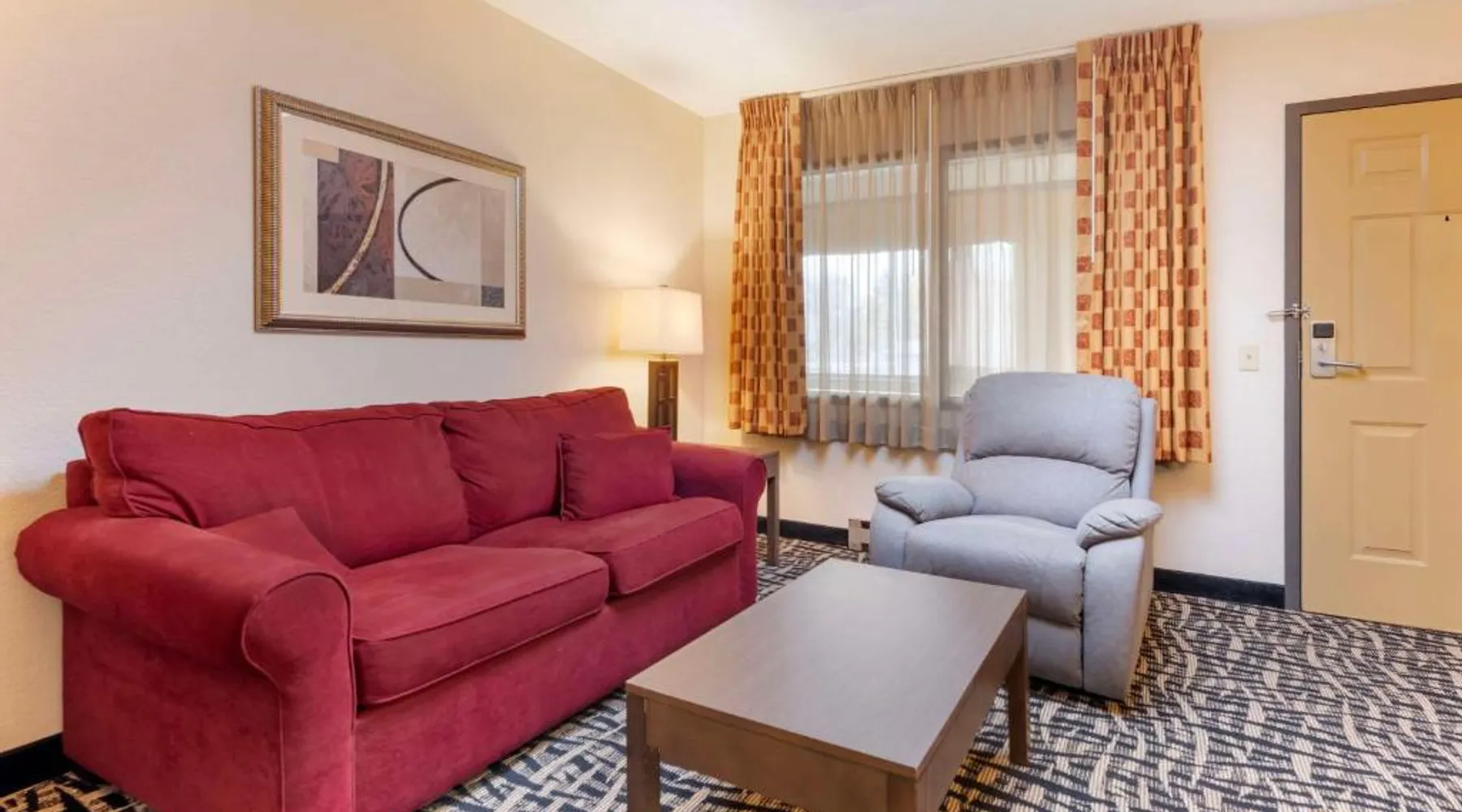 Comfortable Accommodations: Quality Inn & Suites Mayo Clinic Area in Rochester offers family rooms with air-conditioning, kitchenettes, and free WiFi. Each room includes a work desk, sofa bed, and seating area. Convenient Facilities: Guests benefit from a 24-hour front desk, free on-site parking, and a breakfast featuring fresh pastries, fruits, and juice. Additional amenities include a bath with a walk-in shower. Prime Location: Located 6.2 mi from Rochester International Airport, the hotel is near attractions such as Plummer Building (1.9 mi) and Mayo Civic Center (2.1 mi). Boating is available in the surrounding area. Guest Satisfaction: Highly rated for room comfort, value for money, and breakfast provided by the property. In the kitchenette, guests will find a refrigerator, a microwave and a toaster. The spacious air-conditioned suite offers a flat-screen TV with cable channels, a tea and coffee maker, a seating area and a safe deposit box. The unit has 2 beds.