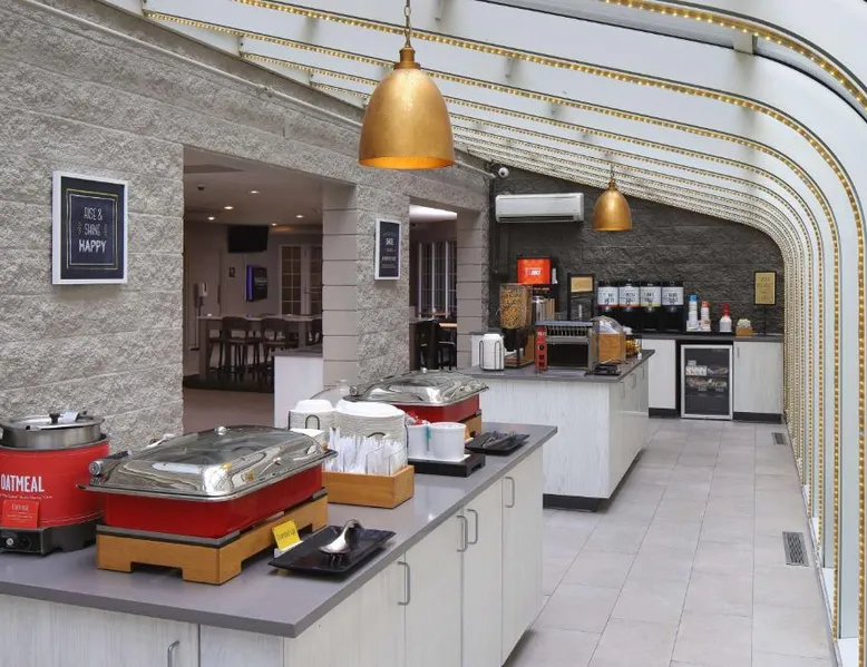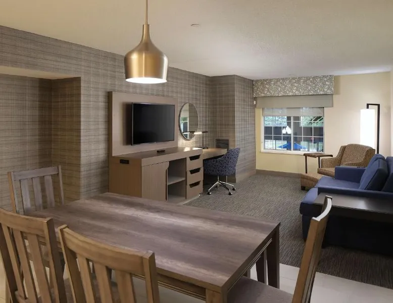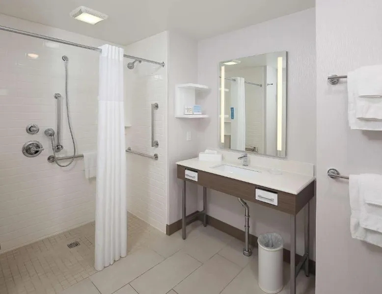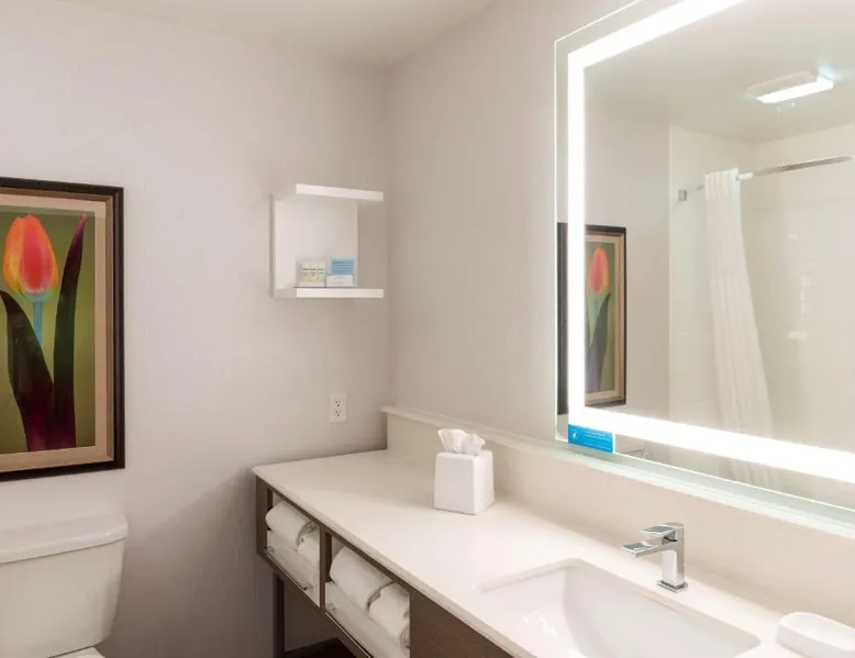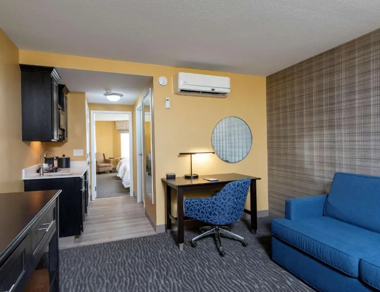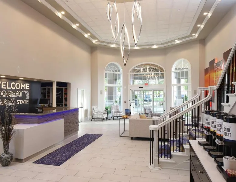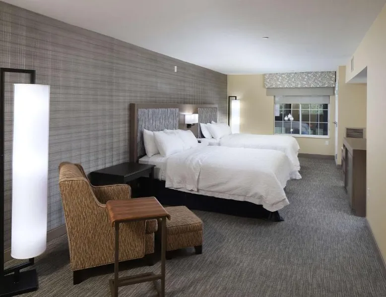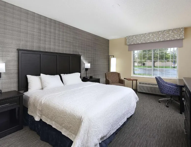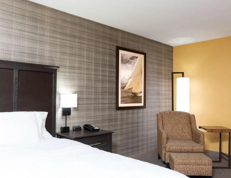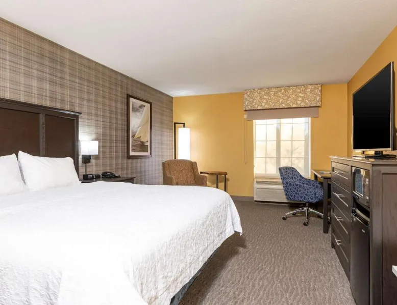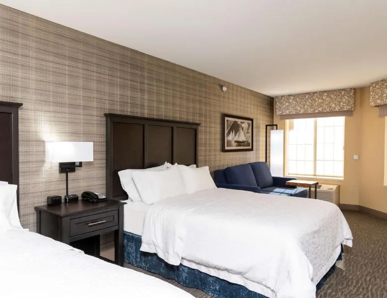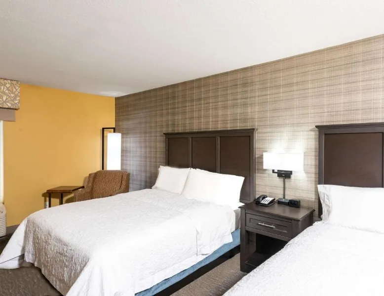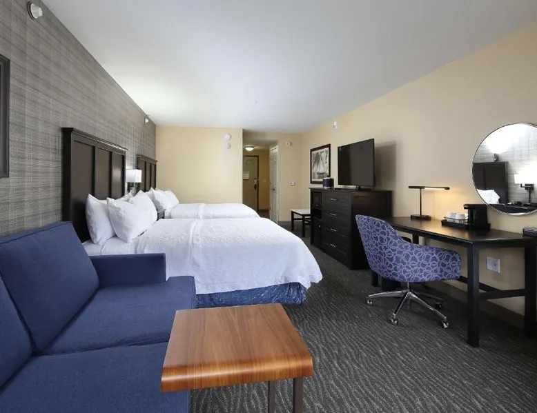 This Holland, Michigan hotel offers a free breakfast and free high-speed internet access. Hope College and the Holland Museum are just a short drive from the hotel. At the Hampton Inn Holland hotel, every room comes with a coffee maker. A work desk is included in every guestroom. Other amenities in each room include cable TV. On-site at the Holland Hampton Inn hotel are a basketball court and a fitness room. An indoor pool and a tennis table are also on-site. The hotel offers a video arcade and a pool table. Windmill Island and the Tulip Gardens are minutes from the Holland, Michigan Hampton Inn hotel. Gentex Corporation - Corporate Headquarters is a short drive from the hotel. This family room features a tea and coffee maker and a flat-screen TV. The unit has 3 beds.
