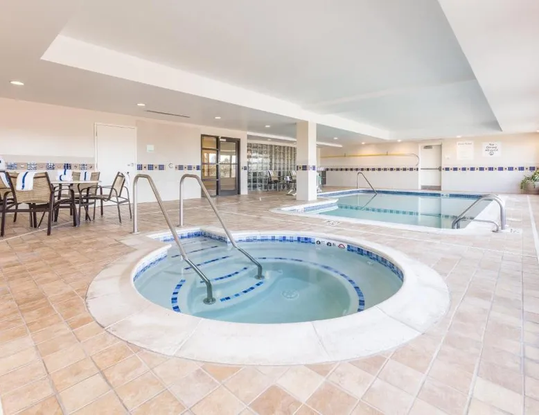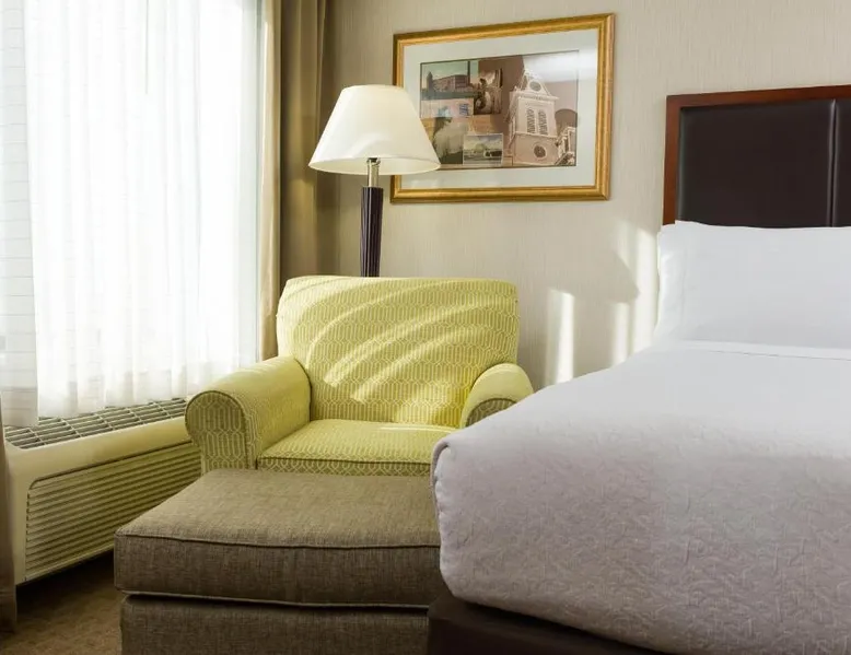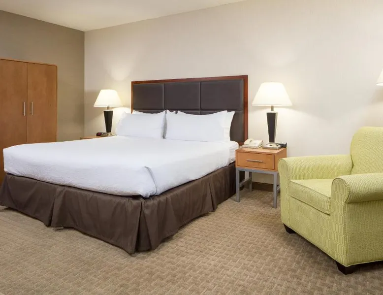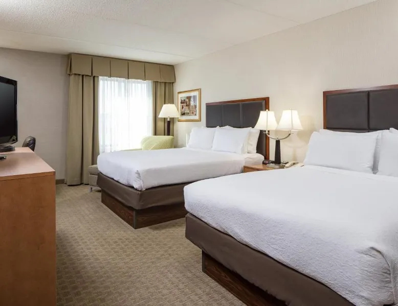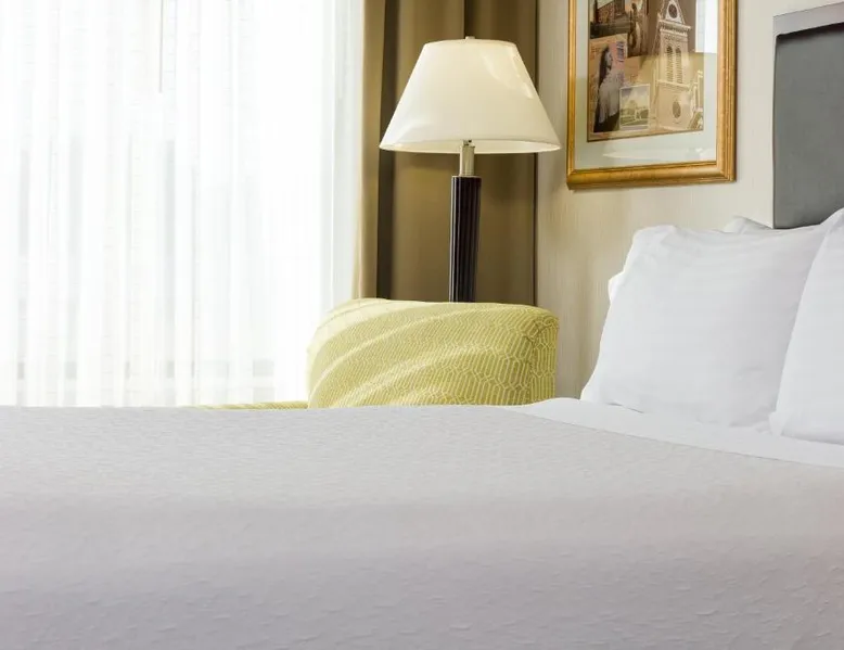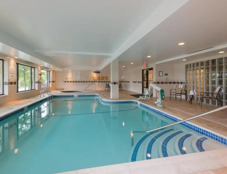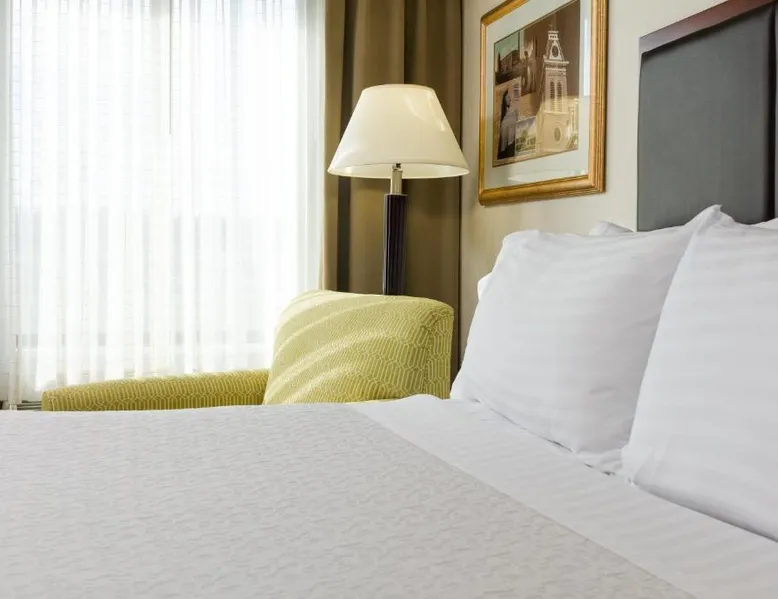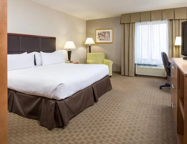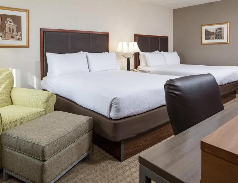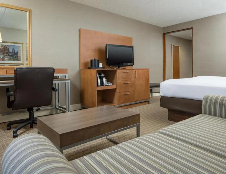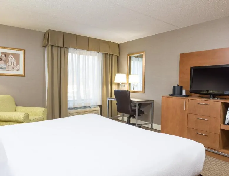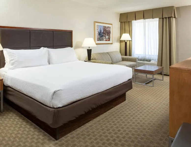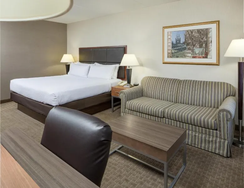 Comfortable Accommodations: Holiday Inn Manchester Airport by IHG in Manchester offers air-conditioned rooms with private bathrooms, free WiFi, and modern amenities. Each room includes a work desk, TV, and complimentary toiletries. Dining and Leisure: Guests can enjoy an American restaurant serving lunch and dinner with vegetarian, vegan, gluten-free, and dairy-free options. The on-site fitness center, indoor swimming pool, and hot tub provide leisure activities. Convenient Location: Located 3.1 mi from Manchester Boston Regional Airport, the hotel is near attractions such as Mall Of New Hampshire (2.5 mi) and State Park (5.6 mi). Free airport shuttle service and paid on-site private parking are available. Room includes sofa bed.