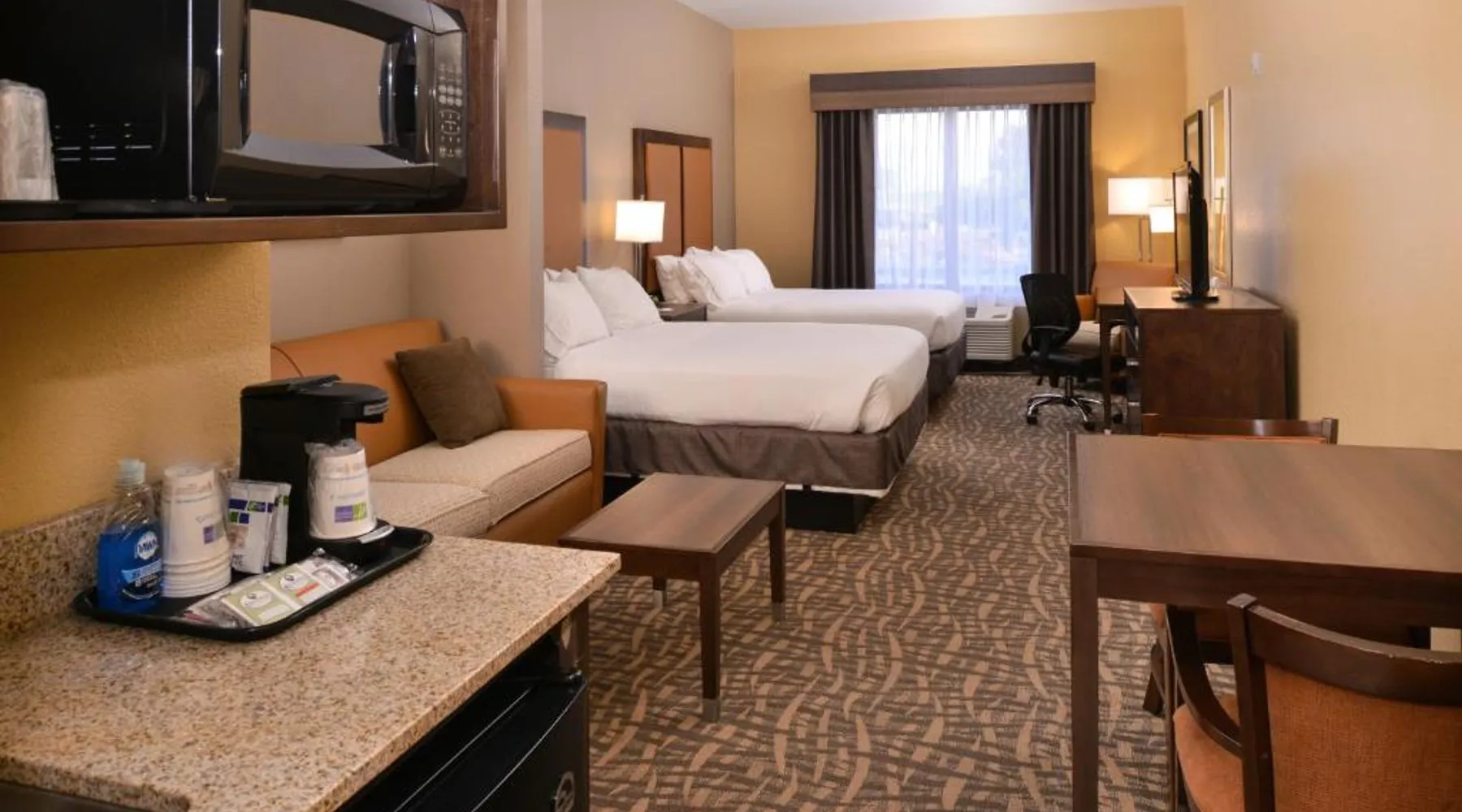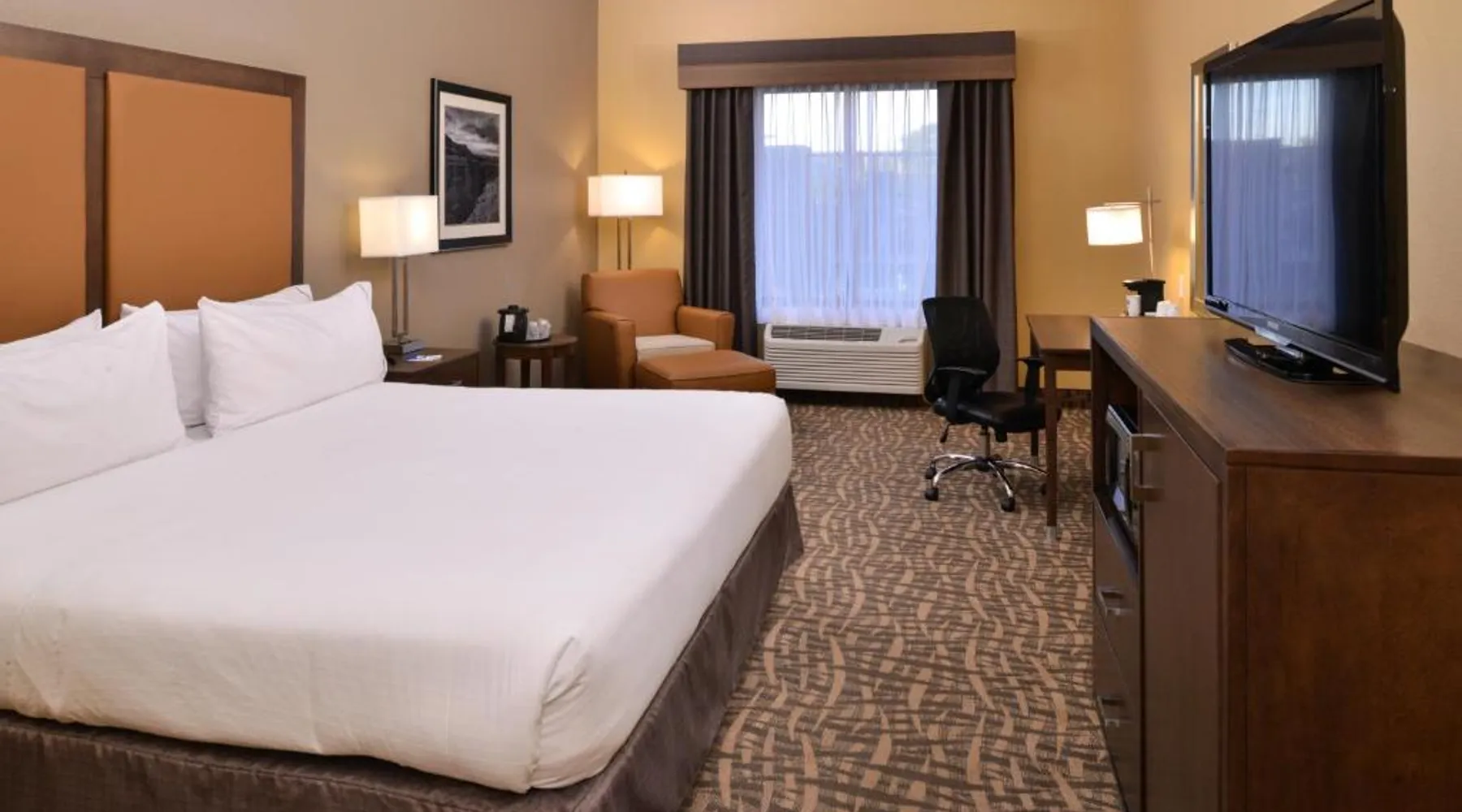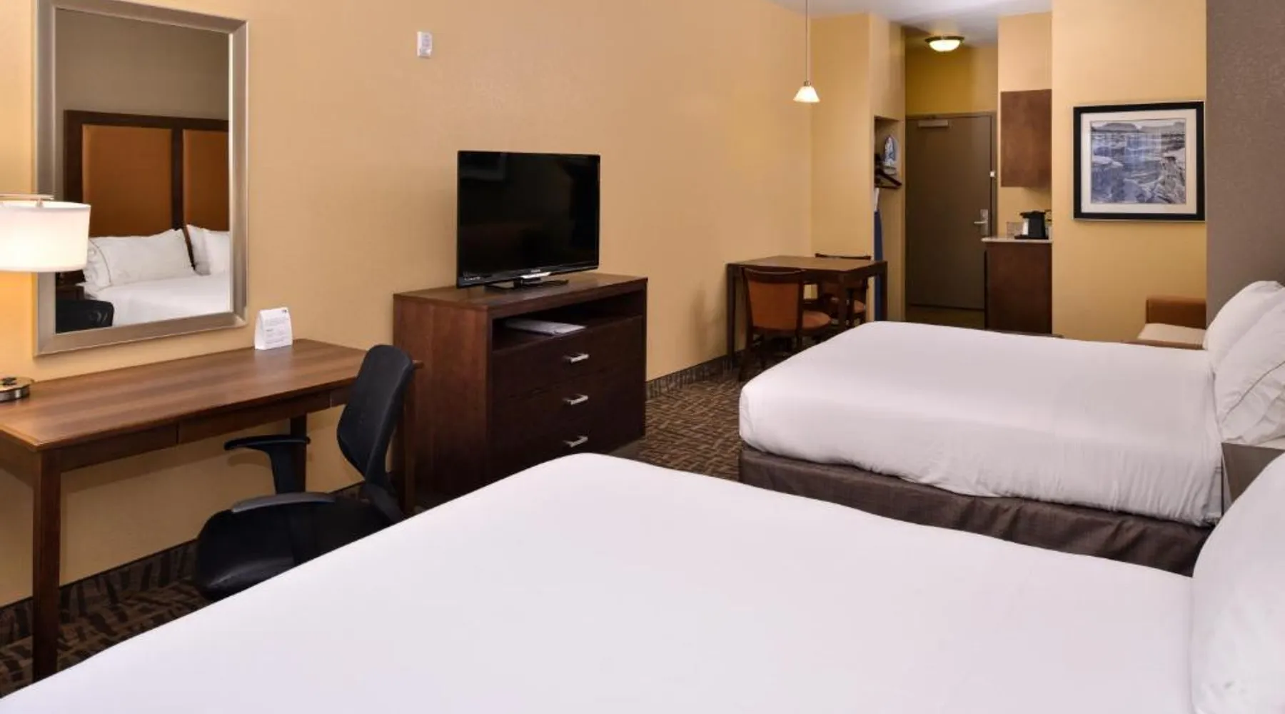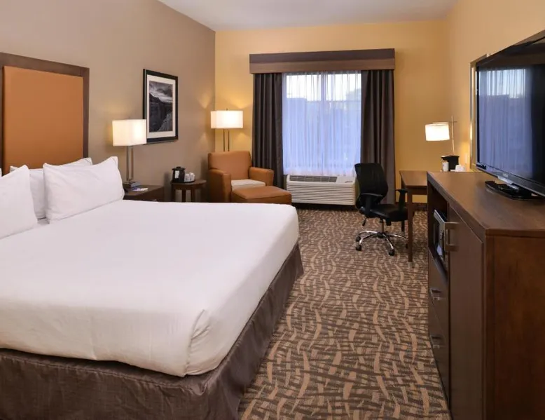 Featuring an outdoor pool, this hotel is in Page. Each room has free Wi-Fi and a flat-screen cable TV. Wahweap Marina is a 15-minute drive from the hotel. A free breakfast is served daily. A sitting area with a work desk, a small refrigerator and coffee-making facilities are available in all guest rooms at Holiday Inn Express Hotels Page. A private bathroom with a hairdryer is also included. Guests can take advantage of a fitness center and a business center at Page Holiday Inn Express Hotels. Laundry facilities are also available. The property provides free parking. Lake Powell is a 5-minute drive from the hotel. Wahweap Airport is 9 miles from Holiday Inn Express Hotels Page. Free WiFi, a flat-screen cable TV and a microwave are featured in this room. An private bathroom with a hairdryer is also included.