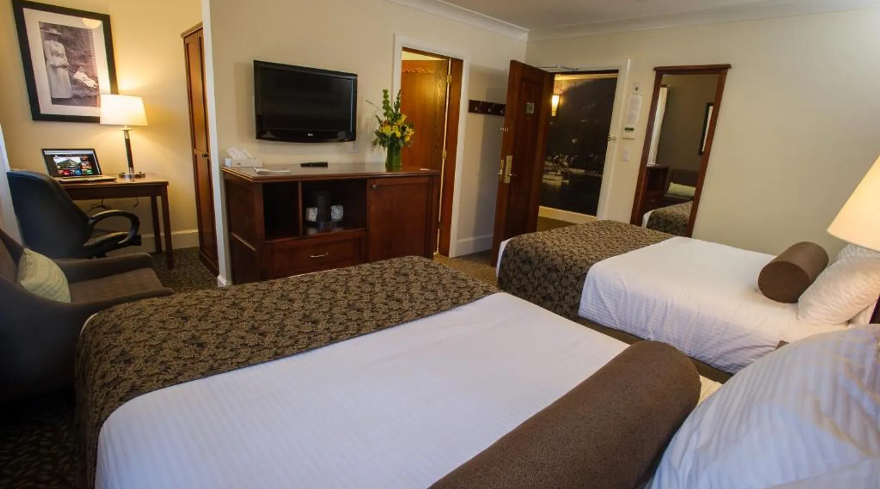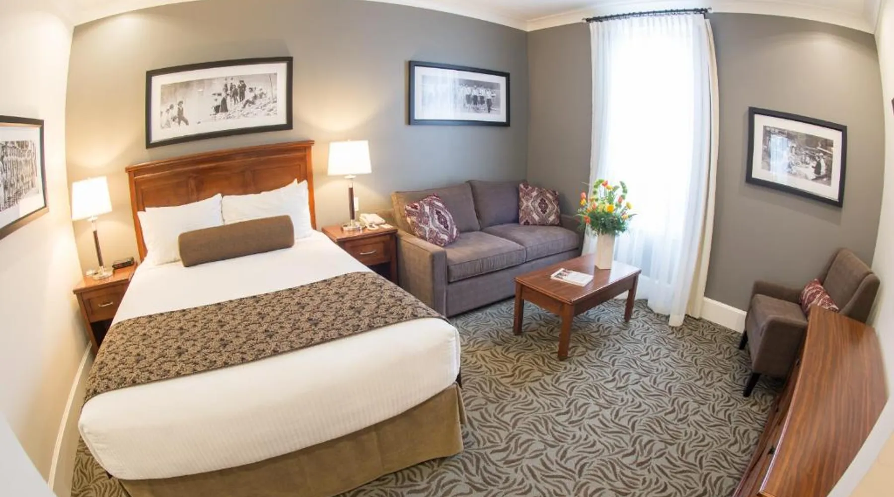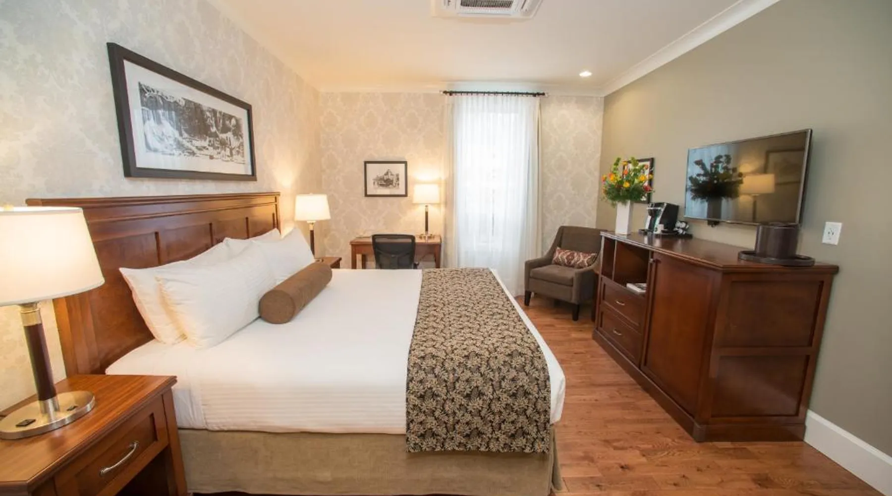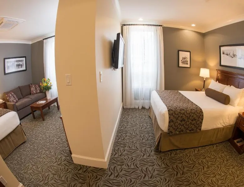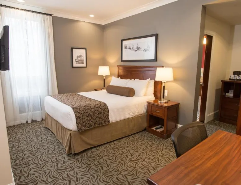 This restored heritage property in Nelson features on-site dining options. Breakfast and free Wi-Fi are provided. Whitewater Ski Resort is just 9.3 mi away. Cable TV and a desk are furnished in each room at Hume Hotel. The traditionally styled rooms feature warm colors. They offer a small fridge and ironing facilities. The Hume Hotel offers breakfast service daily from 7 am until 10 am. Guests can also enjoy a full lunch or dinner in any of our establishments, as well as drinks late into the evening. We also have an on-site Liquor Boutique for all your beverage needs, open daily until 11 pm. Granite Pointe Golf Club is 5 minutes’ drive away. Kootenay Lake is 1969 ft from Hume Hotel. This 4th floor corner room offers a sofa bed, coffee maker, iron and ironing board and small fridge. It features hardwood floors, vaulted ceiling, 2 TVs, granite countertops and Rapunzel windows that open up to a panoramic view of the city, lake and mountains. Parking is included with all Premium Suites.