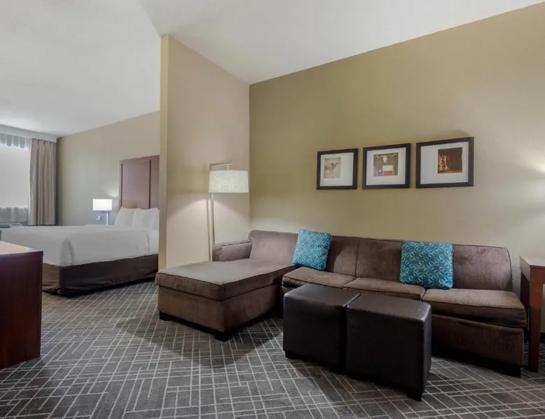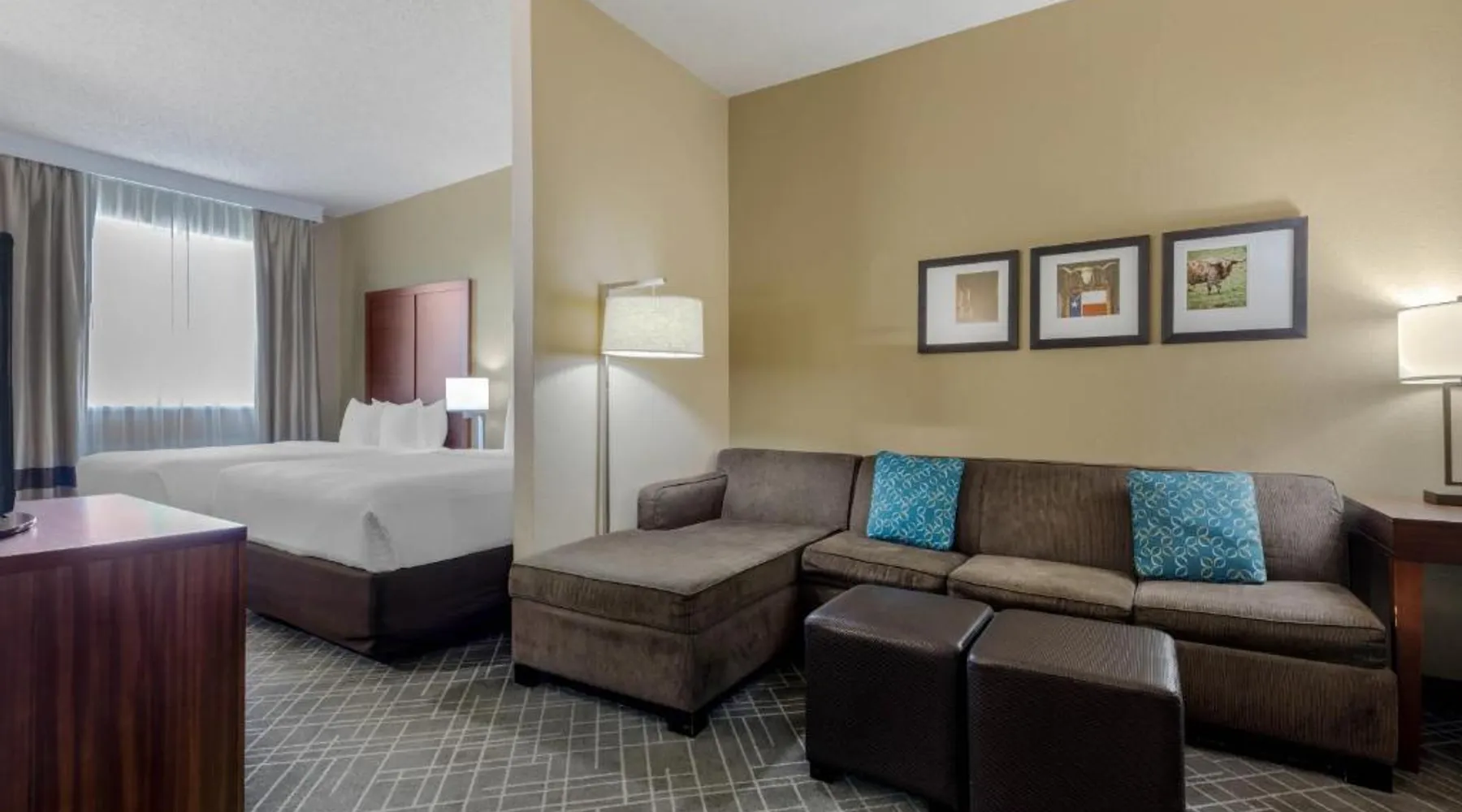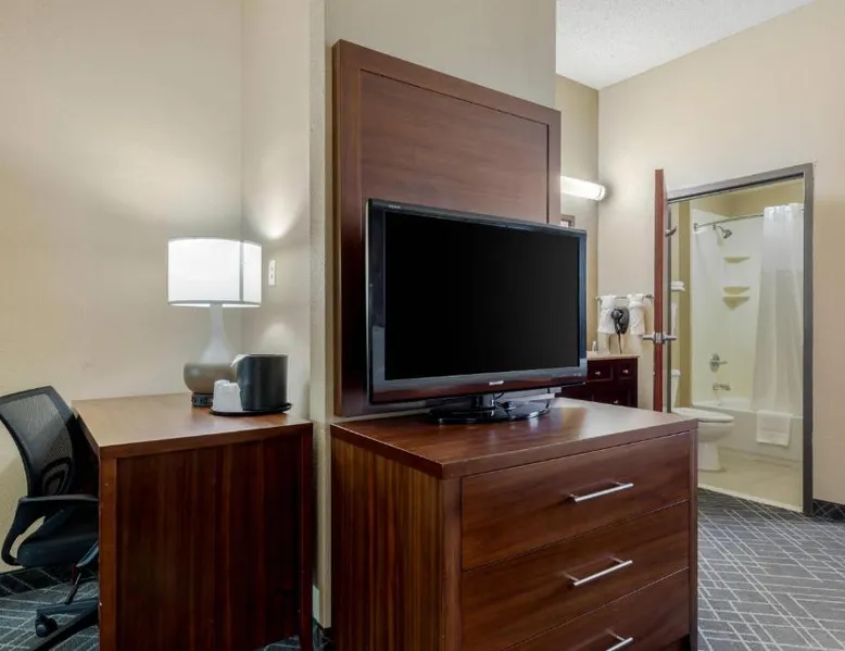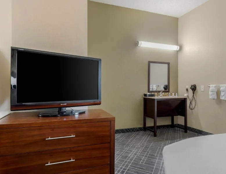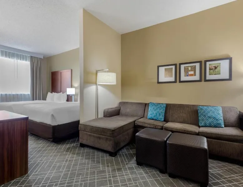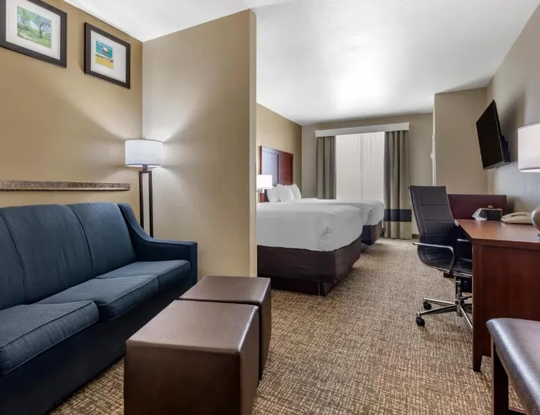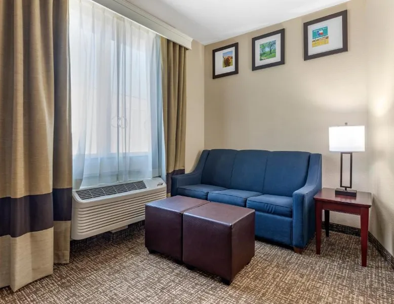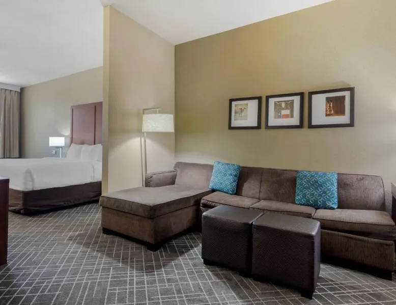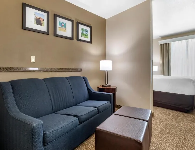 Centrally located in Waco, TX, the Comfort Suites hotel is less than five minutes away from some of the area’s most popular attractions including Baylor University and the New Baylor Football Stadium. This hotel also offers easy access to Cameron Park & Zoo and Hawaiian Falls Water Park. Other nearby attractions include: Dr. Pepper Museum, Texas Sports Hall of Fame, Texas State Technical College and Riverbend Park. Guests of the hotel are invited to relax in the indoor heated pool and whirlpool or grab a work out in the fitness center. Comfortable interior halls provide safe and easy room access. The meeting room can accommodate up to 50 people for banquets. Other amenities include: Free wireless high-speed Internet access, free daily newspaper and Business Center. Your Morning Breakfast is full of hot options to start your day. Enjoy our free hot breakfast featuring eggs, meat, yogurt, fresh fruit, cereal and more, including your choice of hot waffle flavors. If you're leaving early, a Your Suite Success Grab & Go bag is available for the two hours prior to breakfast. All spacious guest suites offer a flat-screen television with cable, a desk, coffee maker, refrigerator, microwave, hair dryer, alarm clock, iron and ironing board. Some rooms feature a sofa sleeper. This is a nonsmoking hotel. The spacious twin/double room features air conditioning, soundproof walls, as well as a private bathroom boasting a bath and a shower. The twin/double room's kitchenette, which features a refrigerator and a microwave, is available for cooking and storing food. This twin/double room has a tea and coffee maker, a seating area, TV with cable channels, as well as wine/champagne for guests. The unit has 3 beds.