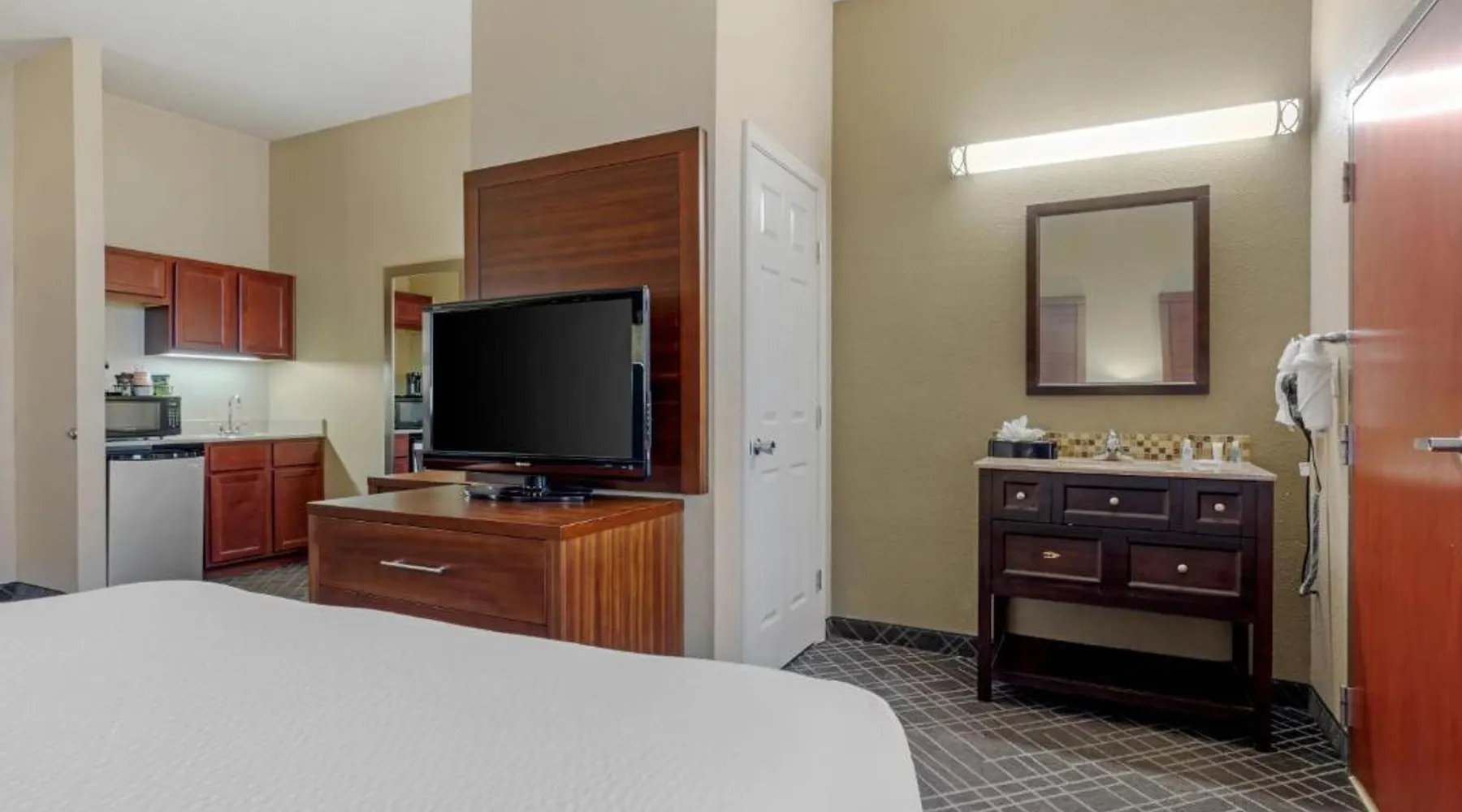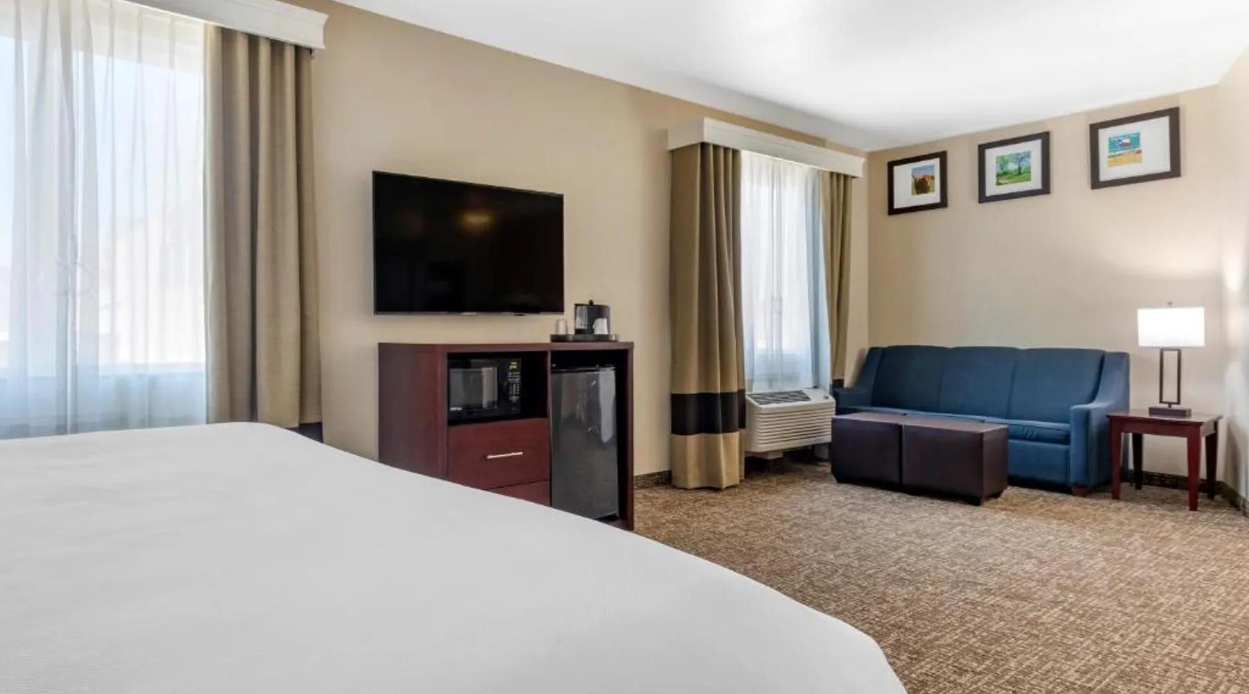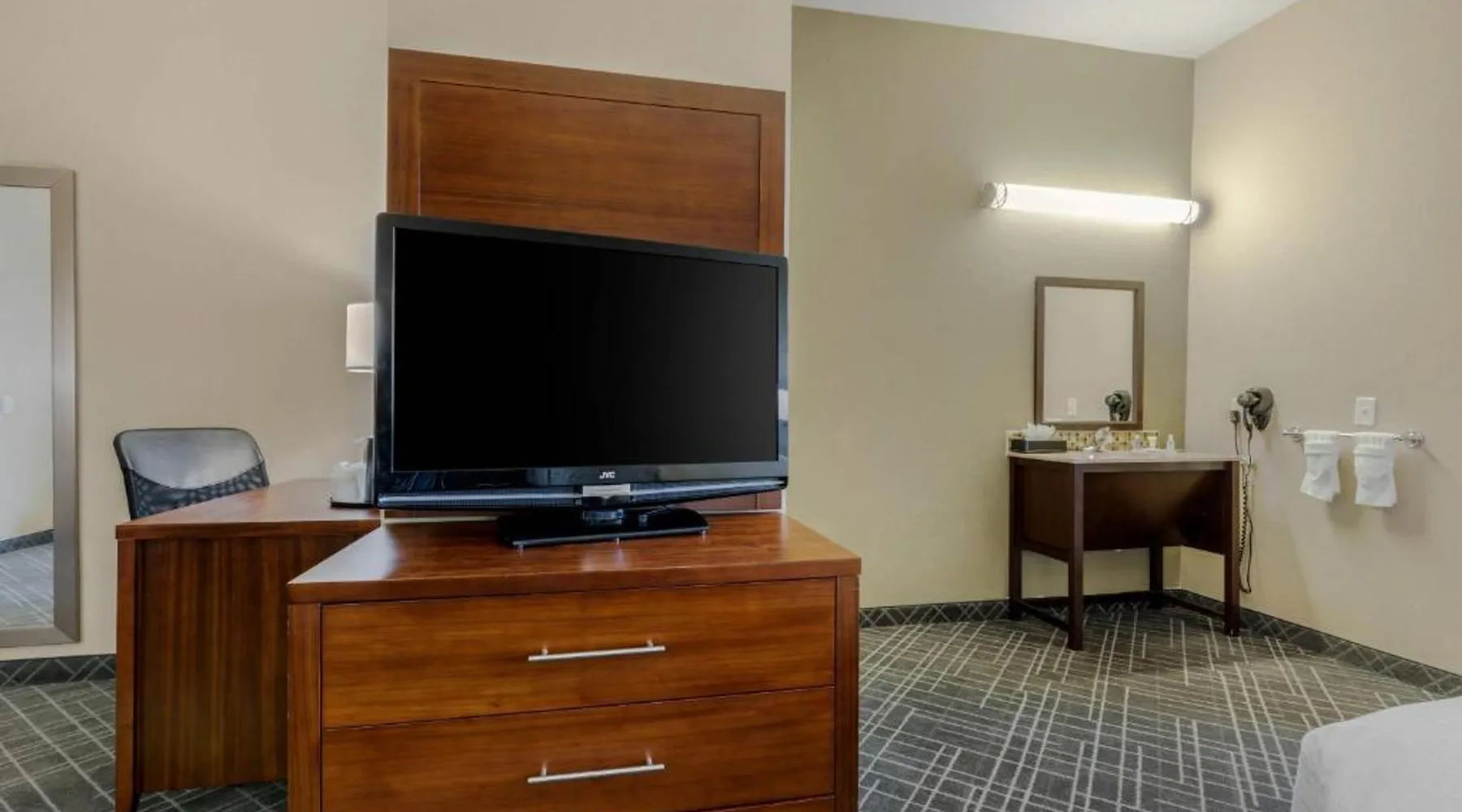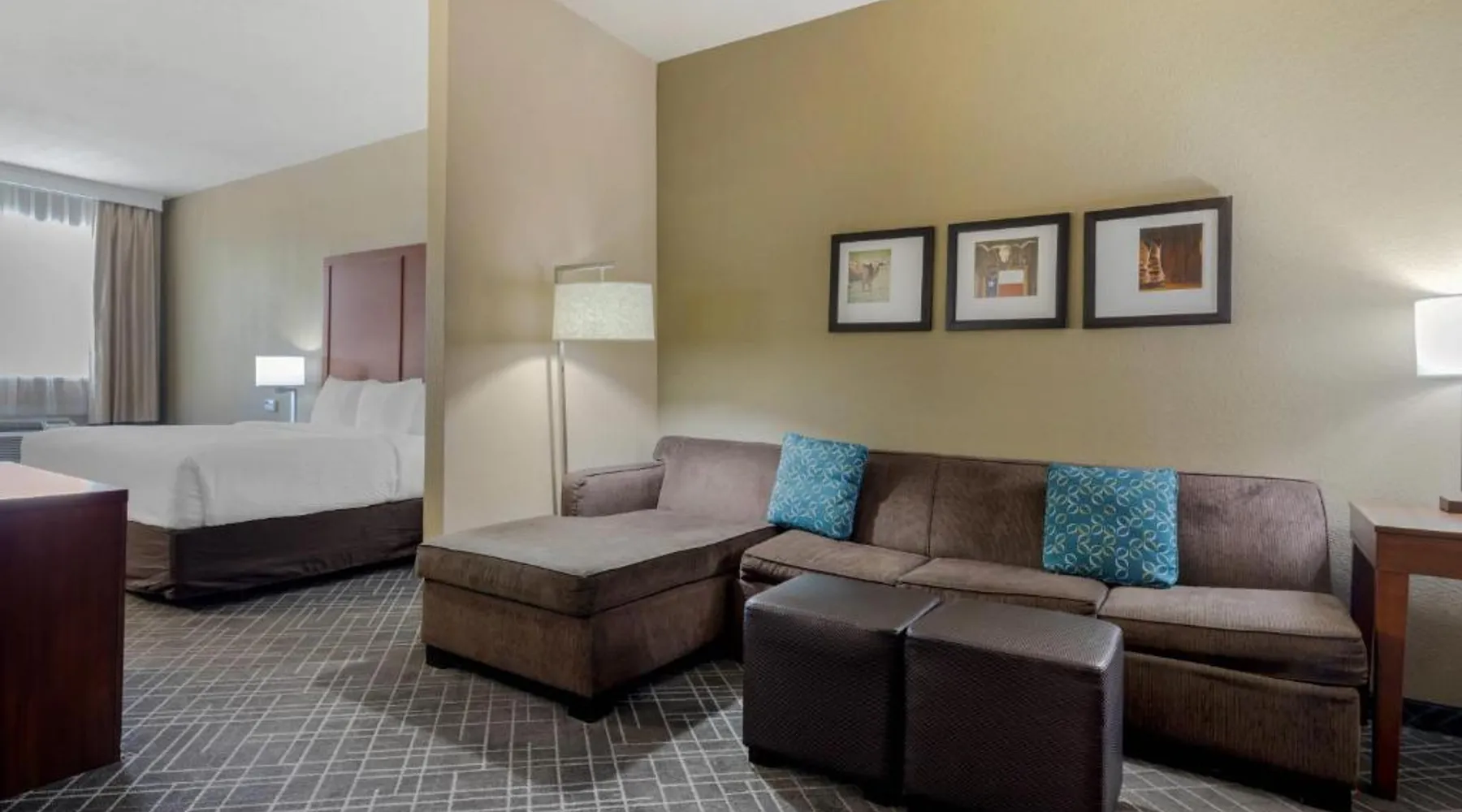 Centrally located in Waco, TX, the Comfort Suites hotel is less than five minutes away from some of the area’s most popular attractions including Baylor University and the New Baylor Football Stadium. This hotel also offers easy access to Cameron Park & Zoo and Hawaiian Falls Water Park. Other nearby attractions include: Dr. Pepper Museum, Texas Sports Hall of Fame, Texas State Technical College and Riverbend Park. Guests of the hotel are invited to relax in the indoor heated pool and whirlpool or grab a work out in the fitness center. Comfortable interior halls provide safe and easy room access. The meeting room can accommodate up to 50 people for banquets. Other amenities include: Free wireless high-speed Internet access, free daily newspaper and Business Center. Your Morning Breakfast is full of hot options to start your day. Enjoy our free hot breakfast featuring eggs, meat, yogurt, fresh fruit, cereal and more, including your choice of hot waffle flavors. If you're leaving early, a Your Suite Success Grab & Go bag is available for the two hours prior to breakfast. All spacious guest suites offer a flat-screen television with cable, a desk, coffee maker, refrigerator, microwave, hair dryer, alarm clock, iron and ironing board. Some rooms feature a sofa sleeper. This is a nonsmoking hotel. The spacious twin/double room features air conditioning, soundproof walls, as well as a private bathroom boasting a bath and a shower. The twin/double room's kitchenette, which features a refrigerator and a microwave, is available for cooking and storing food. This twin/double room has a tea and coffee maker, a seating area, TV with cable channels, as well as wine/champagne for guests. The unit has 3 beds.