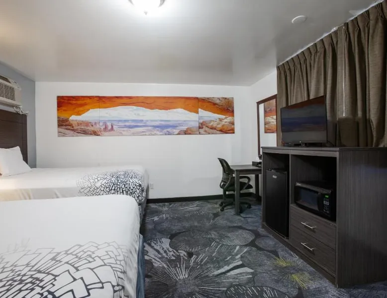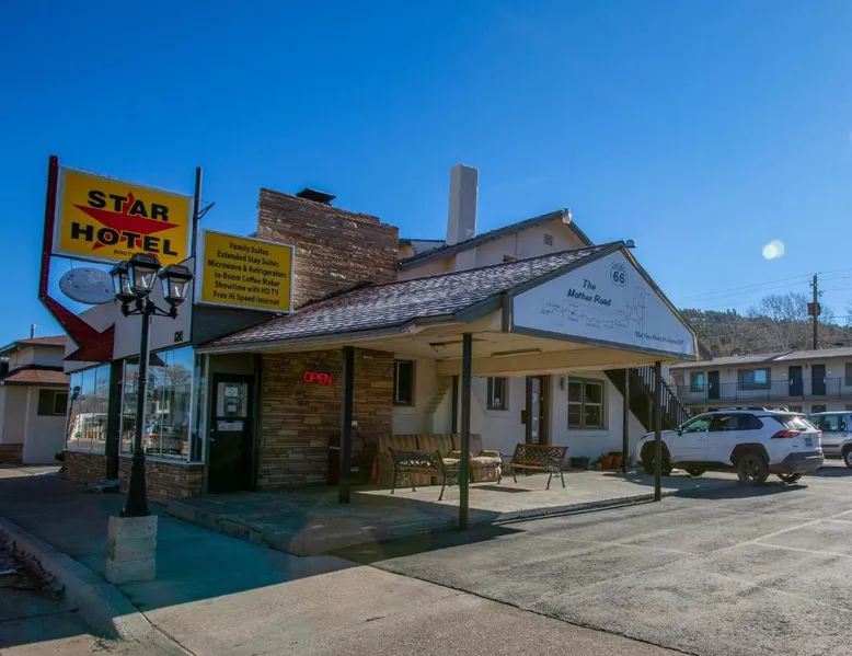 Comfortable Accommodations: Star Route 66 Grand Canyon in Williams offers family rooms with air-conditioning, private bathrooms, and free WiFi. Each room includes a coffee machine, refrigerator, work desk, TV, and free toiletries. Convenient Facilities: Guests enjoy free on-site private parking, an outdoor seating area, and express check-in and check-out services. Housekeeping service ensures a pleasant stay. Prime Location: Located 35 mi from Flagstaff Pulliam Airport, the motel provides a convenient base for city trips. Guests appreciate the value for money and the property's suitability for city visits. This air-conditioned family room is consisted of of a flat-screen TV with satellite channels and a private bathroom. The unit has 2 beds.