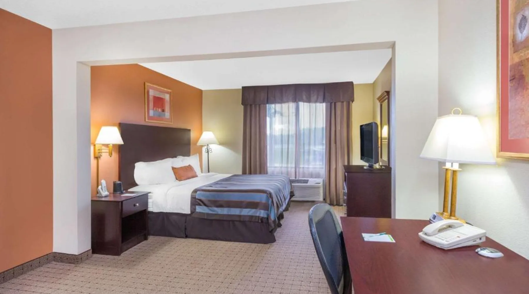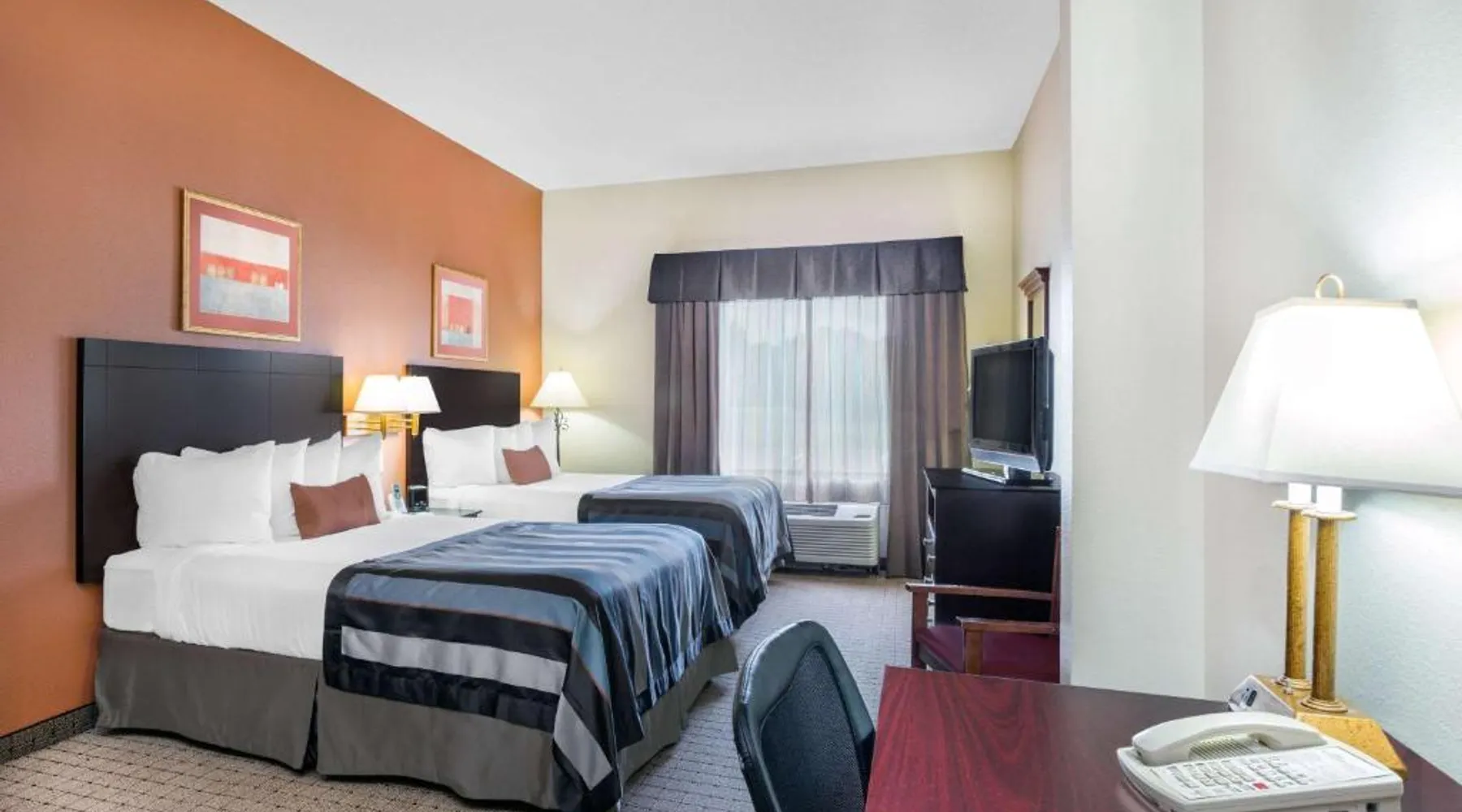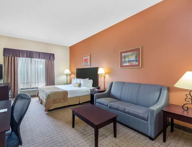 Comfortable Accommodations: Wingate by Wyndham West Monroe in West Monroe offers family rooms with air-conditioning, private bathrooms, and free WiFi. Each room includes a bath, shower, TV, and wardrobe. Facilities and Services: Guests can enjoy a fitness center, elevator, 24-hour front desk, daily housekeeping, express check-in and check-out, and free off-site parking. Additional amenities include a coffee machine, refrigerator, and free toiletries. Convenient Location: Located 8.7 mi from Monroe Regional Airport, the hotel is near attractions such as Ike Hamilton Expo Center (2.4 mi) and Kiroli Park (2.7 mi). Guests appreciate the convenient location and excellent service. This room features a microwave, refrigerator, and coffee machine. A flat-screen TV is also provided. An in-room safe, 2 telephones and ironing facilities are included.