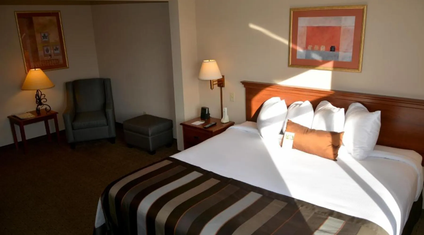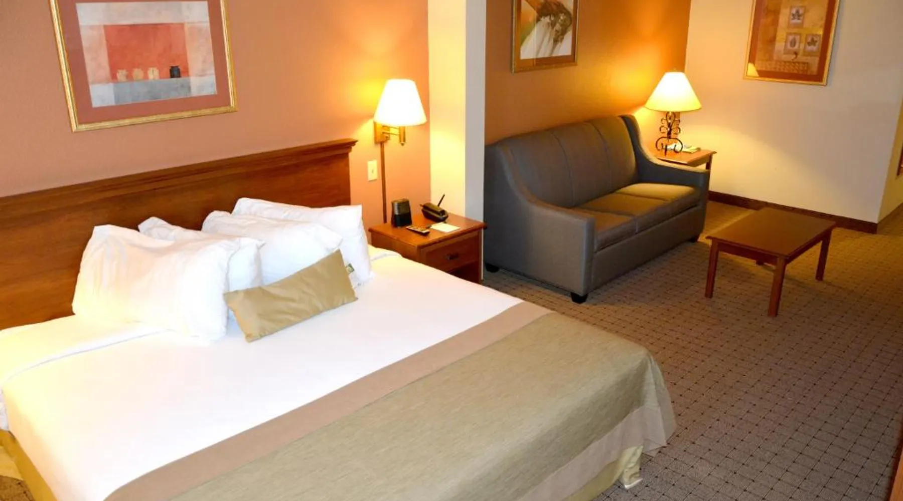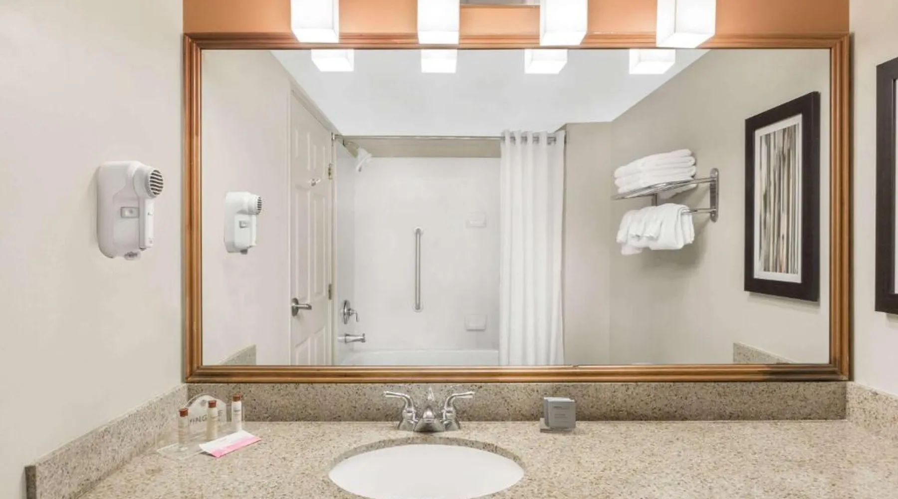 Comfortable Accommodations: Wingate by Wyndham West Monroe in West Monroe offers family rooms with air-conditioning, private bathrooms, and free WiFi. Each room includes a bath, shower, TV, and wardrobe. Facilities and Services: Guests can enjoy a fitness center, elevator, 24-hour front desk, daily housekeeping, express check-in and check-out, and free off-site parking. Additional amenities include a coffee machine, refrigerator, and free toiletries. Convenient Location: Located 8.7 mi from Monroe Regional Airport, the hotel is near attractions such as Ike Hamilton Expo Center (2.4 mi) and Kiroli Park (2.7 mi). Guests appreciate the convenient location and excellent service. This room features a microwave, refrigerator, and coffee machine. A flat-screen TV is also provided. An in-room safe, 2 telephones and ironing facilities are included.