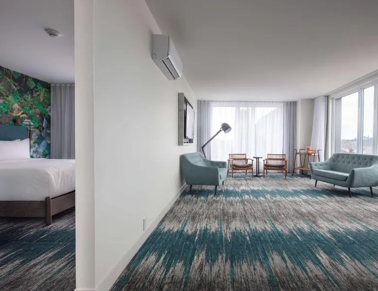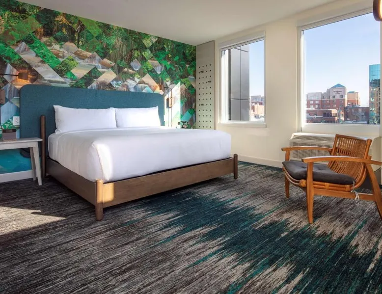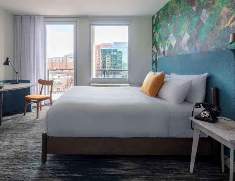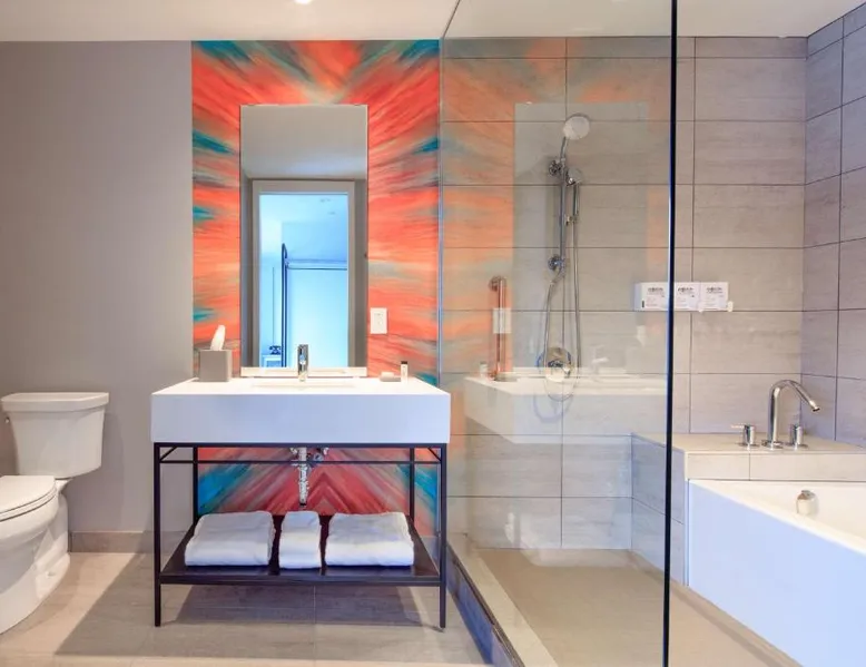 Comfortable Accommodations: Canvas Moncton, Tapestry Collection by Hilton in Moncton offers family rooms with air-conditioning, balconies, and free WiFi. Each room includes a work desk, TV, and free toiletries. Exceptional Facilities: Guests can enjoy a fitness center, bar, and coffee shop. Additional amenities include a fitness room, elevator, 24-hour front desk, electric vehicle charging station, and paid on-site parking. Prime Location: Located 3.7 mi from Greater Moncton Roméo LeBlanc International Airport, the hotel is a short walk from Capitol Theater and Moncton Train Station. Nearby attractions include Moncton Golf & Country Club and Casino New Brunswick. Guest Satisfaction: Highly rated for room cleanliness, convenient location, and options for food and drinks nearby. The spacious double room features air conditioning, a tea and coffee maker, a safe deposit box, heating, as well as a flat-screen TV with cable channels. The unit has 1 bed.