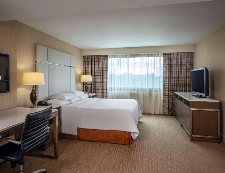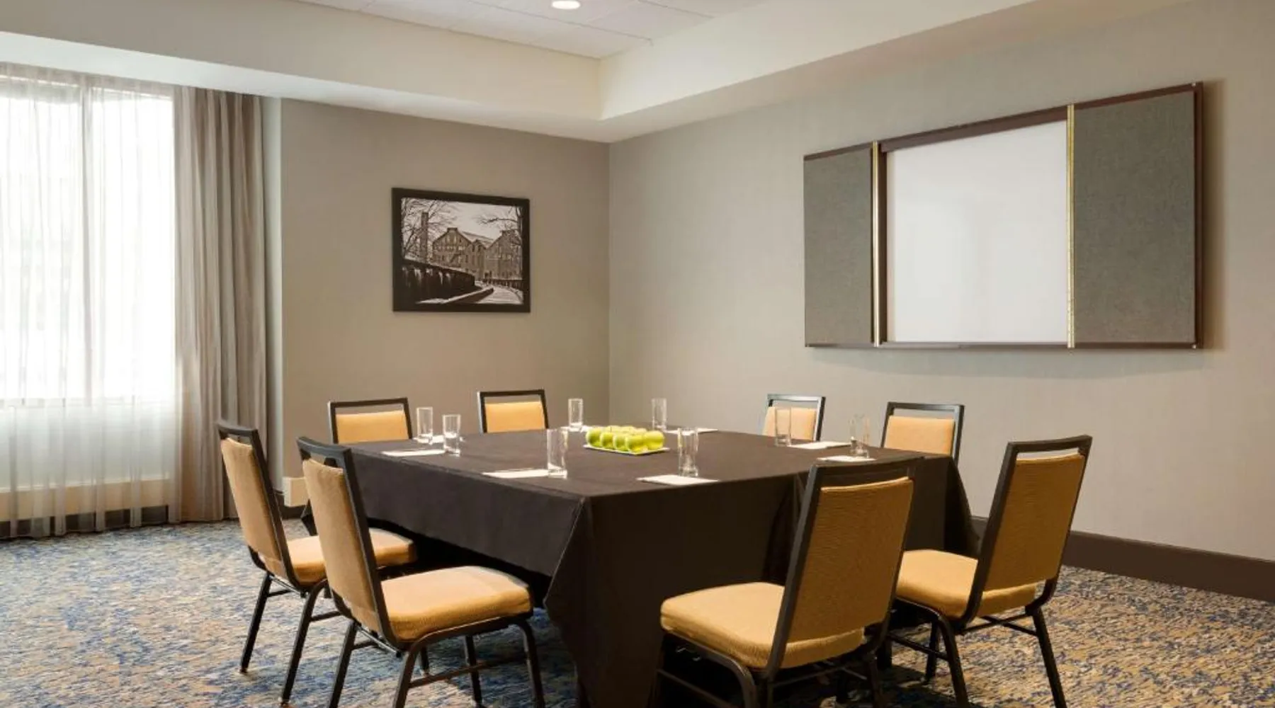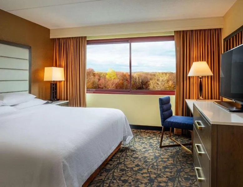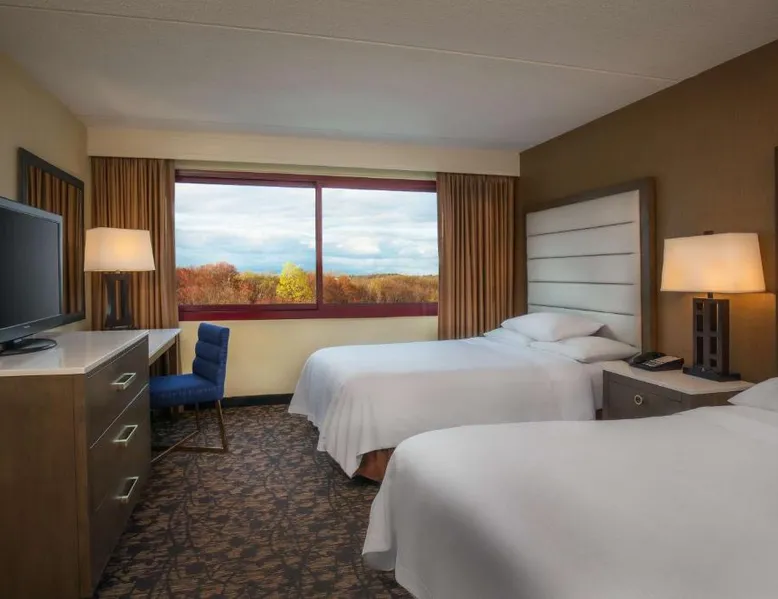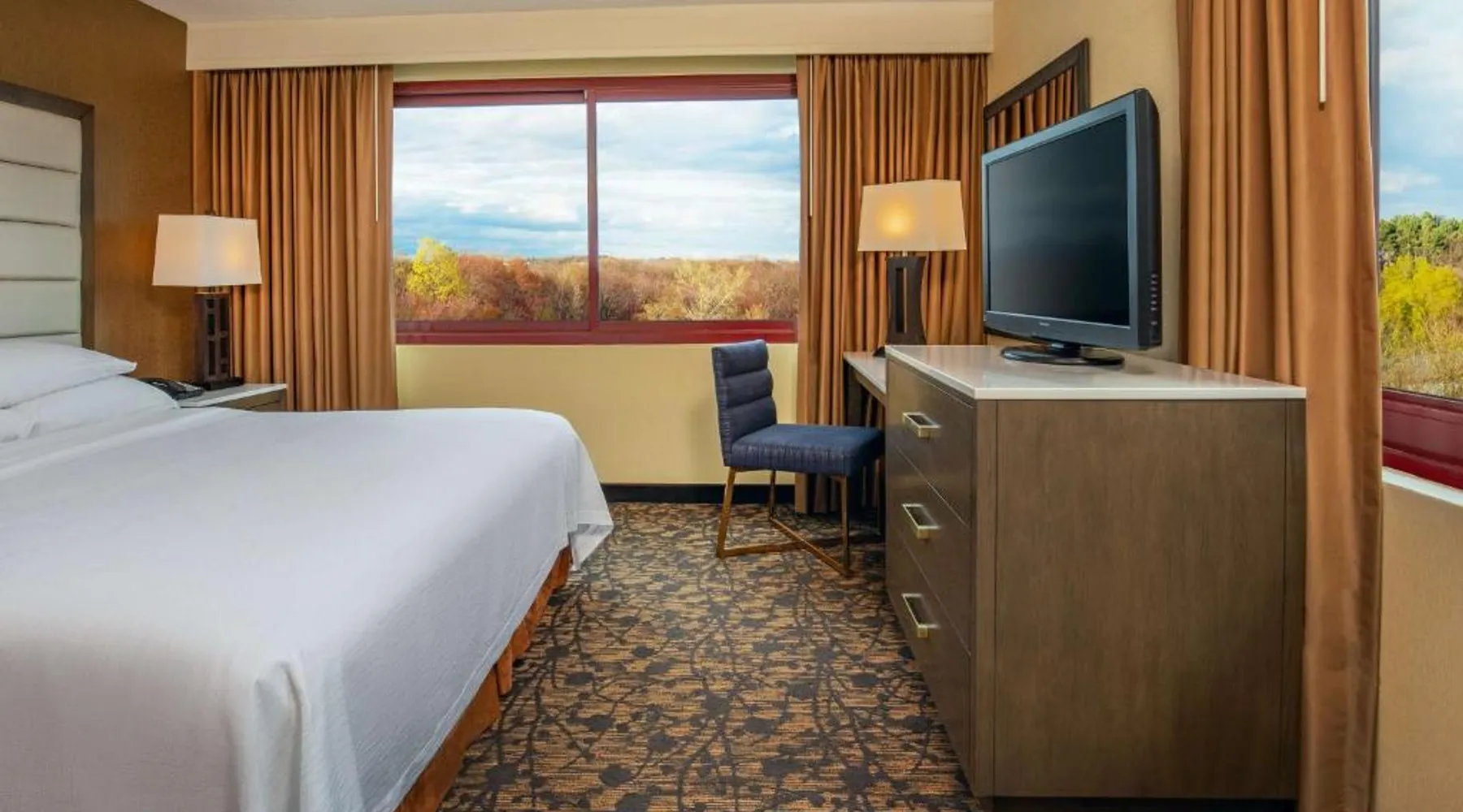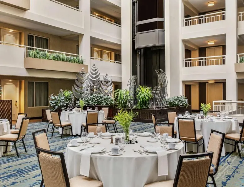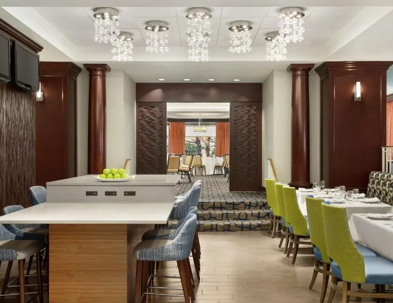 Located off Interstate 95 in Waltham, Massachusetts, this hotel is within a 20-minute drive from Brandeis University and Bentley University. It features on-site dining and a heated indoor pool. Each suite at this Waltham Embassy Suites is decorated in Americana colors and includes a seating area with a sofa bed and 40 inch Smart TVs with Hilton Connect, which allows you to log into your Netflix or Showtime Accounts. A large work desk is provided as well as a microwave and refrigerator. The on-site gym features a variety of cardio equipment and free weights. A 24-hour convenience store and a business center are located off of the lobby. The Grille at Hobbs Brook, also part of this Waltham hotel, serves contemporary American dishes. Its breakfast buffet includes eggs, pancakes, and fresh fruit. The Atrium Lounge is located on the eight floor and offers drinks in a casual atmosphere. Hanscom Air Force Base is 6.3 mi from Embassy Suites Boston Waltham. Downtown Boston is 14 mi away. This one-bedroom suite features a refrigerator and a microwave. It has a separate living area with a sofa bed, and a 40-inch Smart TV with Hilton Connect (Netflix or Showtime capabilities).