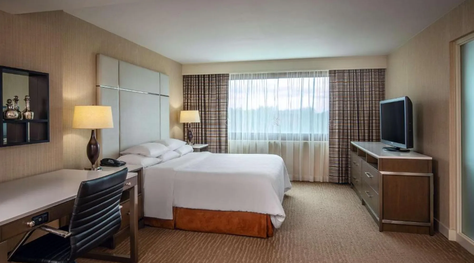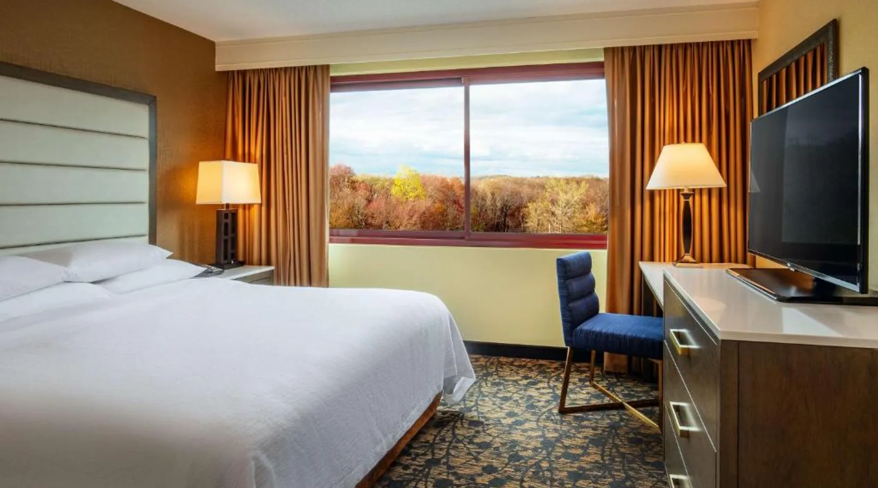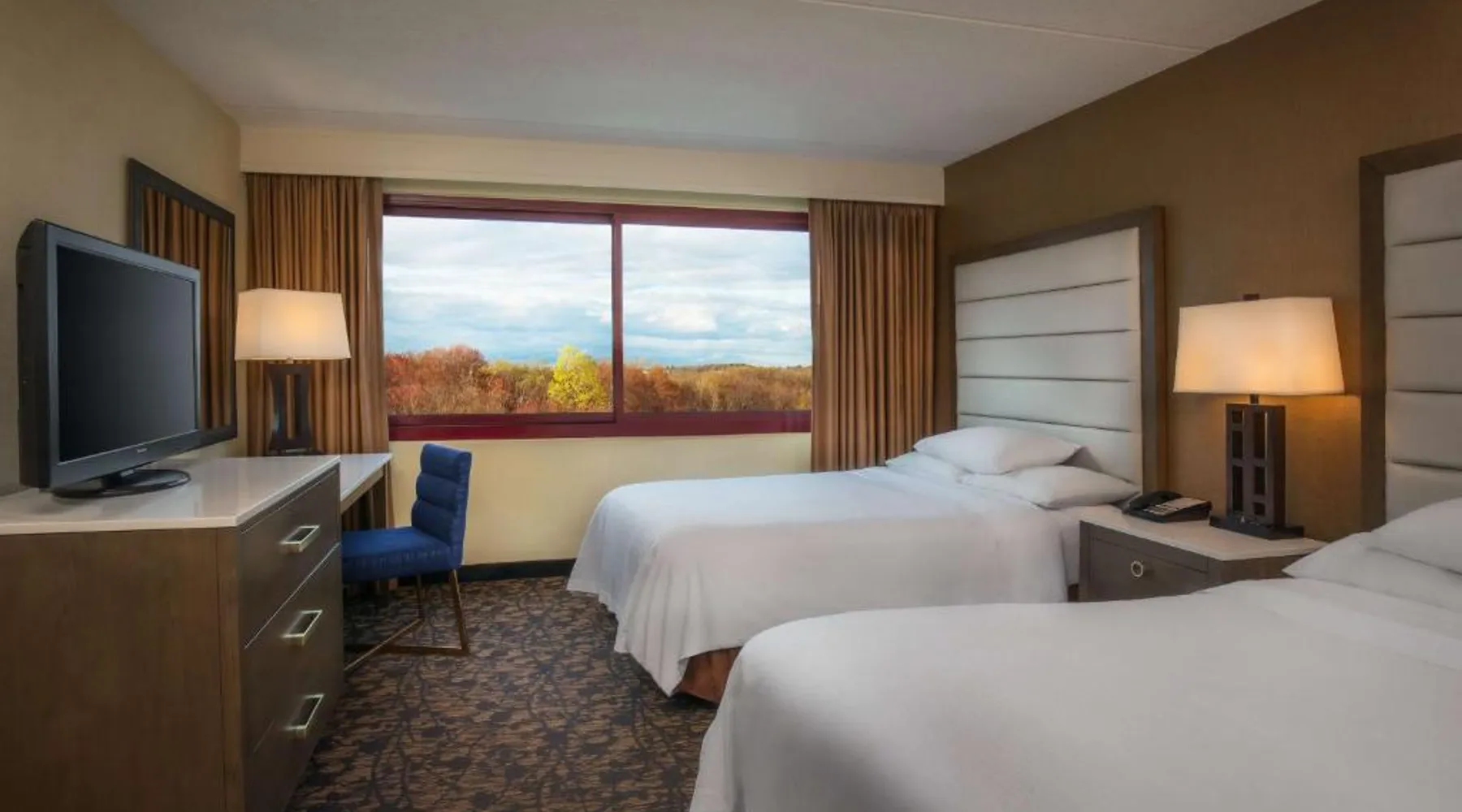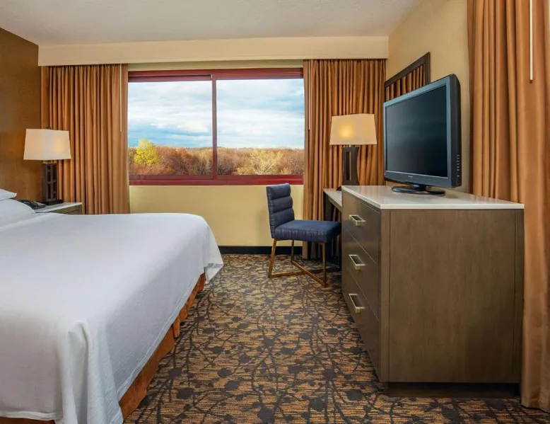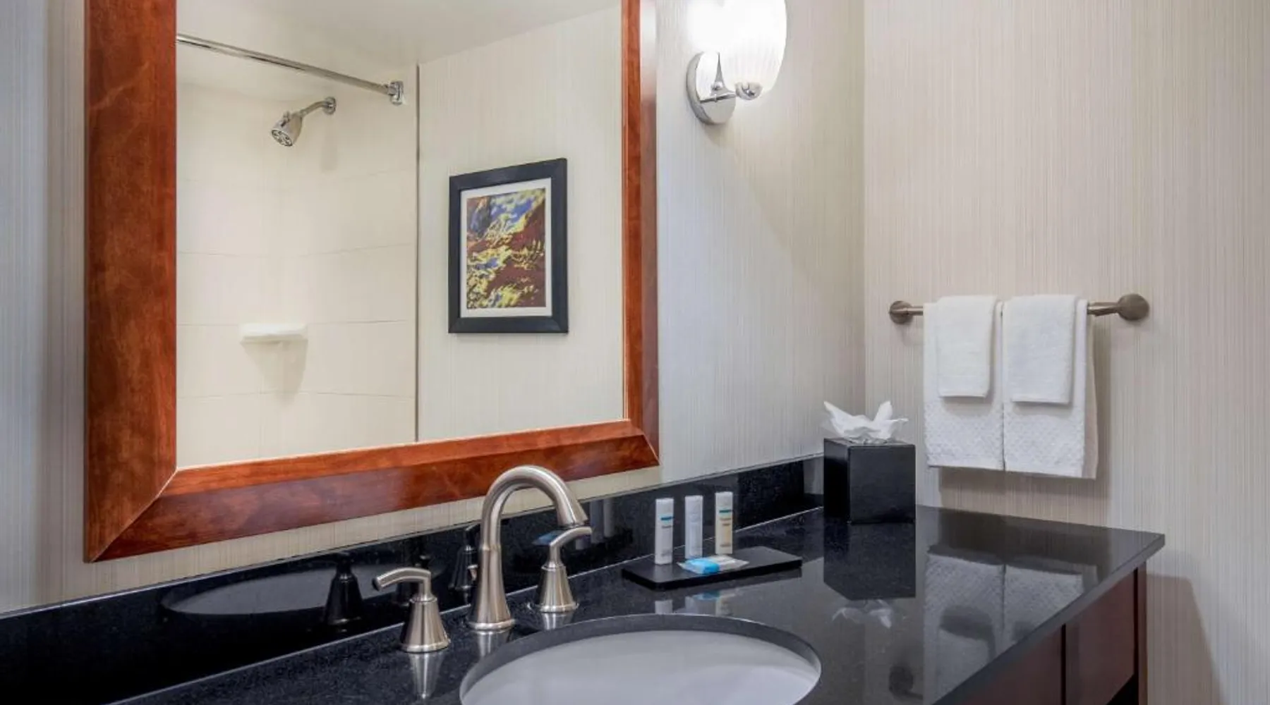 Located off Interstate 95 in Waltham, Massachusetts, this hotel is within a 20-minute drive from Brandeis University and Bentley University. It features on-site dining and a heated indoor pool. Each suite at this Waltham Embassy Suites is decorated in Americana colors and includes a seating area with a sofa bed and 40 inch Smart TVs with Hilton Connect, which allows you to log into your Netflix or Showtime Accounts. A large work desk is provided as well as a microwave and refrigerator. The on-site gym features a variety of cardio equipment and free weights. A 24-hour convenience store and a business center are located off of the lobby. The Grille at Hobbs Brook, also part of this Waltham hotel, serves contemporary American dishes. Its breakfast buffet includes eggs, pancakes, and fresh fruit. The Atrium Lounge is located on the eight floor and offers drinks in a casual atmosphere. Hanscom Air Force Base is 6.3 mi from Embassy Suites Boston Waltham. Downtown Boston is 14 mi away. This one-bedroom suite features a refrigerator and a microwave. It has a separate living area with a sofa bed, and a 40-inch Smart TV with Hilton Connect (Netflix or Showtime capabilities).