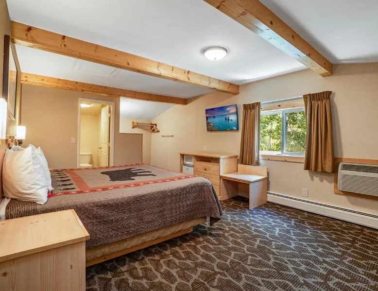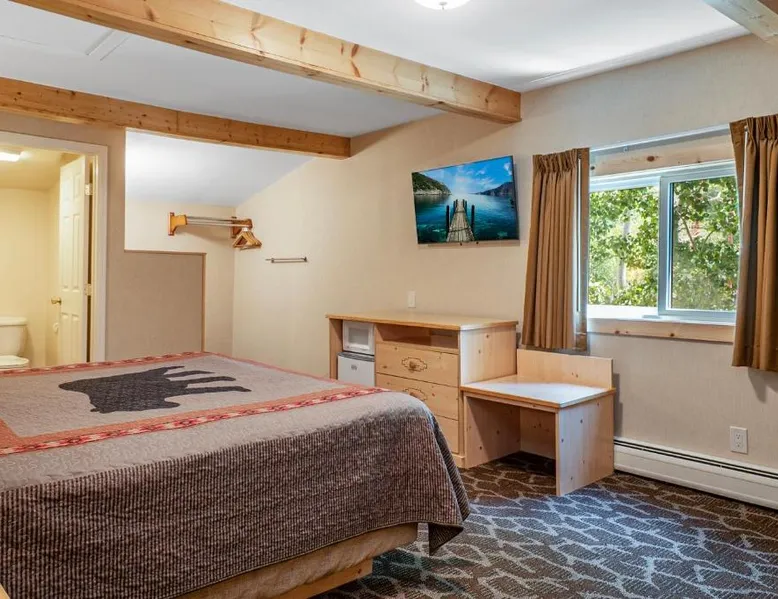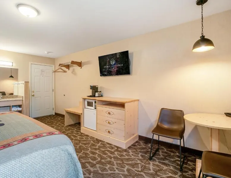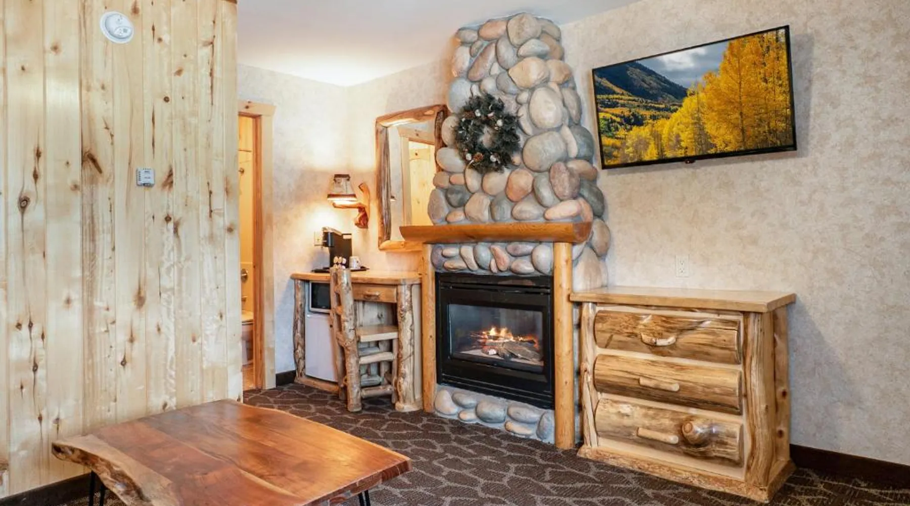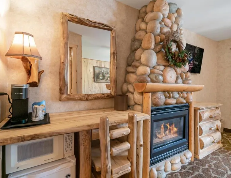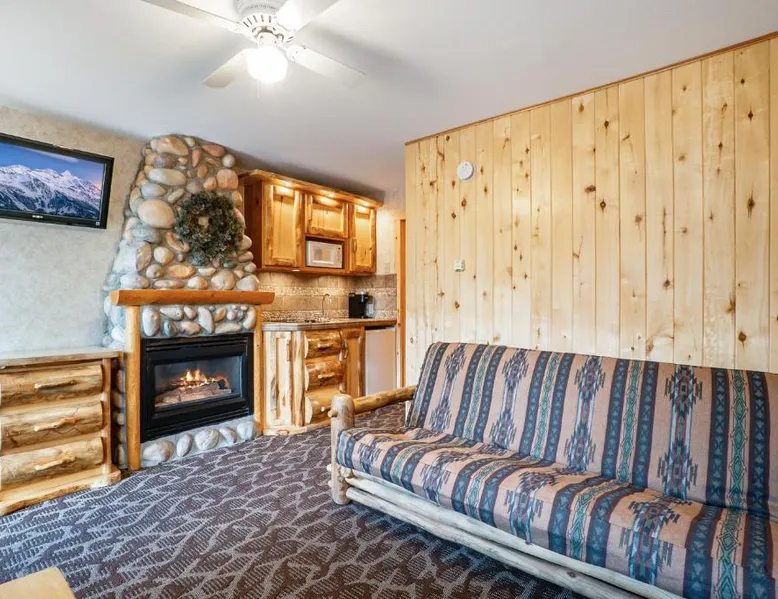 Featuring a hot tub, this Grand Lake, Colorado hotel is one mile from Rocky Mountain National Park. Free Wi-Fi is available in all rooms. Offering a sitting area, all rooms also includes cable TV and a private bathroom. Suites provide a fireplace and flat-screen TV’s at Spirit Lake Lodge. Guests can relax on the grounds on site. Snowmobile trails are on the property for guest enjoyment. Grand Lake is less than a 5 minute walk from Spirit Lake Lodge. Denver International Airport is 90 miles away. This room includes a seating area with a sofa bed, a gas fireplace, a flat-screen TV, hand-made Aspen furniture and an private bathroom. This room is pet-friendly.