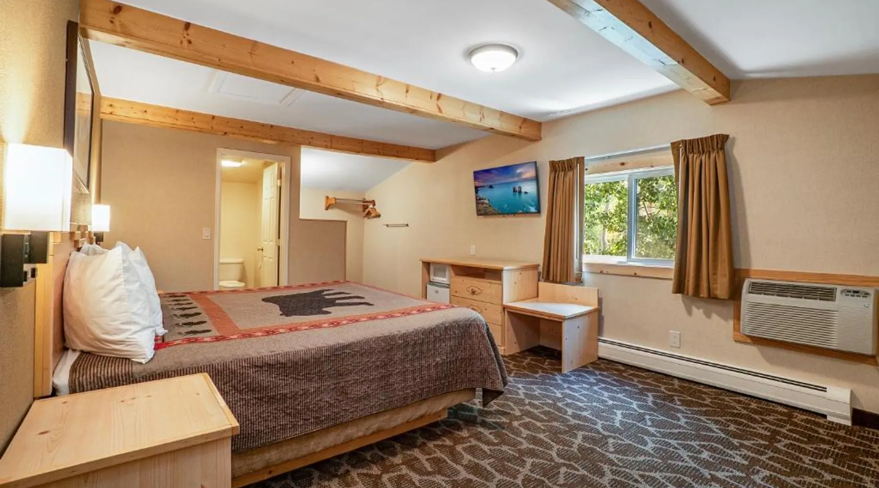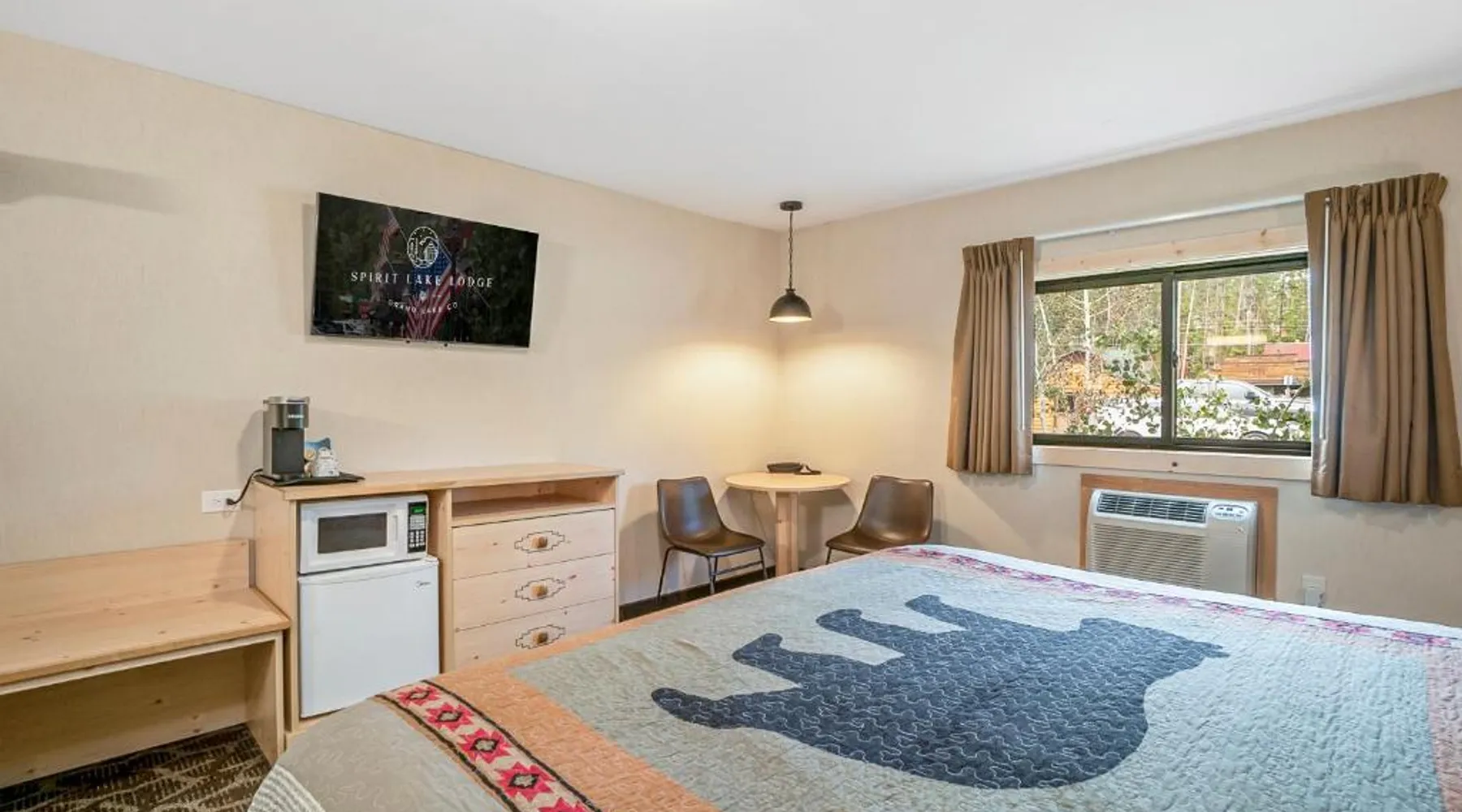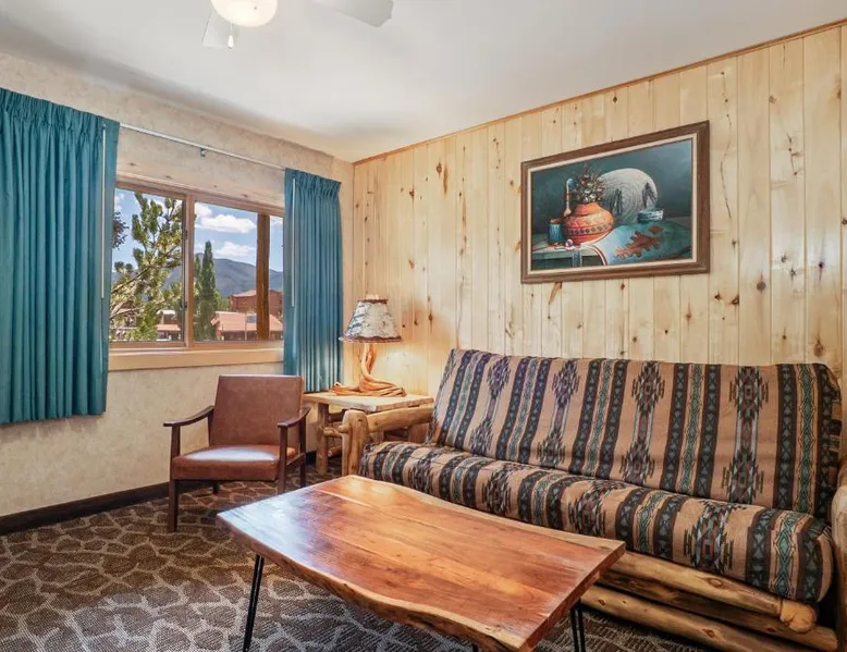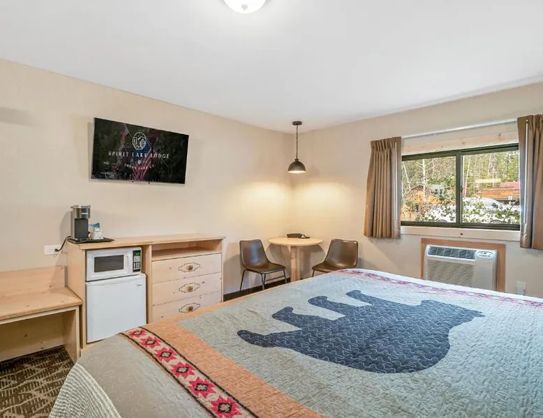 Featuring a hot tub, this Grand Lake, Colorado hotel is one mile from Rocky Mountain National Park. Free Wi-Fi is available in all rooms. Offering a sitting area, all rooms also includes cable TV and a private bathroom. Suites provide a fireplace and flat-screen TV’s at Spirit Lake Lodge. Guests can relax on the grounds on site. Snowmobile trails are on the property for guest enjoyment. Grand Lake is less than a 5 minute walk from Spirit Lake Lodge. Denver International Airport is 90 miles away. This room includes a seating area with a sofa bed, a gas fireplace, a flat-screen TV, hand-made Aspen furniture and an private bathroom. This room is pet-friendly.