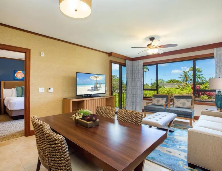 Located on the southern tip of Kauai Island, Koloa Landing At Poipu Beach features 2 resort-style pools and a state-of-the-art fitness center. The suites offer flat-screen LCD TVs and complete kitchens. The suites and villas include floor-to-ceiling windows, stone flooring, and large balconies with views of the ocean. They are equipped with free WiFi and iPod docking stations as well as full kitchens and private bathrooms. In-room washers and dryers are provided. The grounds of this hotel feature landscaped ponds and torch-lit walkways. A continental breakfast is served daily. Valet parking and concierge services are available. Spa wellness packages are available to guests. The shops and restaurants at the Poipu Shopping Village are within 10 minutes' walk of Koloa Landing at Poipu Beach. Port Allen Airport is 13 mi from the property. Featuring free toiletries and bathrobes, this studio includes a private bathroom with a walk-in shower, a hairdryer and slippers. Guests can make meals in the kitchenette that features a stovetop, a refrigerator, a dishwasher and kitchenware. The air-conditioned studio features a flat-screen TV with streaming services, a washing machine, a private entrance, a tea and coffee maker as well as pool views. The unit has 2 beds.