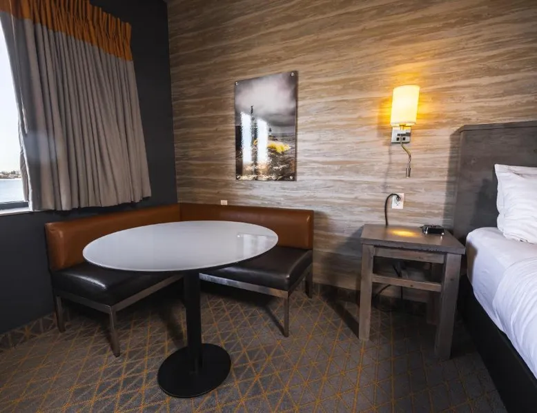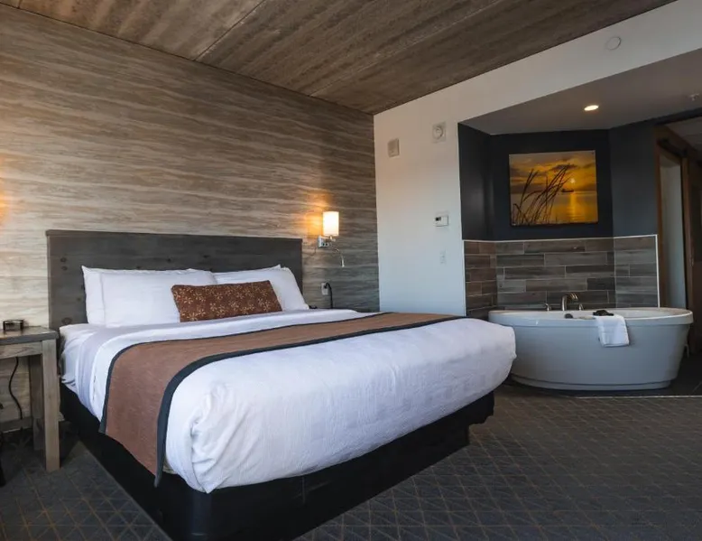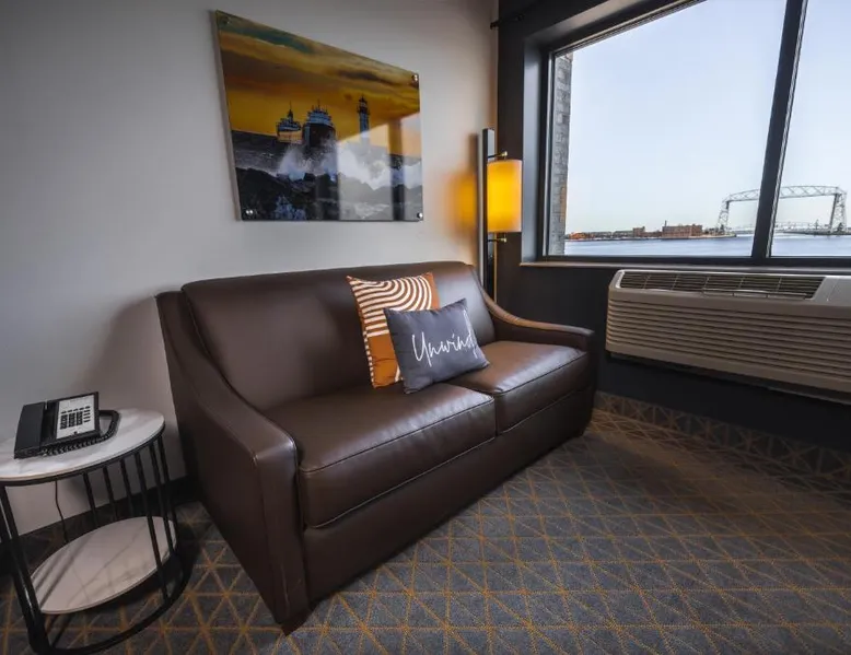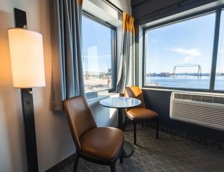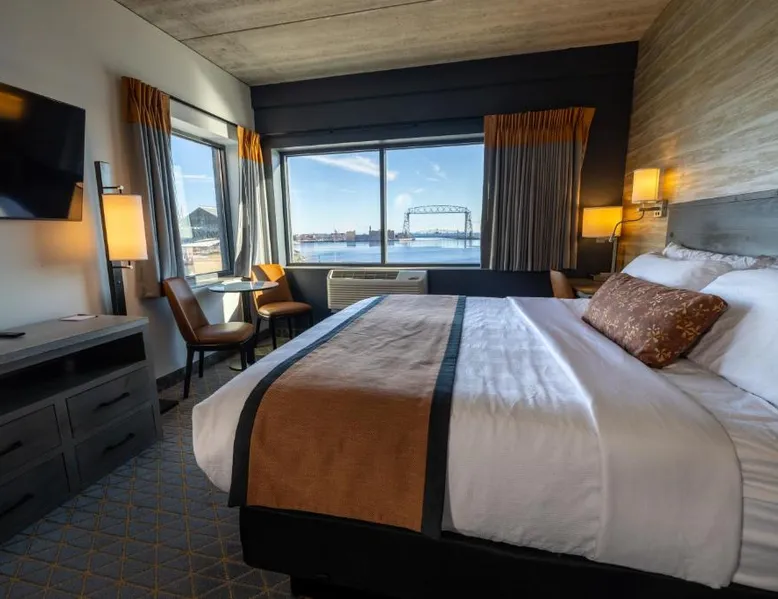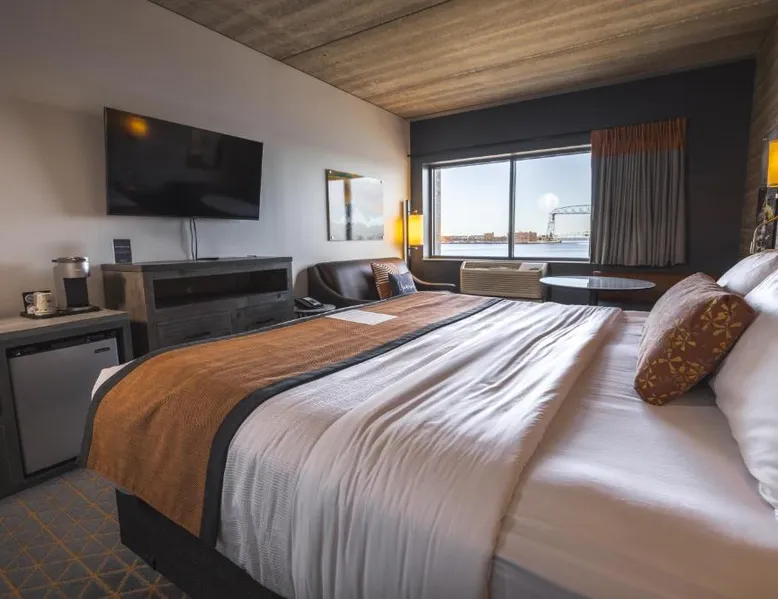 Featuring the only waterfront restaurant in Duluth, Pier B Resort offers guests direct access to Duluth's transient marina, which offers 20+ boat slips and a boat ramp. The resort also includes an indoor meeting and banquet room and spacious outdoor event space. Free WiFi access is available. Each room at the resort offers a flat-screen cable TV, a refrigerator and a coffee machine. Private bathrooms come complete with a bath or shower and free toiletries. Extras include heating and air conditioning. A 24-hour front desk welcomes guests to Pier B Resort, which features an indoor pool, sauna and fitness center. The property offers free parking. Offering direct access to the patio and outdoor hot tub, this queen room also includes a refrigerator and coffee machine.