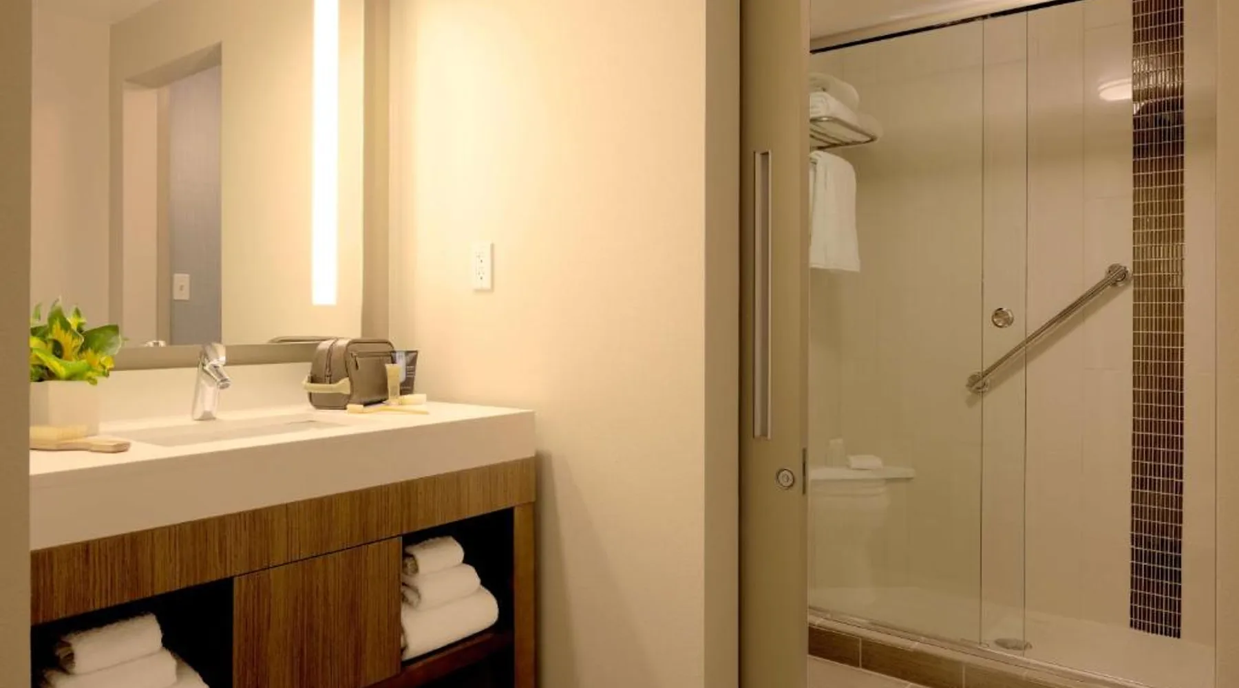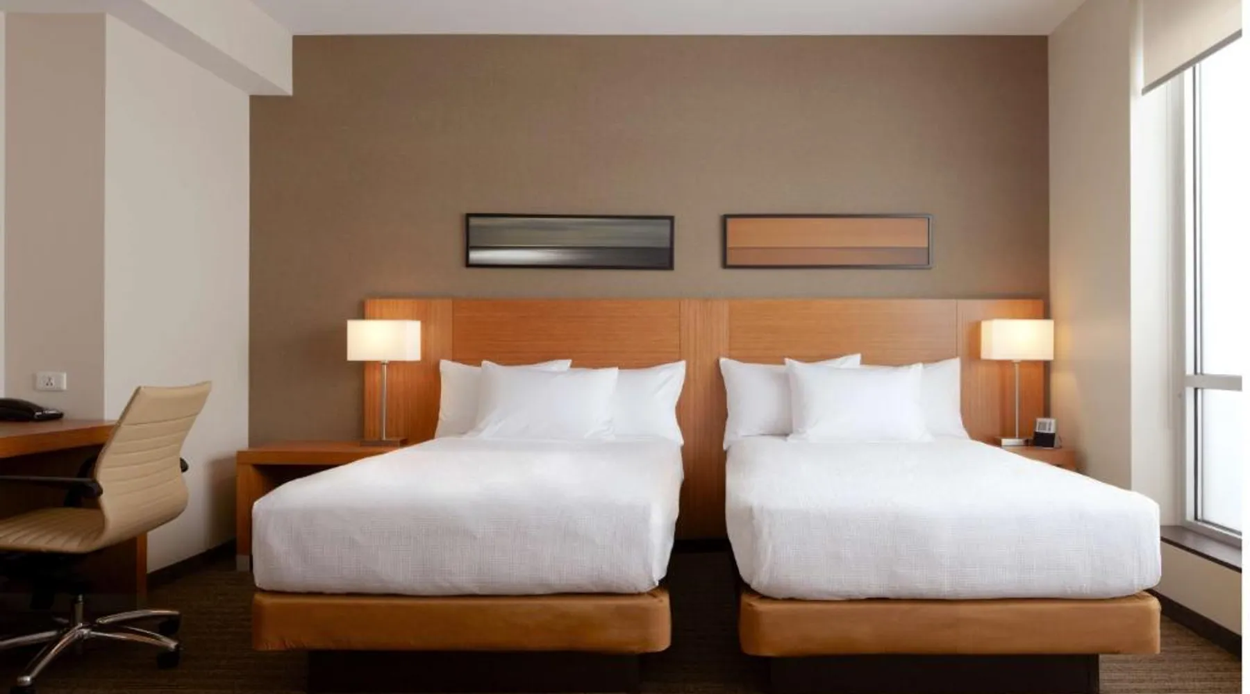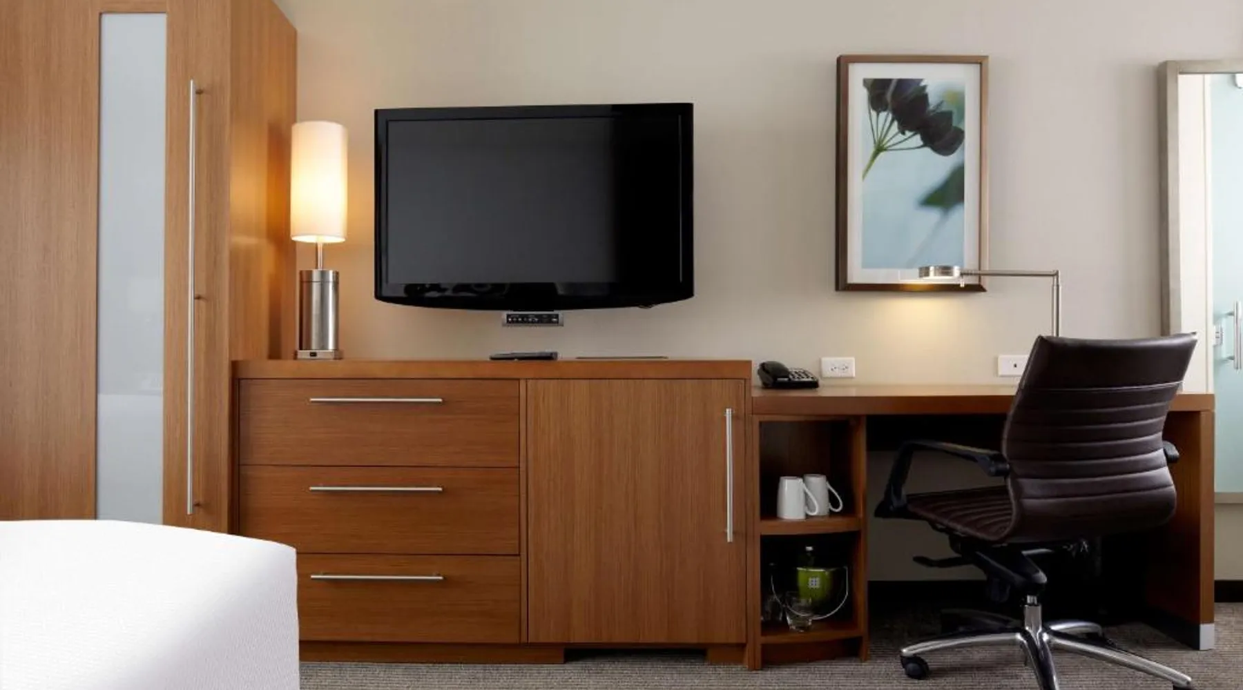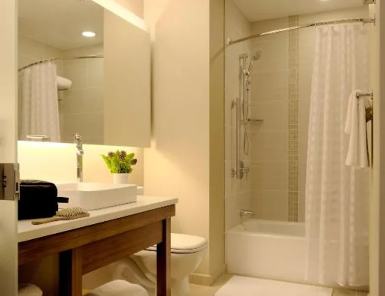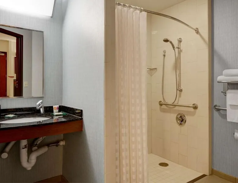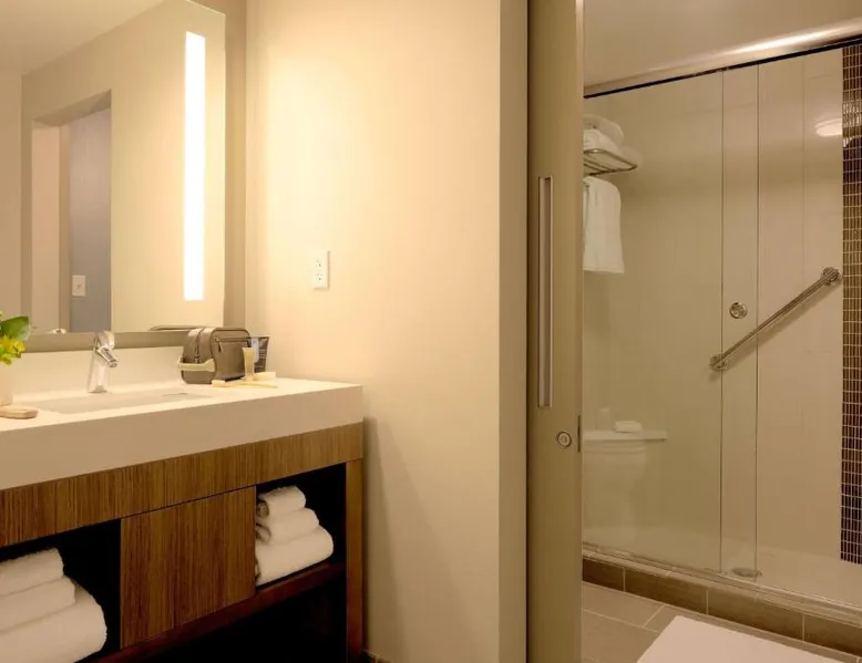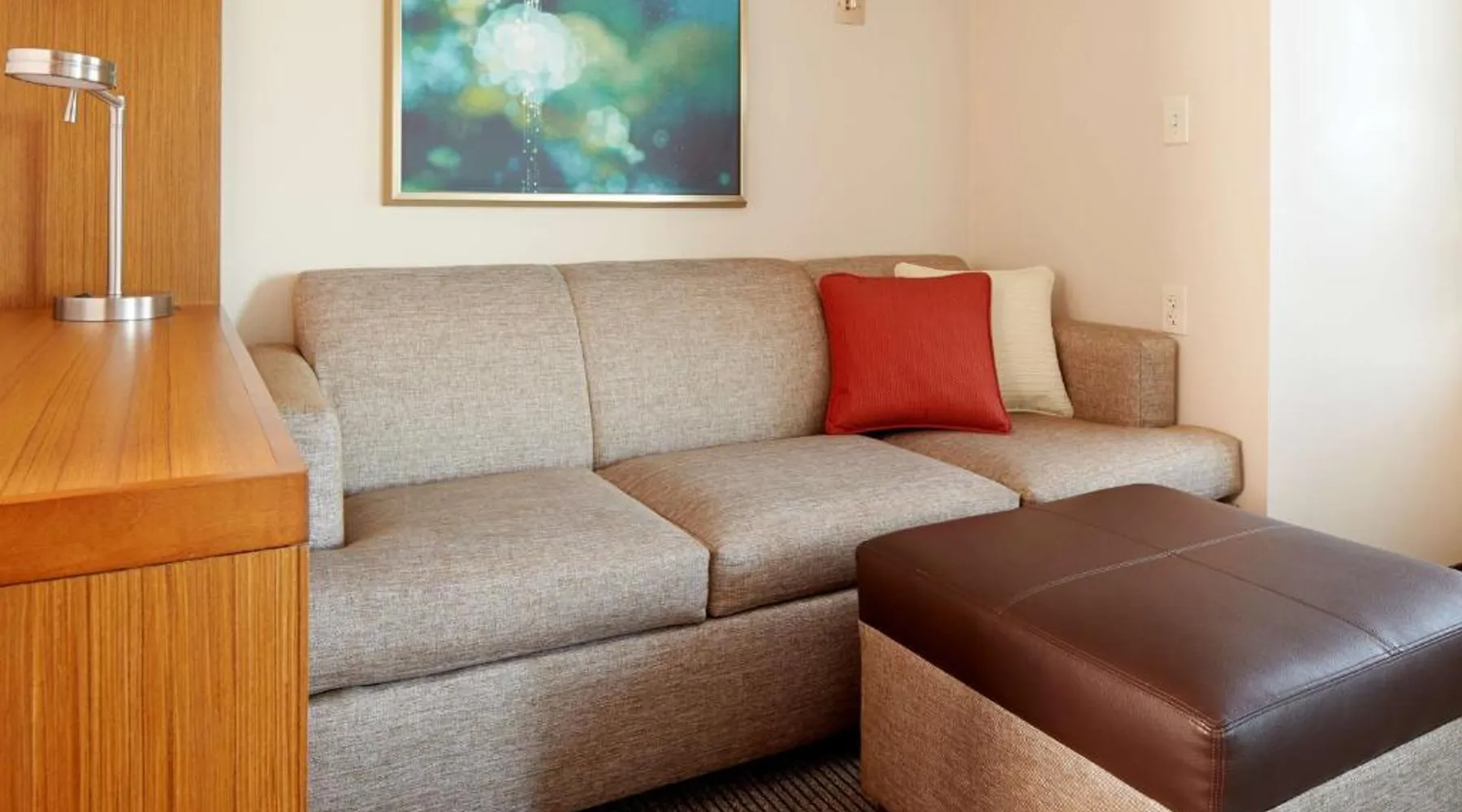 Comfortable Accommodations: Hyatt Place Indianapolis Fishers in Fishers offers family rooms with air-conditioning, private bathrooms, and modern amenities. Each room includes a work desk, sofa bed, and free WiFi. Dining and Leisure: Guests can enjoy an American buffet breakfast with fresh pastries, pancakes, fruits, and juice. The on-site restaurant serves dinner, while the bar provides a relaxing atmosphere. Additional facilities include a fitness center, indoor swimming pool, and outdoor fireplace. Convenient Location: Located 18 mi from Lucas Oil Stadium and 20 mi from Indianapolis Motor Speedway, the hotel is near attractions such as the Children's Museum of Indianapolis and Indianapolis Museum of Art. Free on-site parking is available. Guest Satisfaction: Highly rated for room cleanliness, convenient location, and excellent restaurant, Hyatt Place Indianapolis Fishers ensures a pleasant stay for all visitors. The family room offers air conditioning, a tea and coffee maker, as well as a private bathroom boasting a bath and a hairdryer. The family room provides a wardrobe, a sofa, a carpeted floor, heating and a flat-screen TV with cable channels. The unit has 3 beds.