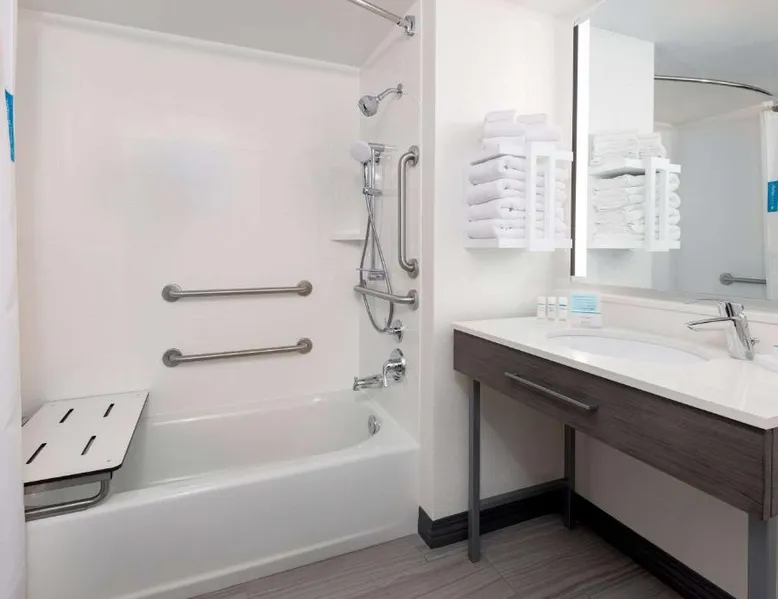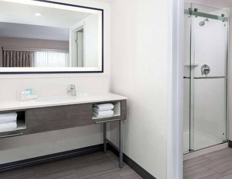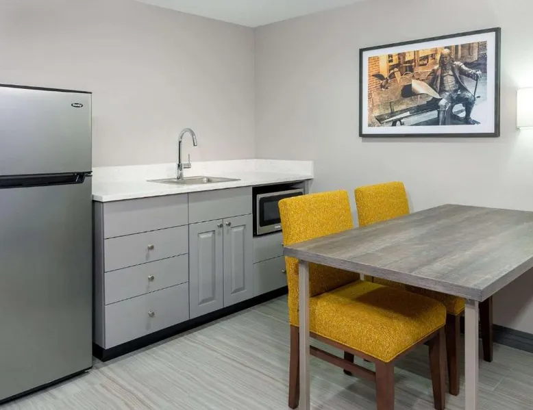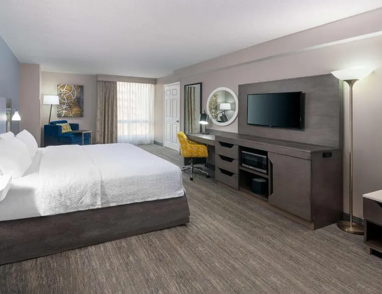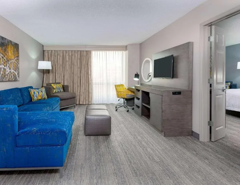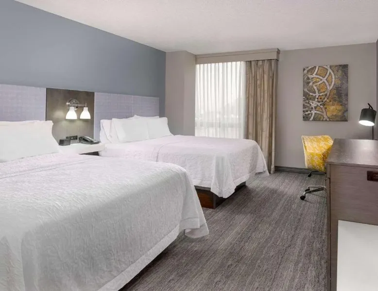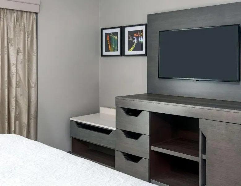This Kansas City Hampton Inn offers rooms with free Wi-Fi and cable TV, just steps away from the shops and restaurants of the historic Country Club Plaza. Facilities include an indoor pool. The air-conditioned rooms of Hampton Inn & Suites Country Club Plaza are decorated with warm colors, carpeted floors and wooden furniture. All rooms have a seating area, a work desk, and tea and coffee making facilities. Every morning, a hot buffet breakfast is served in the breakfast room. Light meals, beverages and snacks are available at the on-site convenience store. Guests can work out at Hampton Inn Country Club Plaza’s fitness room. The hotel also offers a 24-hour reception, an on-site cash machine, and a clothing store. The American Royal Museum is just 4 miles from Hampton Inn & Suites Country Club Plaza, and the Kansas City Zoo is 5 miles away. The suite's kitchenette, which has a refrigerator and a microwave, is available for cooking and storing food. The spacious suite features a tea and coffee maker, a seating area, a safe deposit box, heating and a flat-screen TV with cable channels. The unit has 2 beds.