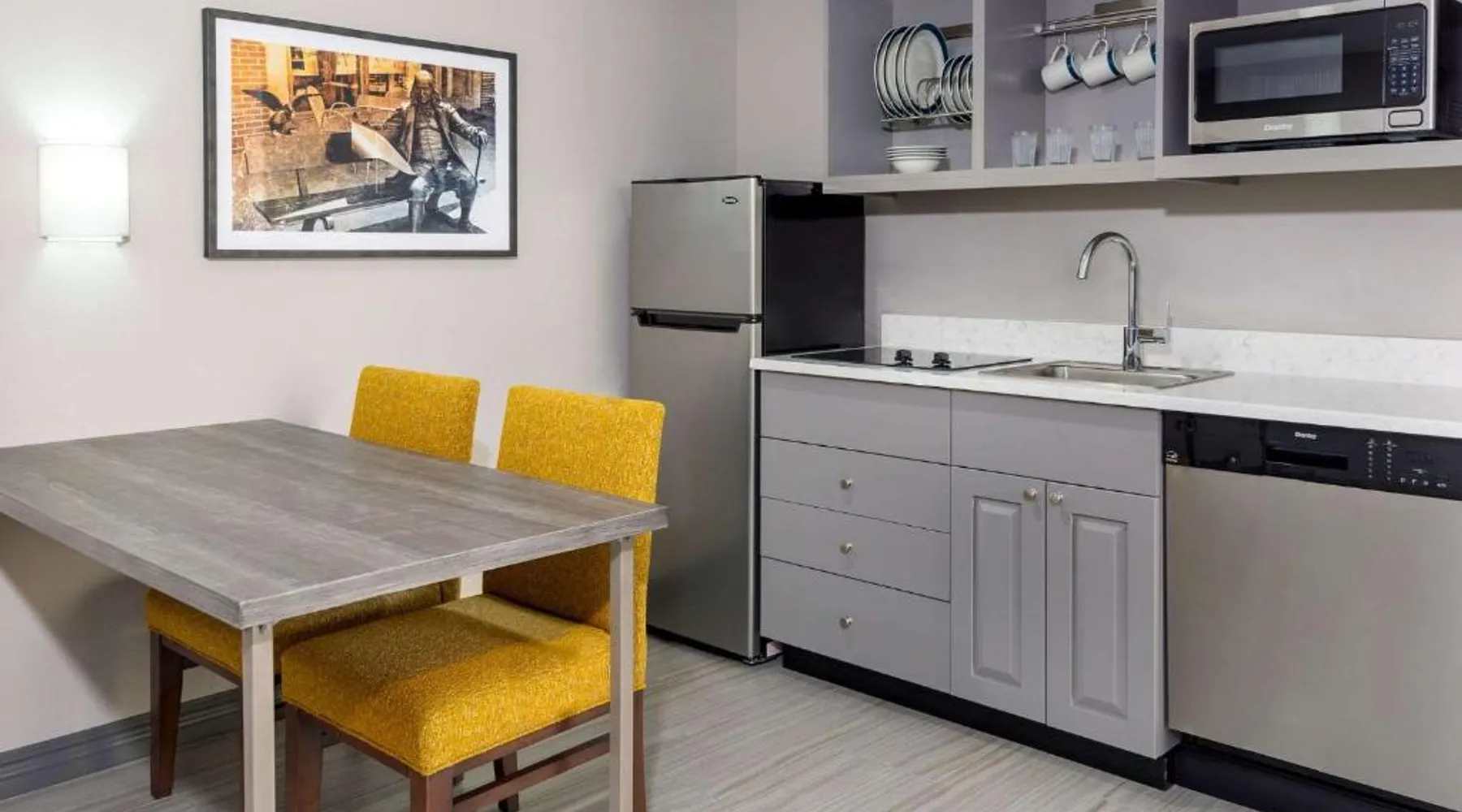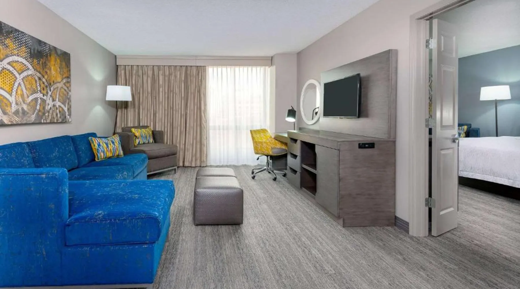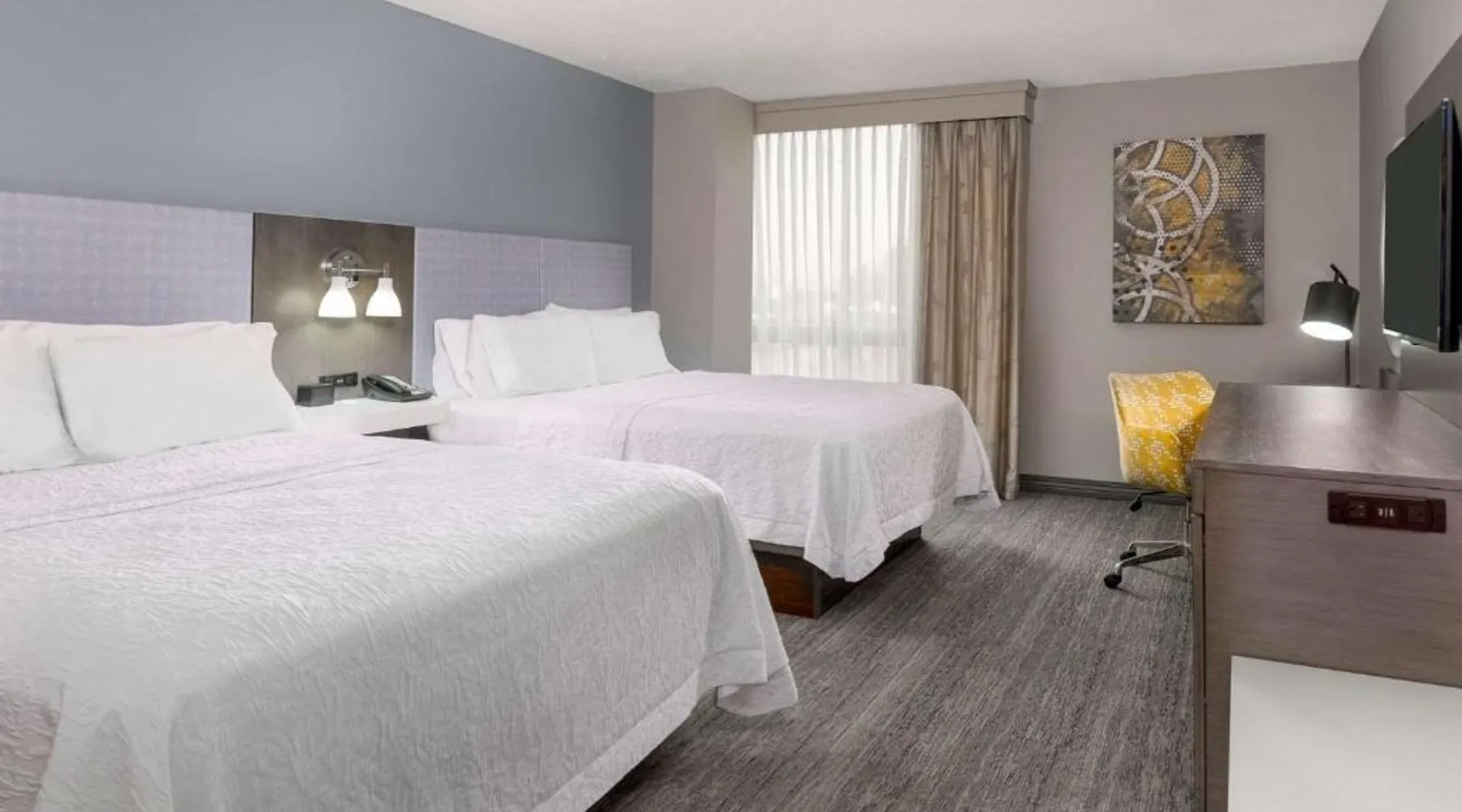 This Kansas City Hampton Inn offers rooms with free Wi-Fi and cable TV, just steps away from the shops and restaurants of the historic Country Club Plaza. Facilities include an indoor pool. The air-conditioned rooms of Hampton Inn & Suites Country Club Plaza are decorated with warm colors, carpeted floors and wooden furniture. All rooms have a seating area, a work desk, and tea and coffee making facilities. Every morning, a hot buffet breakfast is served in the breakfast room. Light meals, beverages and snacks are available at the on-site convenience store. Guests can work out at Hampton Inn Country Club Plaza’s fitness room. The hotel also offers a 24-hour reception, an on-site cash machine, and a clothing store. The American Royal Museum is just 4 miles from Hampton Inn & Suites Country Club Plaza, and the Kansas City Zoo is 5 miles away. The suite's kitchenette, which has a refrigerator and a microwave, is available for cooking and storing food. The spacious suite features a tea and coffee maker, a seating area, a safe deposit box, heating and a flat-screen TV with cable channels. The unit has 2 beds.