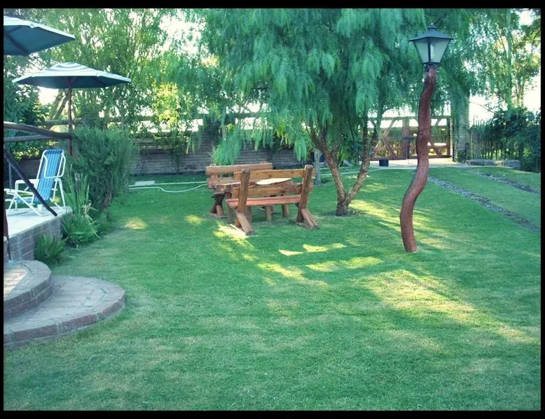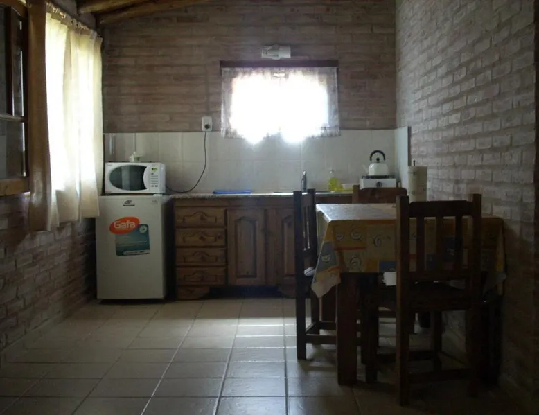 Elegant Accommodations: Complejo Los Ciruelos in San Rafael offers a lodge with a sun terrace, garden, and a seasonal outdoor swimming pool. Guests enjoy free WiFi throughout the property. Comfortable Amenities: The lodge features private check-in and check-out services, a 24-hour front desk, concierge, and tour desk. Additional facilities include an outdoor seating area, family rooms, full-day security, solarium, and free on-site private parking. Local Attractions: Located 1.9 mi from San Rafael Airport, the property is near attractions such as Nevado Golf Club (3.7 mi), Atuel Canyon (30 mi), and Hipolito Yrigoyen Park (5.6 mi). Guest Satisfaction: Highly rated by guests for its excellent service and comfortable accommodations. This bungalow features a microwave, refrigerator and a seating area with a sofa.
