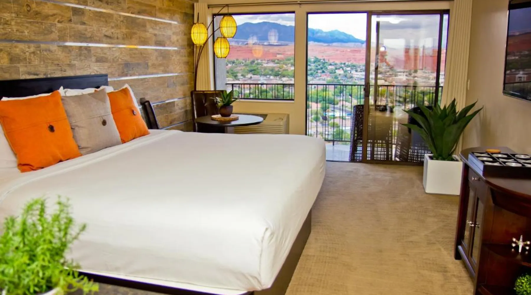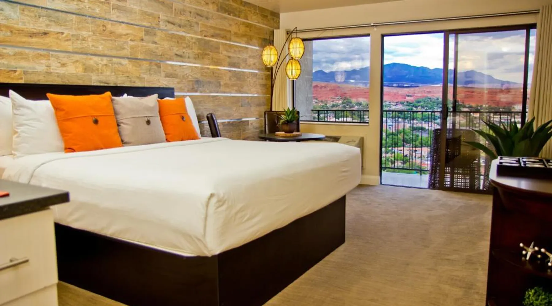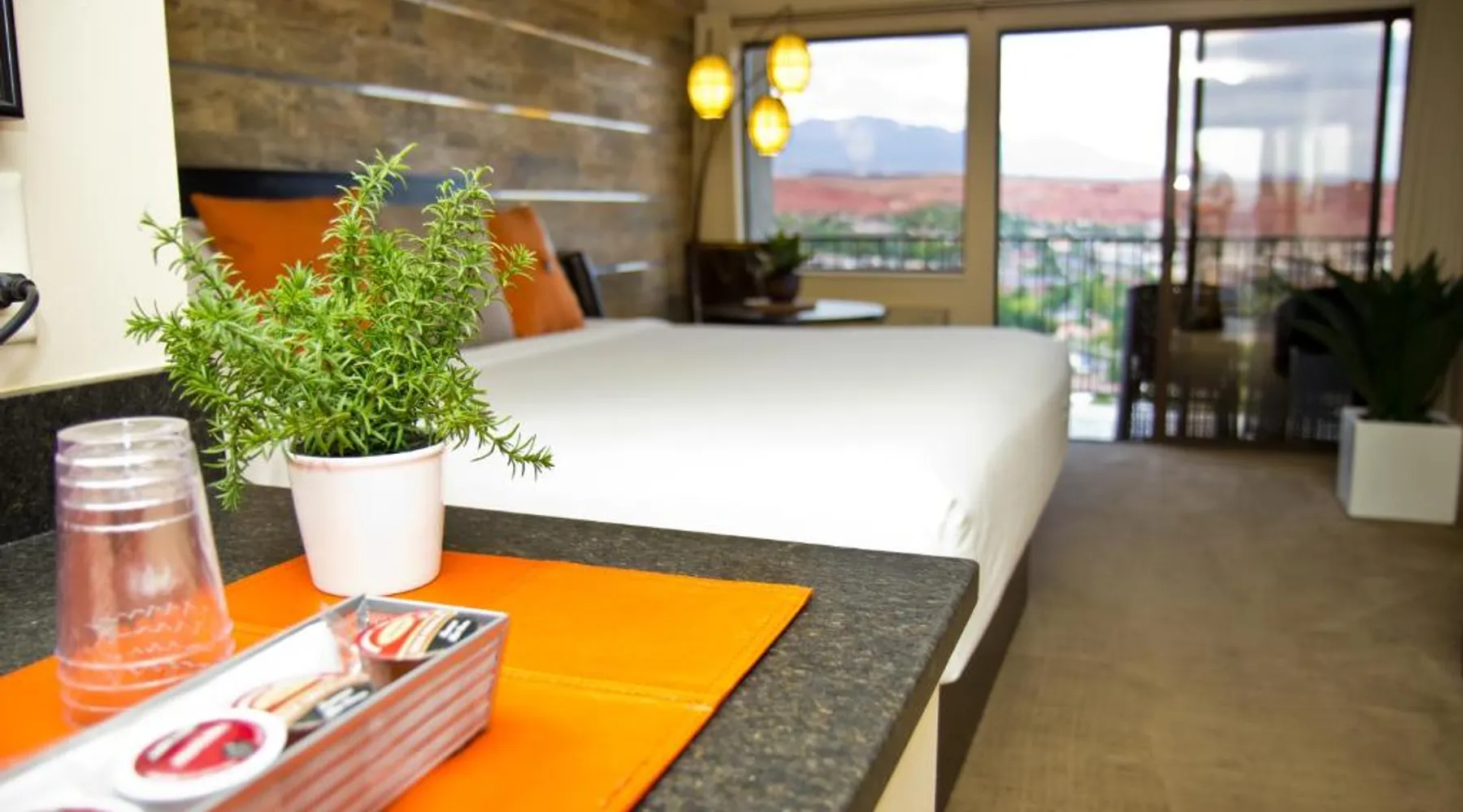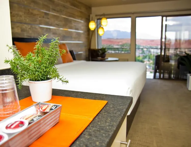 Serving a free continental breakfast to each guest room, this hotel is 20 minutes’ drive from Snow Canyon State Park. Guests can relax in a seasonal outdoor pool and a hot tub. Free Wi-Fi is provided. Offering a private balcony, each room also includes a 50-inch flat-screen cable TV, a small refrigerator and coffee-making facilities at St George Inn on the Cliff. A private bathroom is included. A fitness center and a business center are provided at Inn on the Cliff St. George. Free parking is available on site. Valderra Golf Course at the Ledges is a 15-minute drive from the hotel. Zion National Parkis is 43 miles from Inn on the Cliff. This room features a private balcony, a 50-inch flat-screen cable TV and an private bathroom. A small refrigerator and coffee-making facilities are also included.