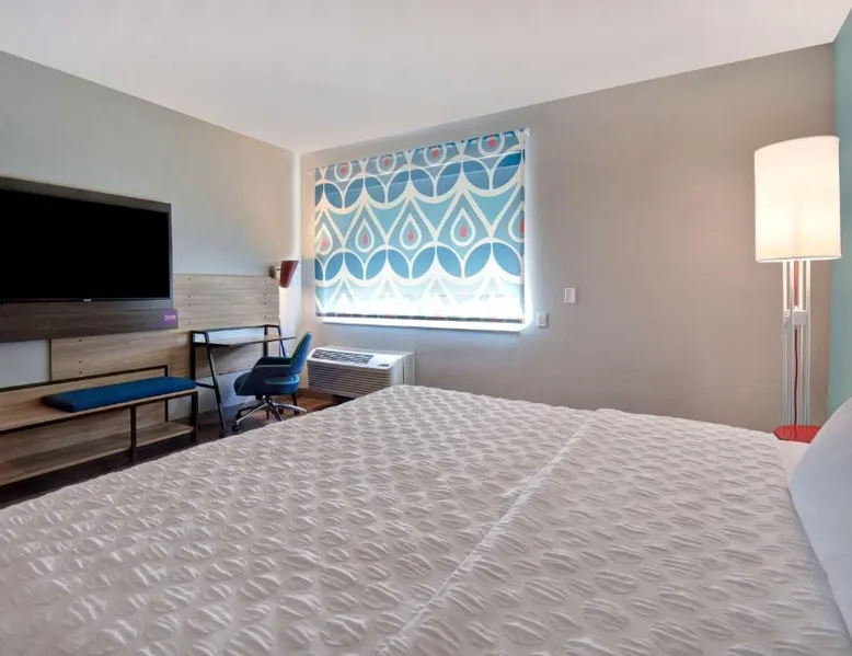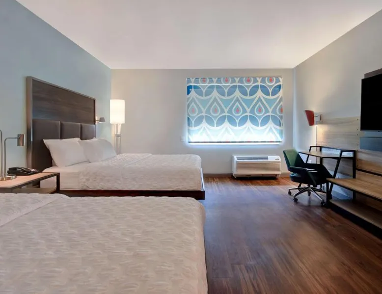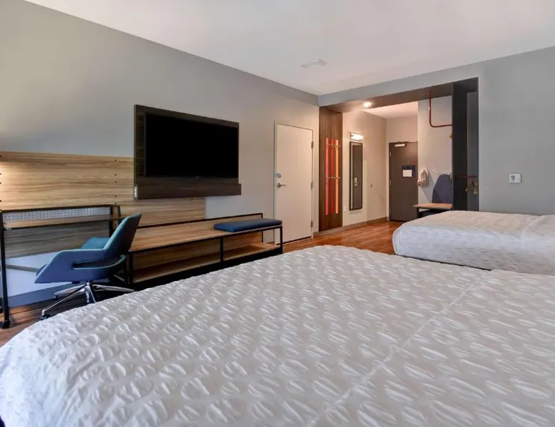 Comfortable Accommodations: Tru By Hilton Auburn, In in Auburn offers comfortable rooms with air-conditioning, free WiFi, and modern amenities including a refrigerator, TV, and free toiletries. Facilities and Services: Guests enjoy a fitness center, lounge, and games room. The hotel provides private check-in and check-out, a 24-hour front desk, and free on-site parking. Additional services include a minimarket, daily housekeeping, and a business area. Dining and Activities: A child-friendly buffet is available, and the property offers fishing activities. Free breakfast is provided by the hotel. Nearby attractions include Allen County War Memorial Coliseum (20 mi) and Fort Wayne Children's Zoo (21 mi). Fort Wayne Airport is 34 mi away. Guest Satisfaction: Highly rated for room cleanliness, breakfast, and attentive staff. This double room features air conditioning, heating and a flat-screen TV with cable channels. The unit offers 1 bed.