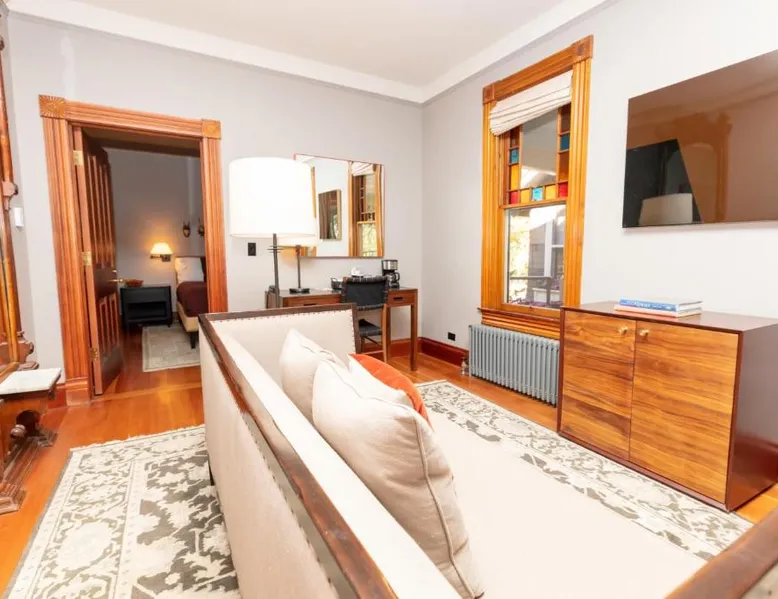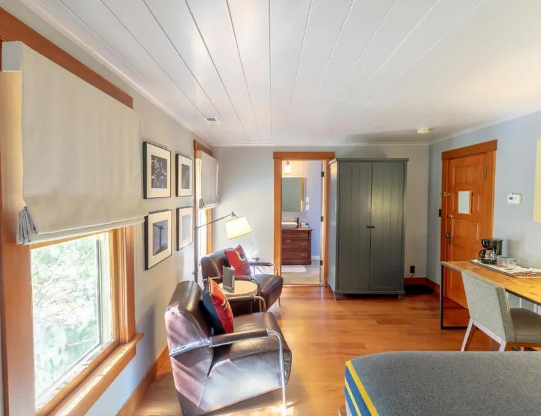 Elegant Accommodations: The Outlook Lodge in Green Mountain Falls offers 5-star comfort with free WiFi, air-conditioning, and private bathrooms. Each room includes a TV, wardrobe, and carpeted floors, ensuring a relaxing stay. Relaxing Amenities: Guests can unwind in the hot tub or on the terrace, perfect for unwinding after a day of exploration. Family rooms are available, catering to all travelers. Convenient Location: Located 23 mi from Colorado Springs Airport, the hotel is near attractions such as Garden of the Gods (14 mi) and Rock Ledge Ranch Historic Site (14 mi). Free on-site parking is provided. Guest Satisfaction: Highly rated for its convenient location, room cleanliness, and comfort, The Outlook Lodge ensures a memorable stay for all visitors. Guests will have a special experience as this double room features a hot tub. This double room features a private bathroom and a carpeted floor. The spacious double room offers air conditioning, a wardrobe, tumble dryer, as well as a terrace. The unit offers 1 bed.