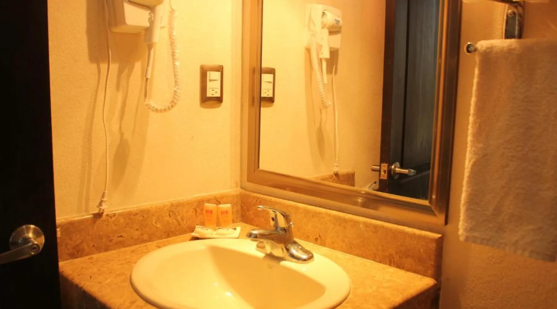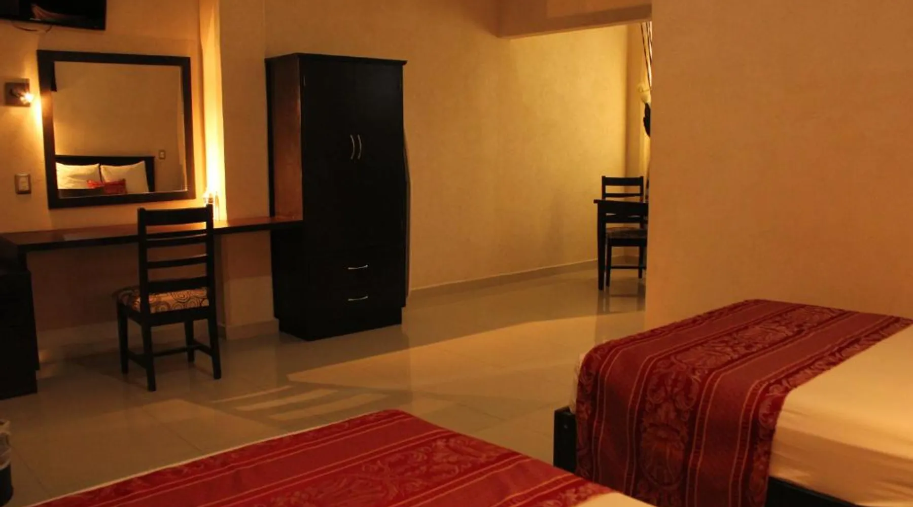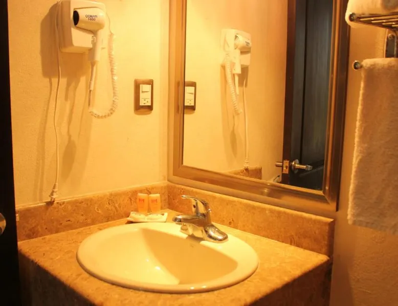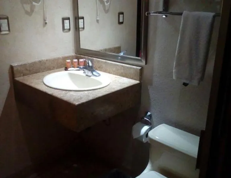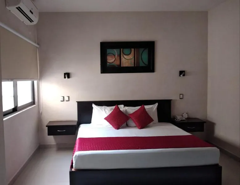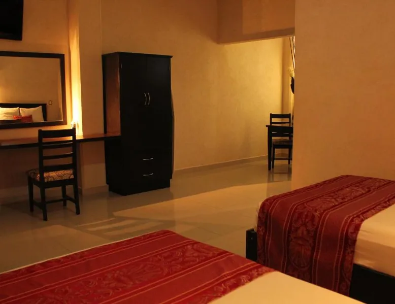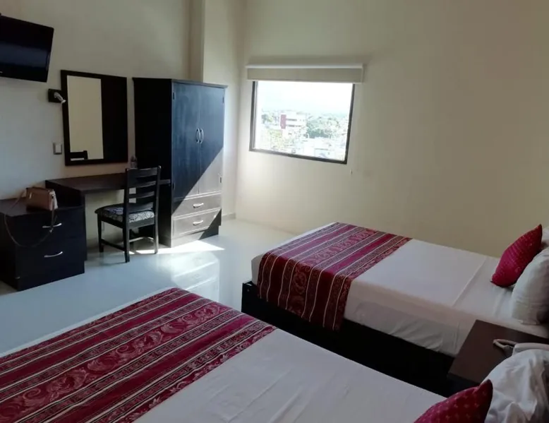 Comfortable Accommodations: Hotel Madrid in Tuxtla Gutierrez offers family rooms with air-conditioning, private bathrooms, and free WiFi. Each room includes a work desk, TV, and wardrobe, ensuring a pleasant stay. Convenient Facilities: Guests benefit from private check-in and check-out, a 24-hour front desk, and a paid shuttle service. Additional amenities include a elevator, outdoor seating area, tour desk, and luggage storage. Dining Options: A complimentary American breakfast with warm dishes is served daily. The hotel also provides a paid shuttle service to Ángel Albino Corzo International Airport, located 19 mi away. Nearby Attractions: La Marimba Park is a 3-minute walk, San Marcos Cathedral less than 0.6 mi, and Botanical Garden Dr. Faustino Miranda 1.2 mi away. Other attractions include Sumidero Canyon (7.5 mi) and Zoomat Zoo (3.7 mi). This air-conditioned room is furbished with one king-size bed. It features flat-screen TV with cable channels and a private bathroom.