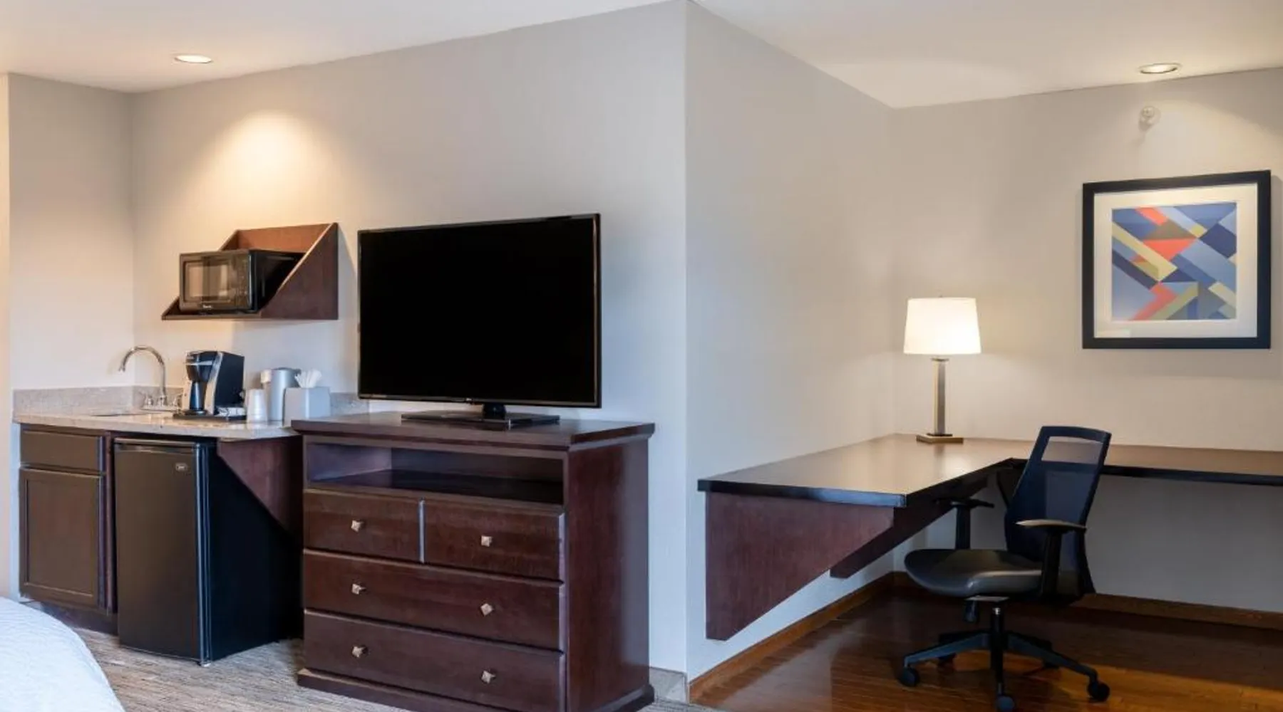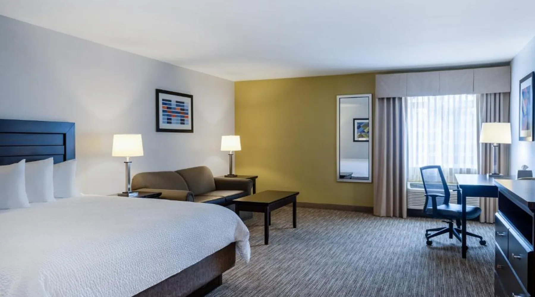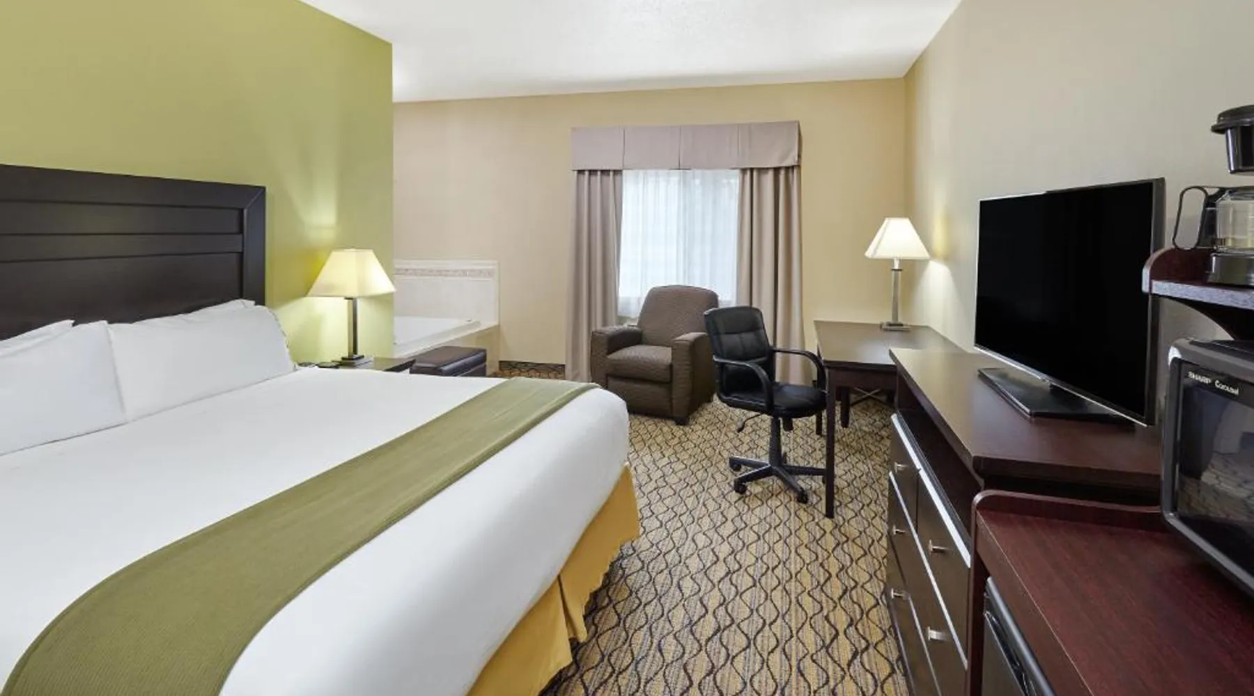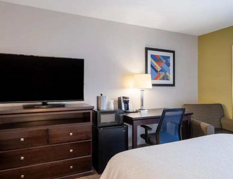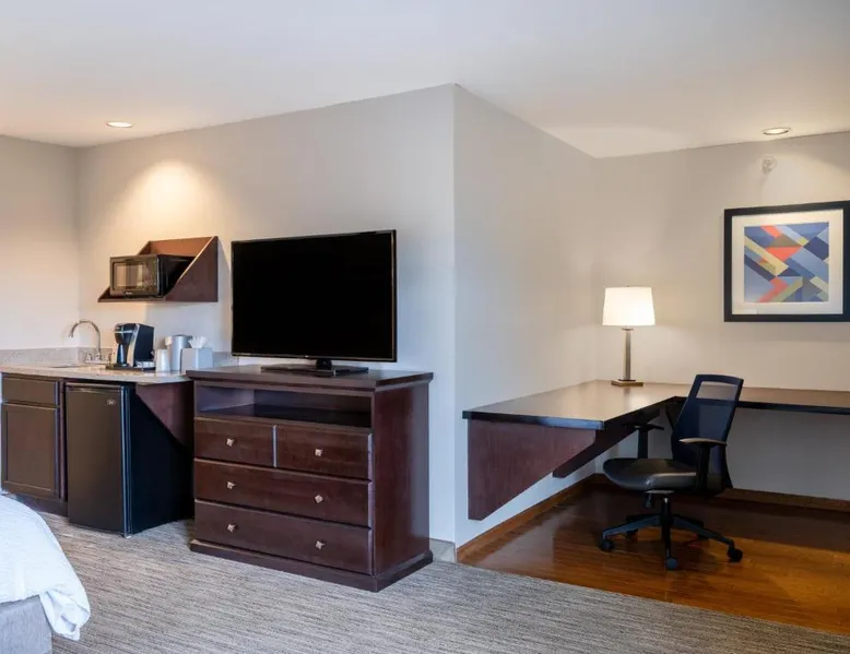Comfortable Accommodations: Holiday Inn Express & Suites Chicago-Libertyville by IHG in Libertyville offers family rooms with air-conditioning, private bathrooms, and free WiFi. Each room includes a work desk, TV, and sofa, ensuring a pleasant stay. Facilities and Services: Guests can enjoy a fitness center, lounge, and 24-hour front desk. Additional amenities include a business area, express check-in and check-out, and free on-site parking. The property staff and service support receive high ratings from guests. Local Attractions: Located 29 mi from Chicago O'Hare International Airport, the hotel is near Six Flags Great America (5.6 mi), Ravinia Pavilion (16 mi), and Chicago Botanic Garden (17 mi). Guests can also engage in kayaking or canoeing in the surrounding area. Features a sofa bed. Also offers free WiFi, a flat-screen TV and a seating area.