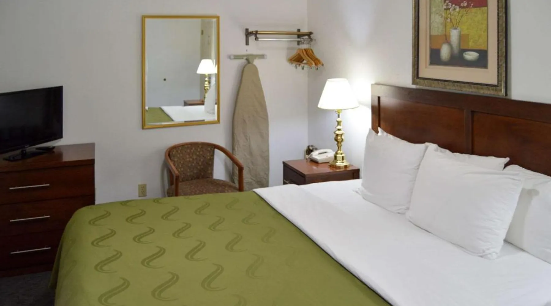 The Quality Inn Yosemite Valley Gateway hotel in Mariposa, CA is located near the junction of California's famous Highway 49, known as California's Golden Chain, and State Route 140, the all-year access to the west entrance of Yosemite Valley and Yosemite National Park. This Mariposa, CA hotel features many full-service amenities, including free wireless high-speed Internet access, free weekday newspaper, free coffee in the lobby, seasonal outdoor pool and hot tub. Business travelers to this Mariposa, CA hotel will appreciate additional conveniences like access to copy and fax services. Breakfast is a Continental type with hot cereal, muffins, apples, coffee and hot tea. Family suites with full kitchens are offered. All rooms at this California hotel are nonsmoking. The Yosemite National Park is open all year. Mariposa is at the southern end of the Mother Lode and has a rich history. The Mariposa County Courthouse, California State Mining and Mineral Museum, Mariposa Museum & History Center and the Historic Mariposa County Jail remind visitors of a colorful past. Breakfast is available daily. The spacious family room features air conditioning, a tea and coffee maker, as well as a private bathroom boasting a bath and a shower. The family room has carpeted floors, a seating area with a flat-screen TV with cable channels, a wardrobe, a sofa, as well as heating. The unit has 2 beds.