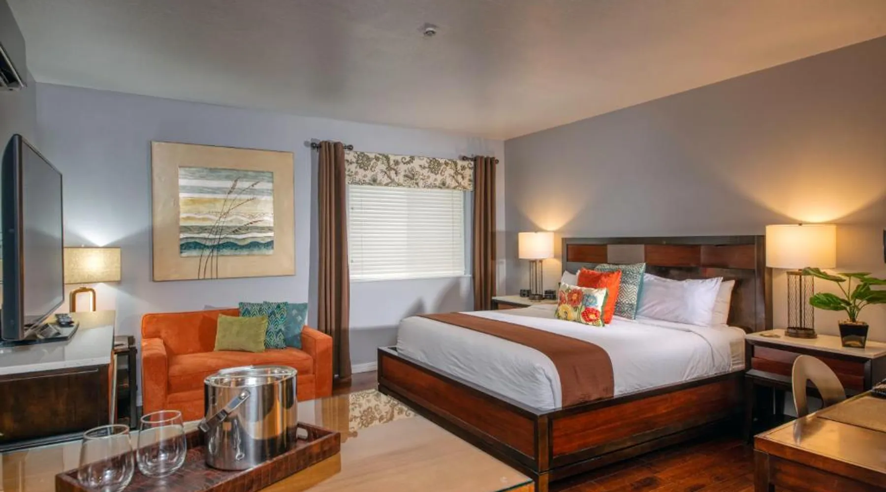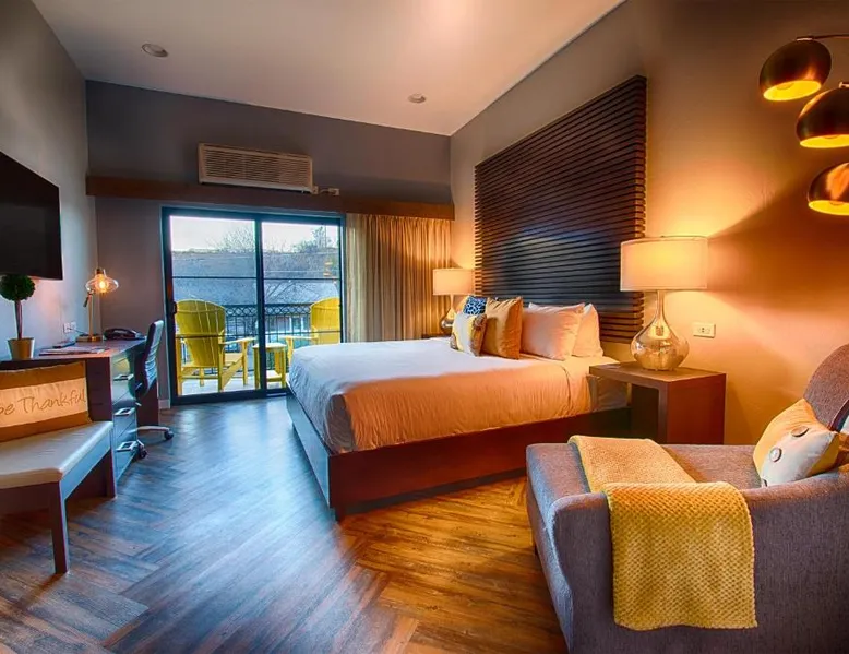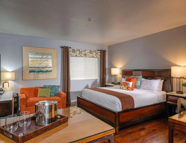 Comfortable Accommodations: The Tavern Hotel in Cottonwood offers comfortable rooms with air-conditioning, private bathrooms, and modern amenities. Each room includes a tea and coffee maker, work desk, and free toiletries. Exceptional Facilities: Guests can enjoy a fitness center, terrace, year-round outdoor swimming pool, and free WiFi. Additional facilities include an outdoor fireplace, fitness room, and electric vehicle charging station. Dining Experience: The modern, family-friendly restaurant serves American cuisine with a continental breakfast featuring fresh pastries and juice. An on-site coffee shop provides a relaxing atmosphere. Convenient Location: Located 37 mi from Ernest A Love Field Airport, the hotel is near attractions such as Cliff Castle Casino (18 mi), Montezuma Castle National Monument (20 mi), and Chapel of the Holy Cross (24 mi). Highly rated for its convenient location and excellent restaurant. This room is equipped with beautiful hardwood floors, a stone tiled bathroom with a walk-in shower, granite counter tops, high-end fixtures, heating and air conditioning. A flat-screen cable TV is also featured. For a relaxing lodging experience you can enjoy free luxury spa toiletries, plush bedding with cotton linens, and a soft-topped mattress.