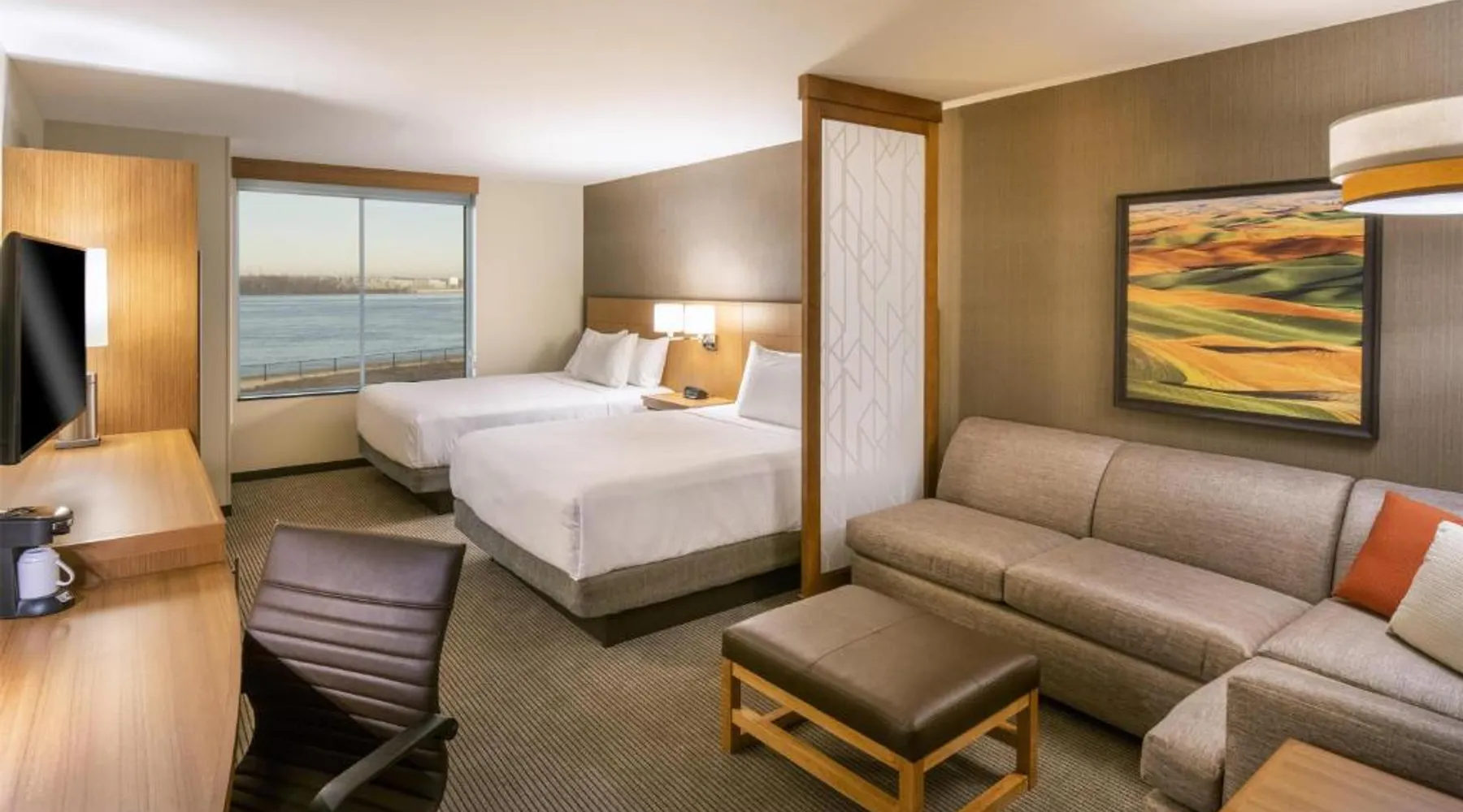 Comfortable Accommodations: Rooms feature air-conditioning, private bathrooms, tea and coffee makers, hairdryers, sofa beds, refrigerators, work desks, seating areas, free toiletries, showers, TVs, and wardrobes. Guests appreciate the room cleanliness and comfort. Dining and Leisure: The hotel offers an American restaurant, bar, indoor swimming pool, fitness center, terrace, and free WiFi. Additional facilities include a lounge, outdoor fireplace, fitness room, elevator, 24-hour front desk, minimarket, business area, outdoor seating, express check-in and check-out, and luggage storage. Location and Attractions: Located in East Moline, the hotel is 8.1 mi from Quad City International Airport. Nearby attractions include Fryxell Geology Museum (5.6 mi), Black Hawk State Historic Site (9.9 mi), TaxSlayer Center (3.7 mi), Quad Cities Waterfront Convention Center (5 mi), and Adler Theater (8.1 mi). This air-conditioned quadruple room includes a flat-screen TV with cable channels and a private bathroom. The unit offers 2 beds.