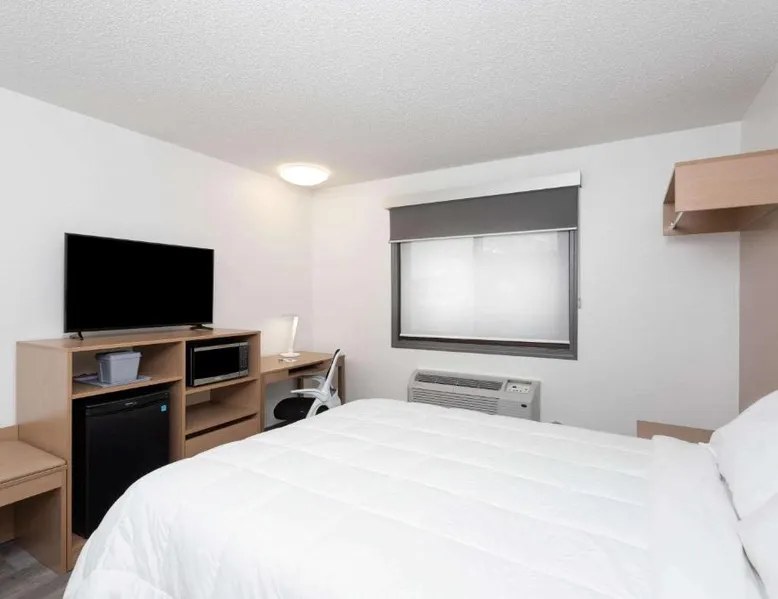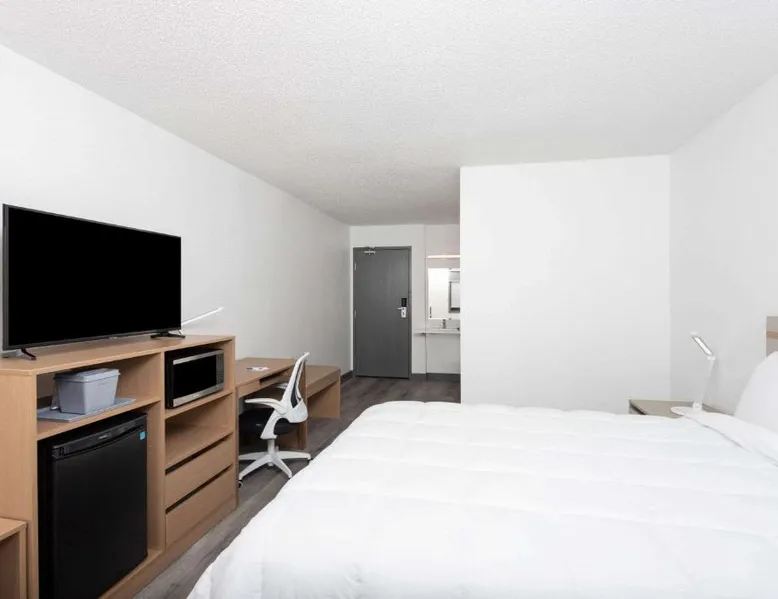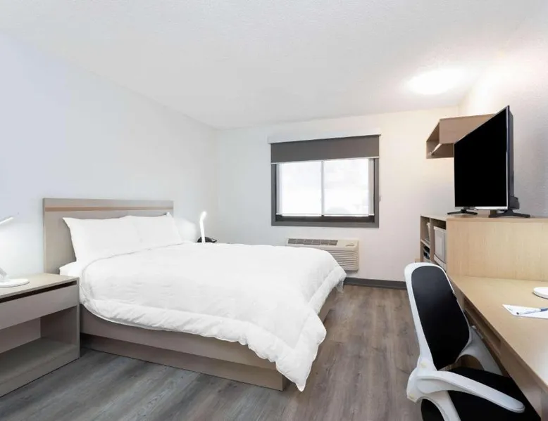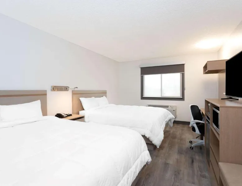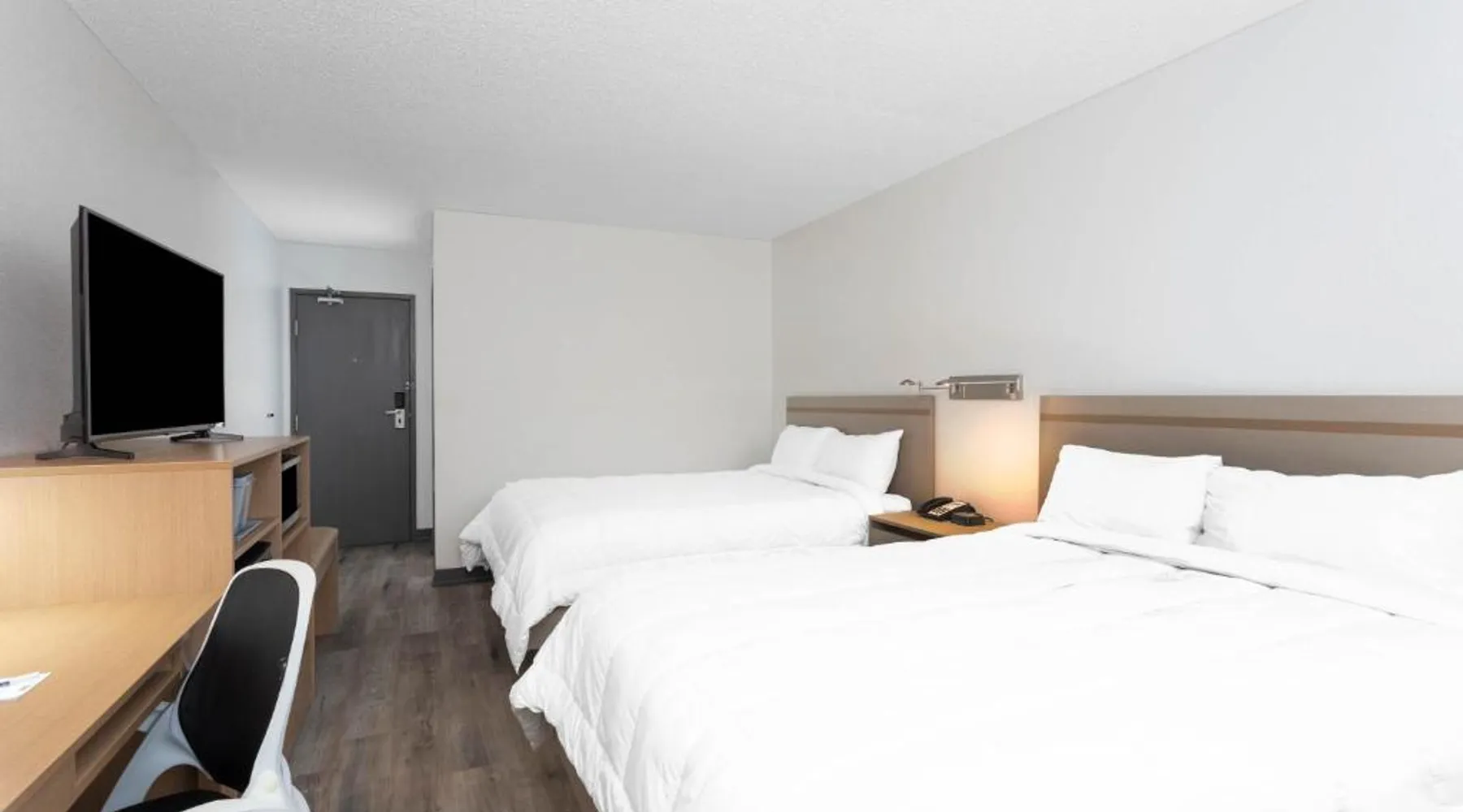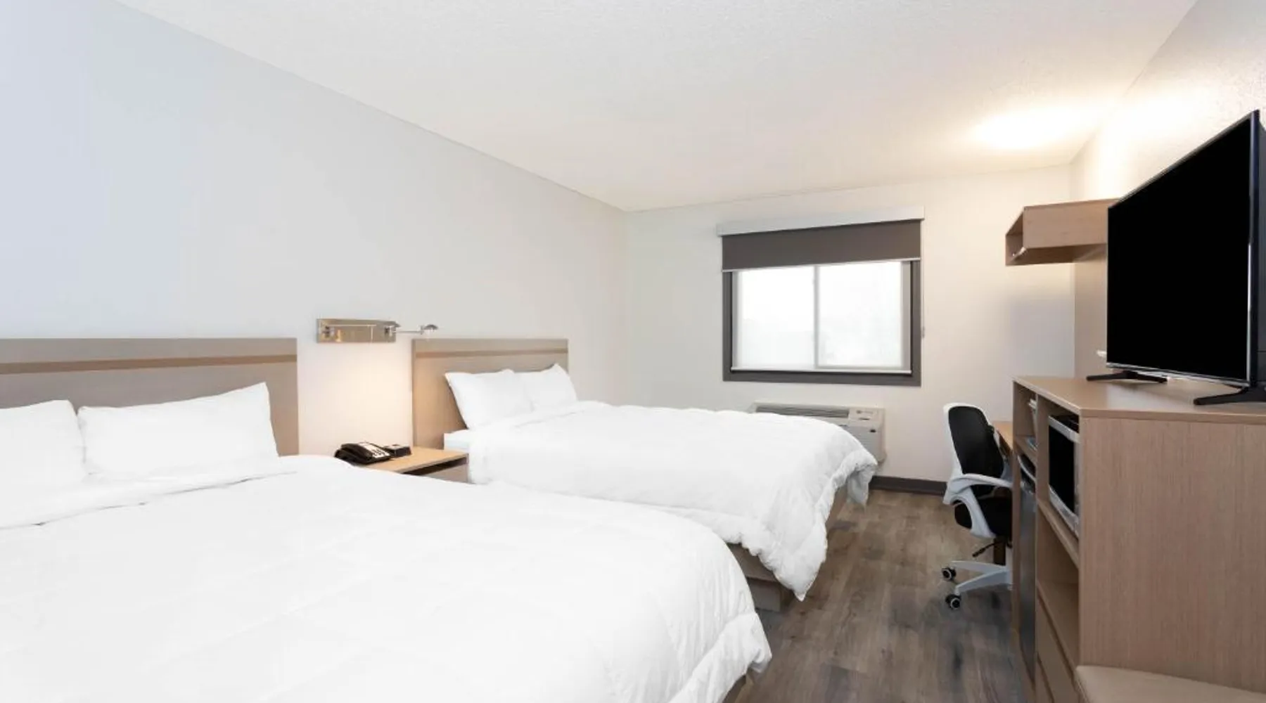 Comfortable Accommodations: Travelodge by Wyndham Elkhart in Elkhart offers air-conditioned rooms with private bathrooms, refrigerators, microwaves, showers, and TVs. Guests enjoy free WiFi and a fitness center for added convenience. Convenient Facilities: The hotel features a lounge, 24-hour front desk, housekeeping service, electric vehicle charging station, and a business area. Free on-site private parking is available for all guests. Prime Location: Located 21 mi from South Bend Regional Airport, the property is near Noter Dame Stadium (16 mi), Midwest Museum of American Art (3.7 mi), and other attractions. Guests appreciate the room cleanliness, attentive staff, and excellent value for money. The spacious double room provides air conditioning and heating, as well as a private bathroom featuring a shower. The unit offers 2 beds.