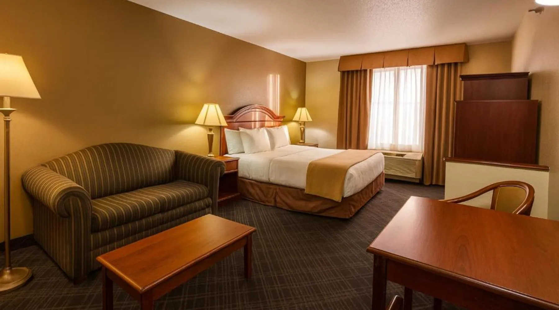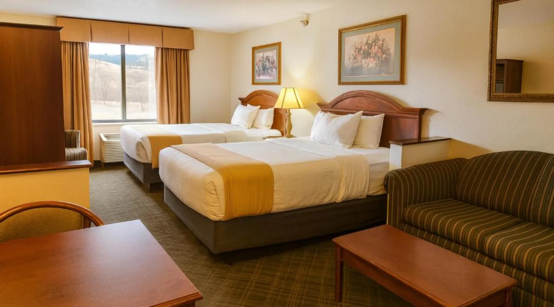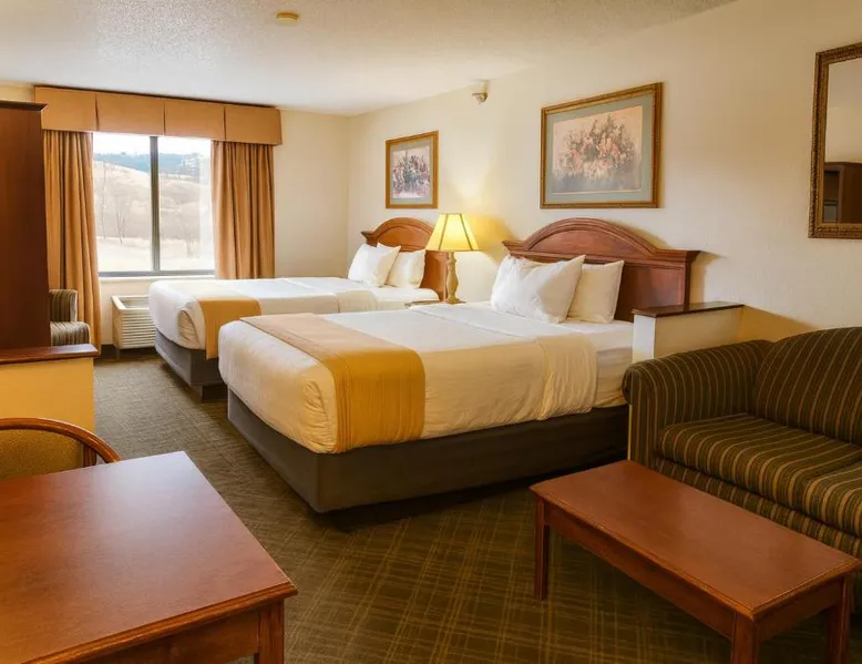 This Hot Springs hotel is located less than one mile from The Mammoth Site, an active fossil dig site and research center. Free Wi-Fi is available throughout the hotel. Rooms at the Stay USA Hotel and Suites are equipped with a microwave and a refrigerator. Cable TV is included and an in-room coffee maker and ironing facilities are available. Guests of the USA Stay can exercise in the on-site fitness center. USA Stay Hotel is 15 miles from Wind Cave National Park and less than 52 miles from Mount Rushmore. Offering free Wi-Fi and cable TV, this spacious room includes a sofa. A refrigerator and a microwave are also provided.