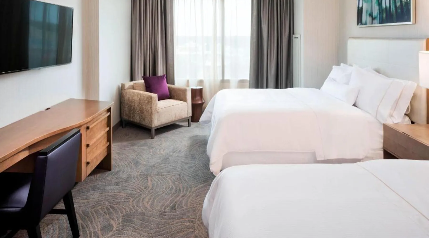 Comfortable Accommodations: Rooms feature air-conditioning, private bathrooms, city views, and modern amenities such as free toiletries and flat-screen TVs. Executive lounge access and free WiFi enhance the stay. Dining and Leisure: The family-friendly restaurant offers American cuisine in a traditional and modern setting. Guests can also enjoy brunch, lunch, and dinner. Additional facilities include a fitness center, indoor swimming pool, terrace, and bar. Convenient Location: Located in Jackson, the hotel is 9.9 mi from Jackson-Evers Airport and near attractions like Mississippi Coliseum (1.1 mi) and Jackson Convention Complex (7-minute walk). Free bicycles and paid on-site private parking are available. Exceptional Service: Highly rated for its attentive staff and excellent service support, the hotel ensures a pleasant and comfortable stay for all guests. The spacious double room provides air conditioning, a wardrobe, as well as a private bathroom featuring a bath or a shower and a hairdryer. This double room features a carpeted floor, heating, a flat-screen TV and city views. The unit offers 2 beds.