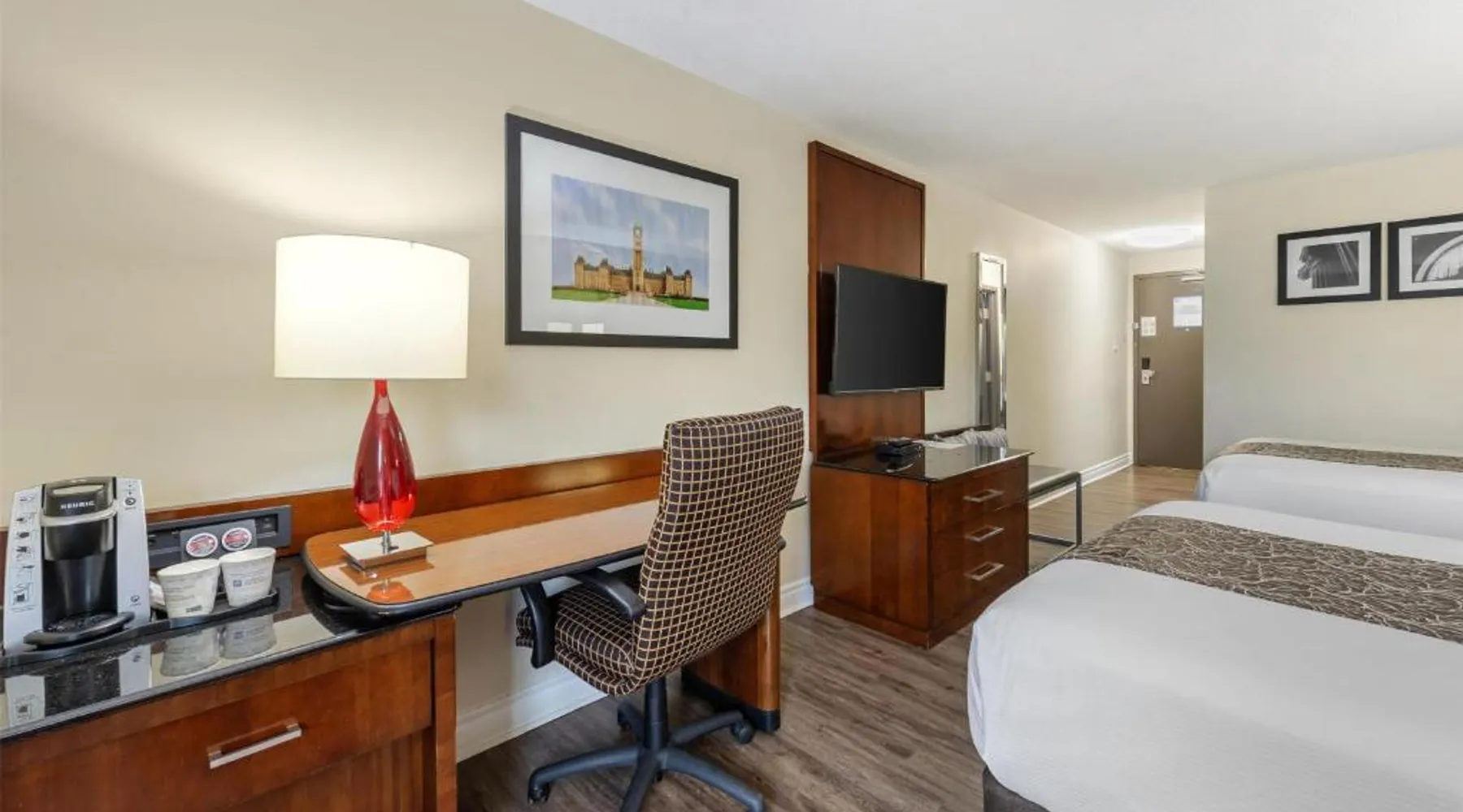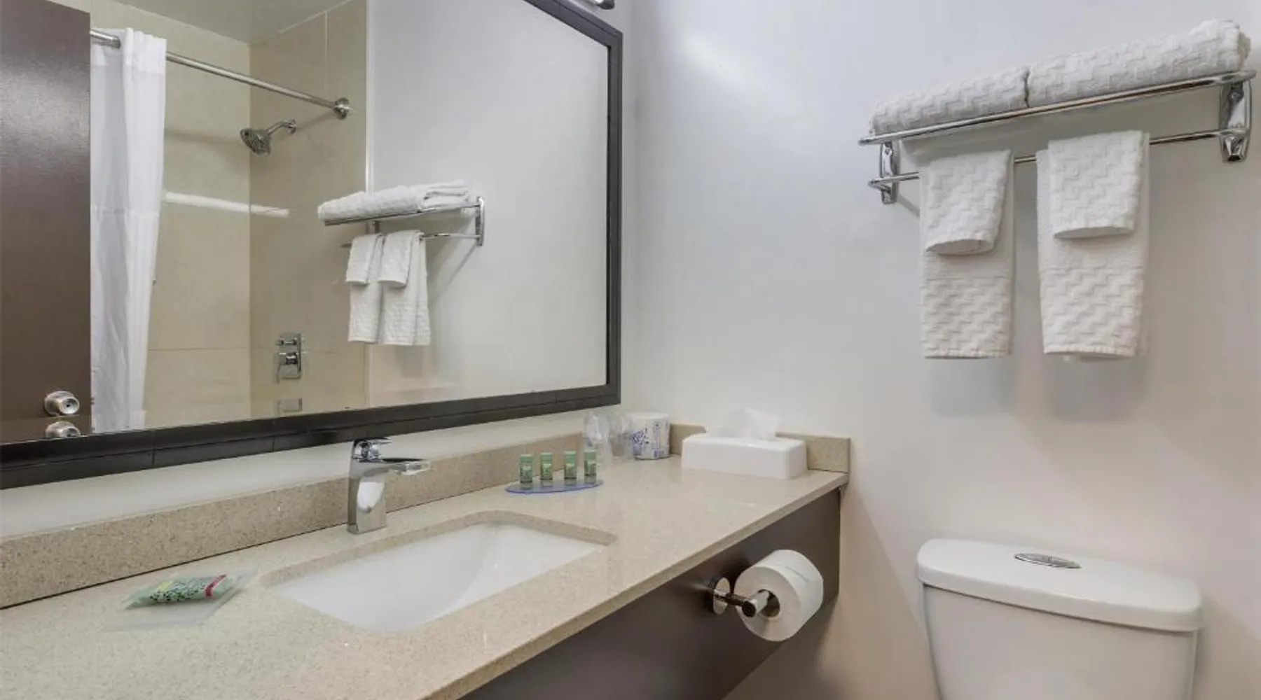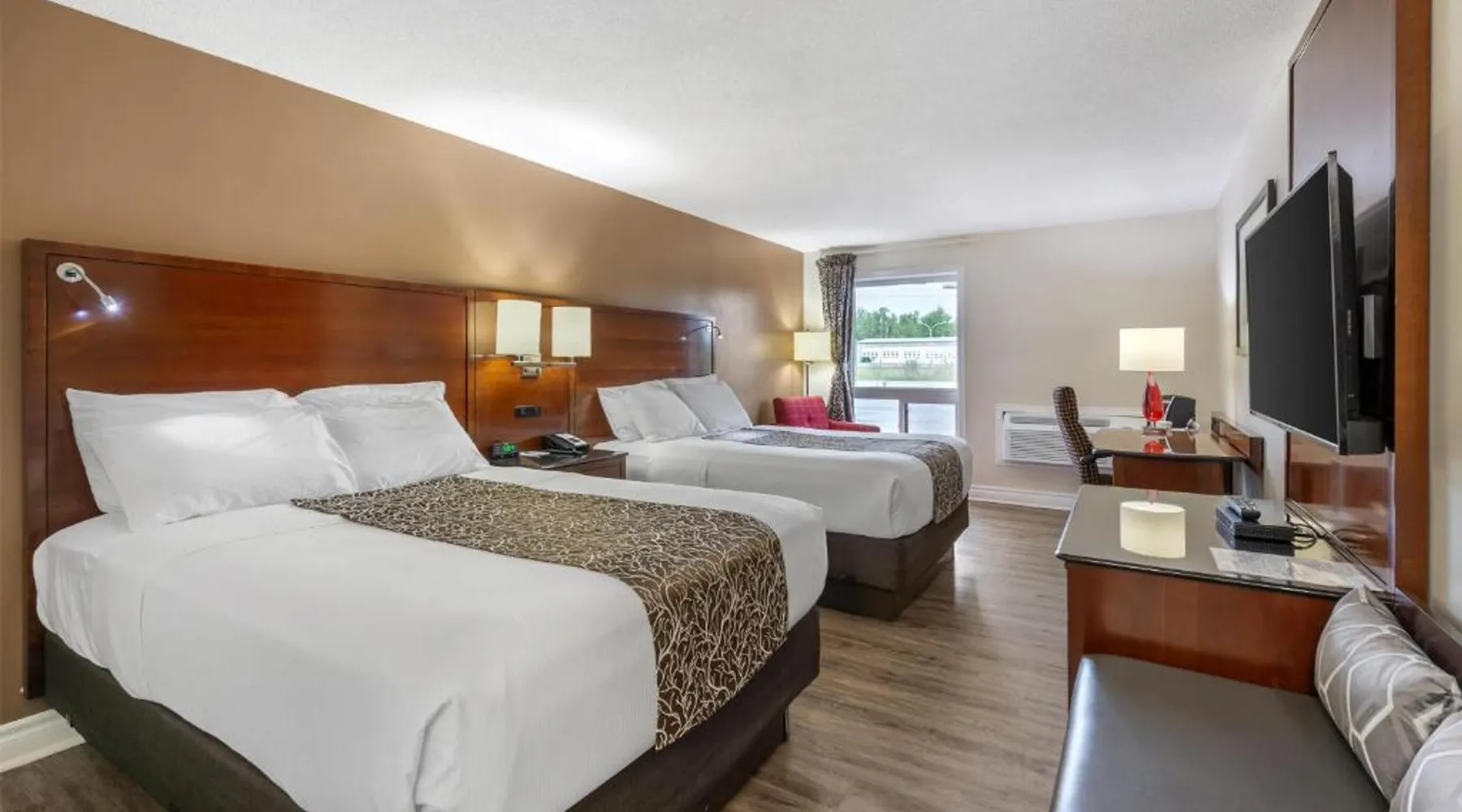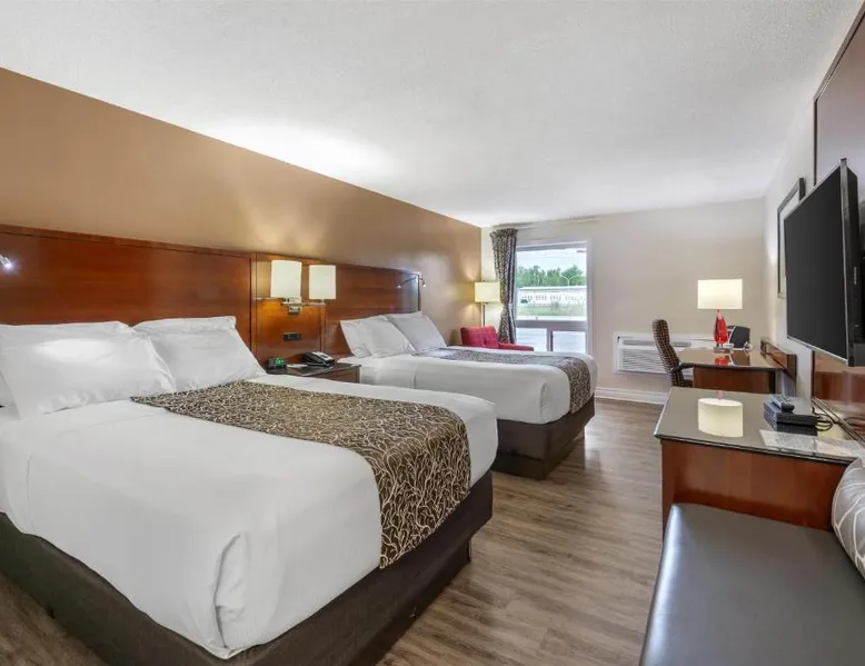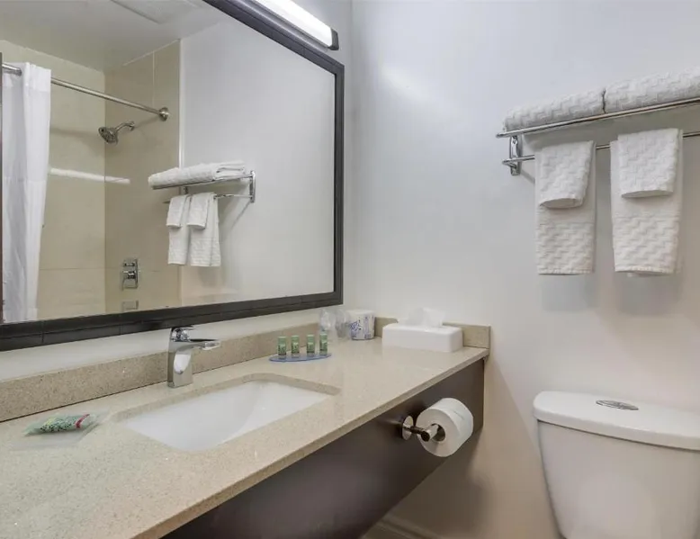 Comfortable Accommodations: SureStay Hotel by Best Western Kemptville in Kemptville offers family rooms with air-conditioning, private bathrooms, and free WiFi. Each room includes a work desk, TV, and free toiletries. Convenient Facilities: Guests can enjoy a lounge, 24-hour front desk, housekeeping service, and free on-site parking. Additional amenities include streaming services, a business area, outdoor seating, picnic area, and barbecue facilities. Delicious Breakfast: A continental or buffet breakfast is provided each morning, highly praised by guests for its quality and variety. Prime Location: Located 24 mi from Ottawa Macdonald-Cartier International Airport and near an ice-skating rink, the hotel is also close to attractions such as the EY Center (27 mi) and Canadian Tire Center (29 mi). Providing free toiletries, this quadruple room includes a private bathroom with a bath, a shower and a hairdryer. The quadruple room provides air conditioning, a tea and coffee maker, heating and a flat-screen TV with streaming services. The unit offers 2 beds.