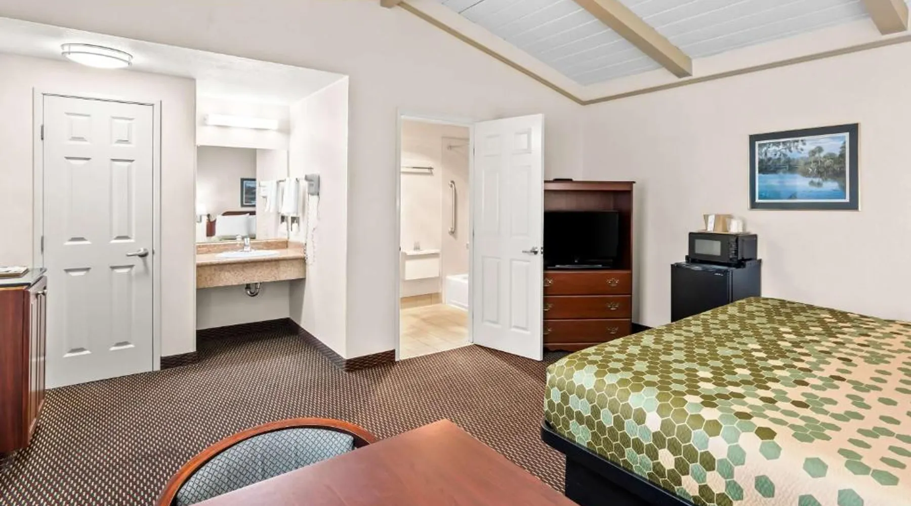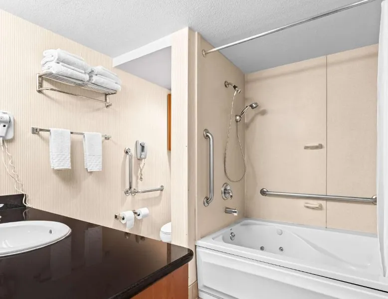 Comfortable Accommodations: SureStay Hotel by Best Western Castro Valley in Castro Valley offers family rooms with interconnected options. Each room includes a tea and coffee maker, hairdryer, refrigerator, microwave, and free WiFi. Convenient Facilities: Guests benefit from a 24-hour front desk, free on-site private parking, and a continental breakfast with juice, fresh pastries, and fruits. Additional amenities include a microwave, refrigerator, and tea and coffee maker. Prime Location: Located 9.3 mi from San Francisco Bay Oakland International Airport, the inn is near attractions such as Oakland Coliseum (11 mi), Oakland Museum of California (16 mi), and Lake Merritt (16 mi). Guests appreciate the convenient location, attentive staff, and clean rooms. The double room provides a tea and coffee maker. The unit offers 1 bed.