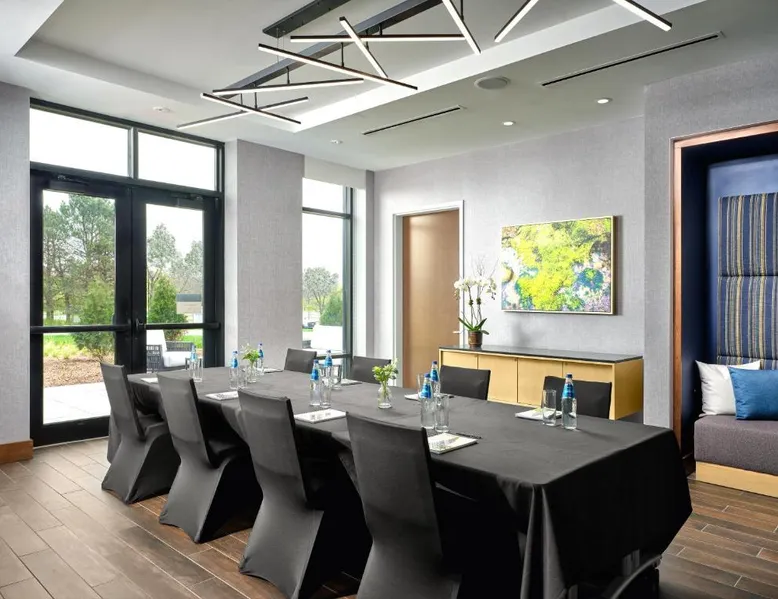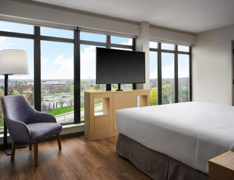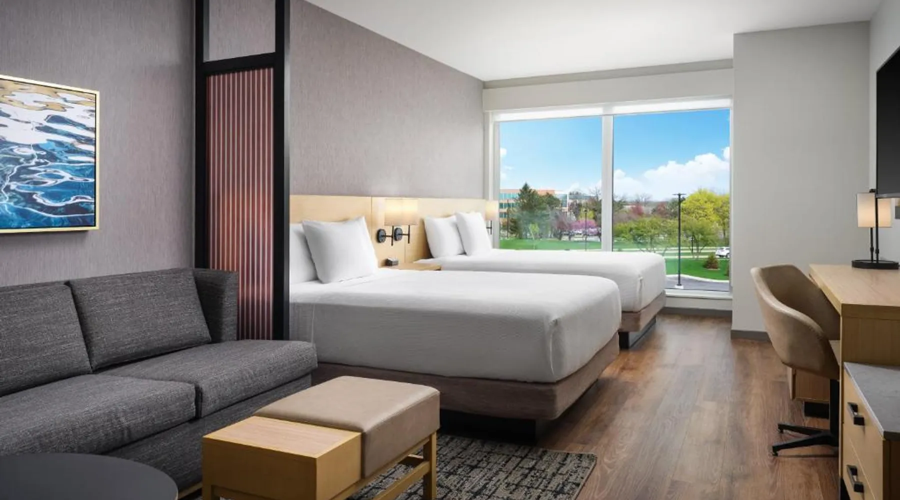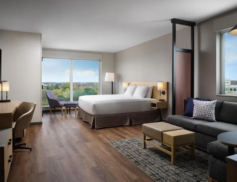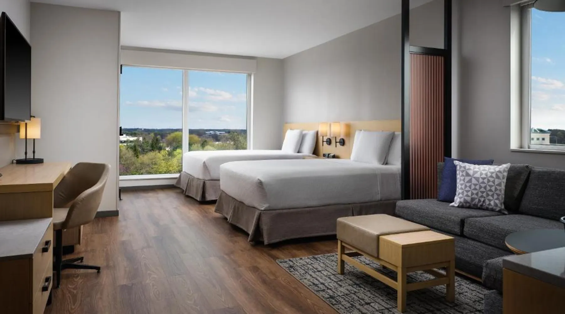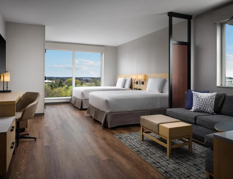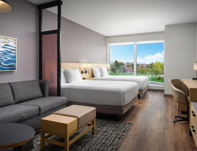 Comfortable Accommodations: The Forester Hotel in Lake Forest offers air-conditioned rooms with private bathrooms, tea and coffee makers, and free WiFi. Each room includes a work desk, seating area, and parquet floors. Dining and Leisure: Guests can enjoy a modern restaurant serving American cuisine, a bar, and a fitness center. Additional facilities include an outdoor fireplace, lounge, and outdoor seating area. Convenient Location: Located 20 mi from Chicago O'Hare International Airport, the hotel is near Six Flags Great America (12 mi) and Wrigley Field (30 mi). Free on-site private parking is available. Guest Services: The hotel provides a 24-hour front desk, daily housekeeping, room service, and express check-in and check-out. Live music and bicycle parking enhance the guest experience. Providing free toiletries, this quadruple room includes a private bathroom with a shower and a hairdryer. The quadruple room features parquet floors, a seating area with a flat-screen TV with cable channels, air conditioning, a tea and coffee maker, as well as a wardrobe. The unit offers 3 beds.
