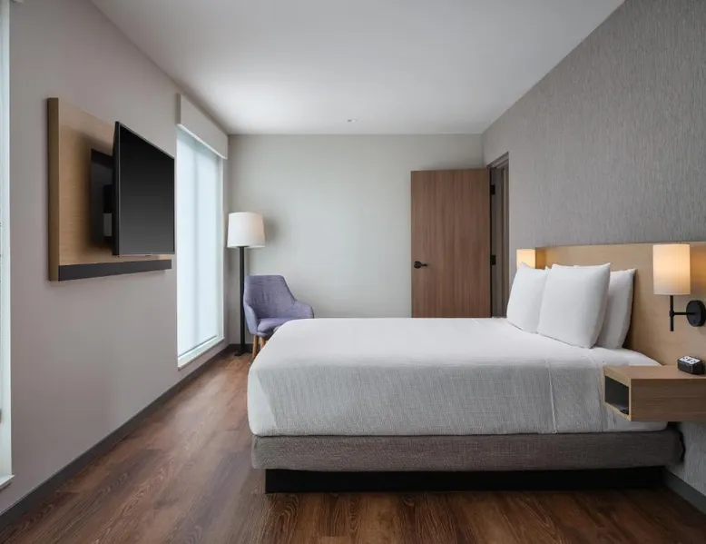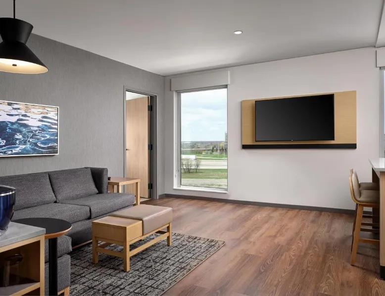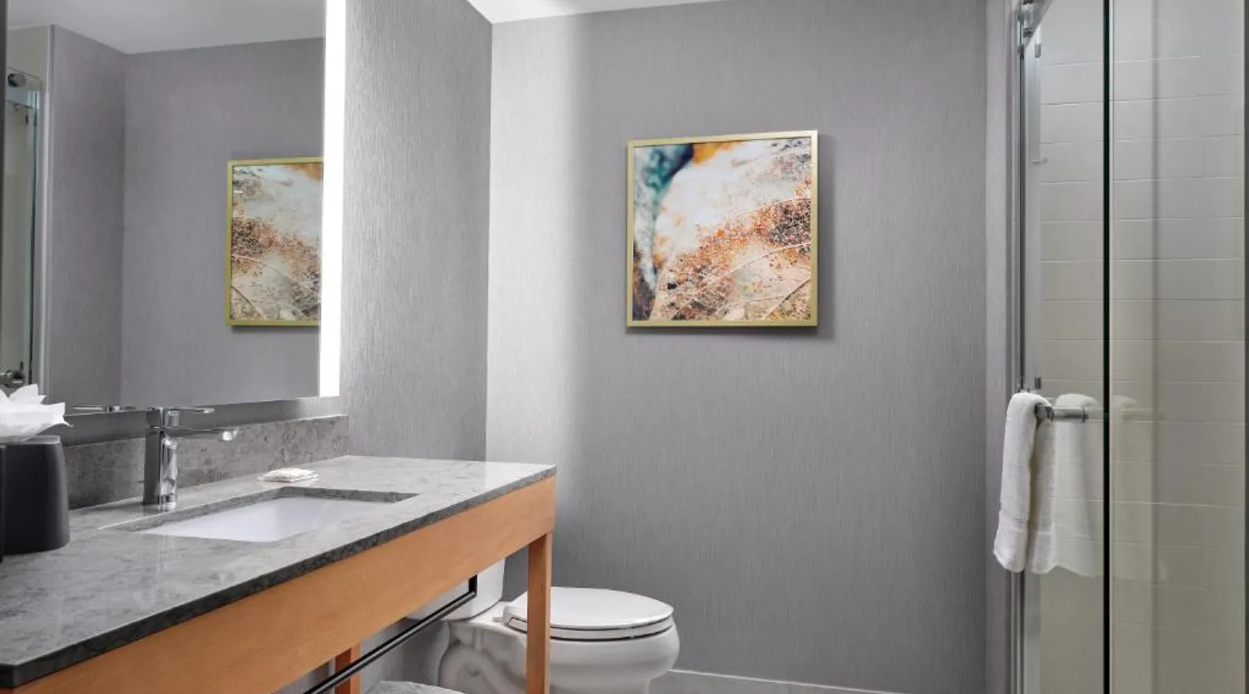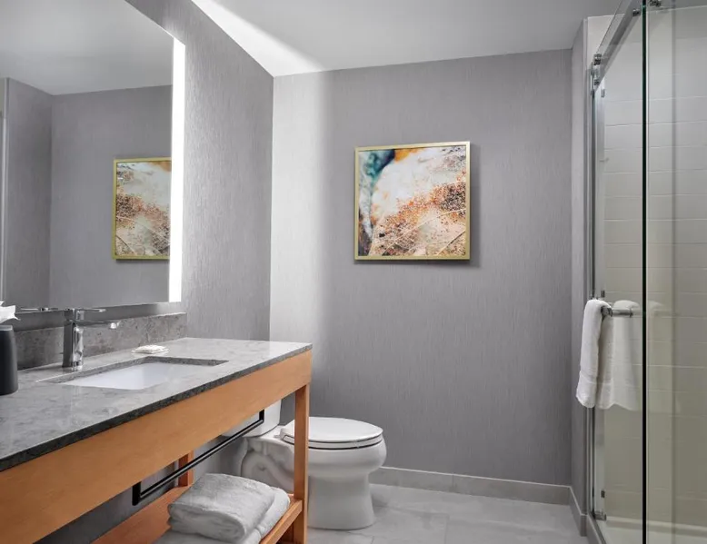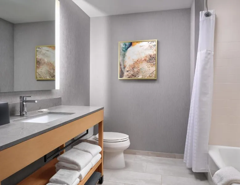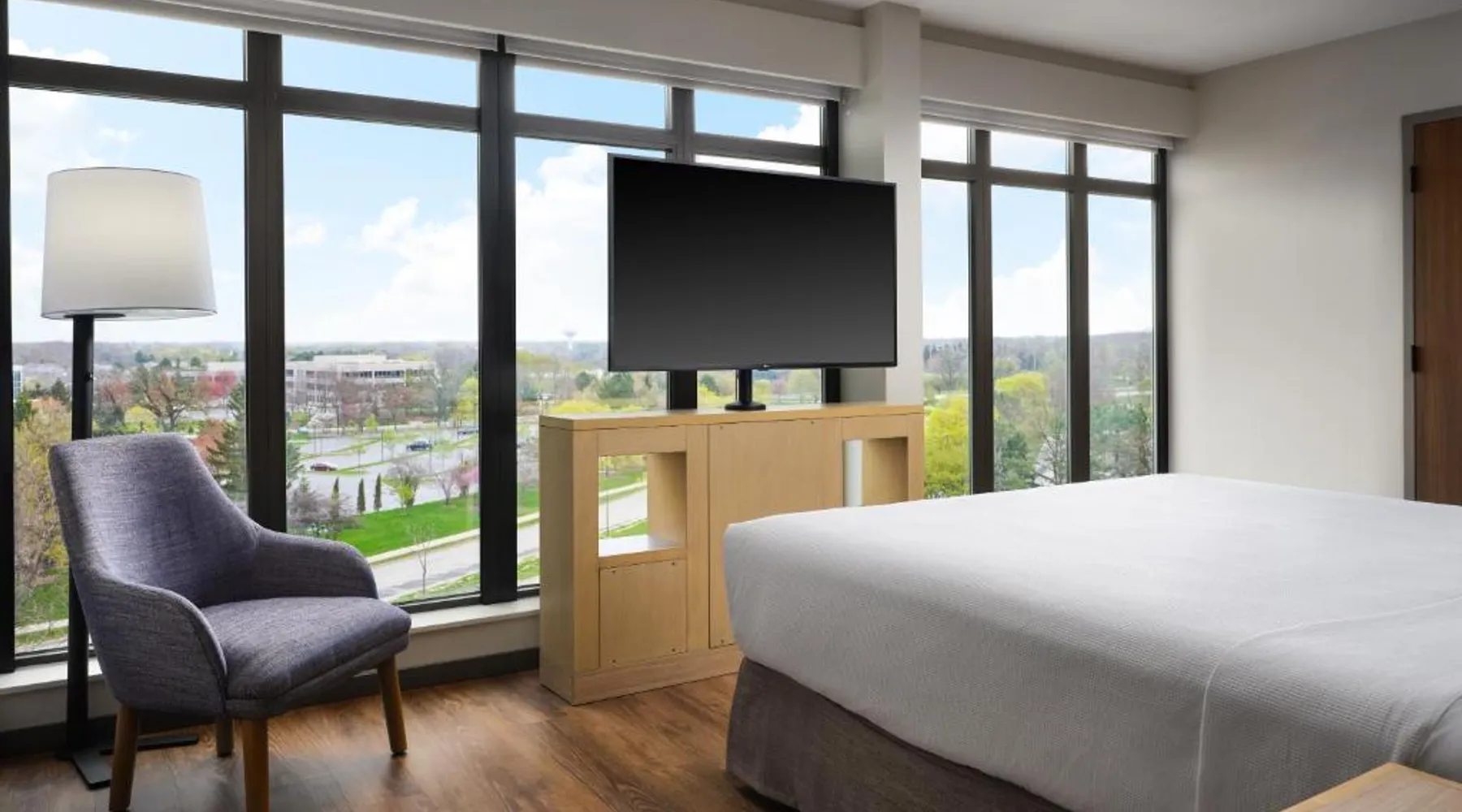Comfortable Accommodations: The Forester Hotel in Lake Forest offers air-conditioned rooms with private bathrooms, tea and coffee makers, and free WiFi. Each room includes a work desk, seating area, and parquet floors. Dining and Leisure: Guests can enjoy a modern restaurant serving American cuisine, a bar, and a fitness center. Additional facilities include an outdoor fireplace, lounge, and outdoor seating area. Convenient Location: Located 20 mi from Chicago O'Hare International Airport, the hotel is near Six Flags Great America (12 mi) and Wrigley Field (30 mi). Free on-site private parking is available. Guest Services: The hotel provides a 24-hour front desk, daily housekeeping, room service, and express check-in and check-out. Live music and bicycle parking enhance the guest experience. Providing free toiletries, this quadruple room includes a private bathroom with a shower and a hairdryer. The quadruple room features parquet floors, a seating area with a flat-screen TV with cable channels, air conditioning, a tea and coffee maker, as well as a wardrobe. The unit offers 3 beds.