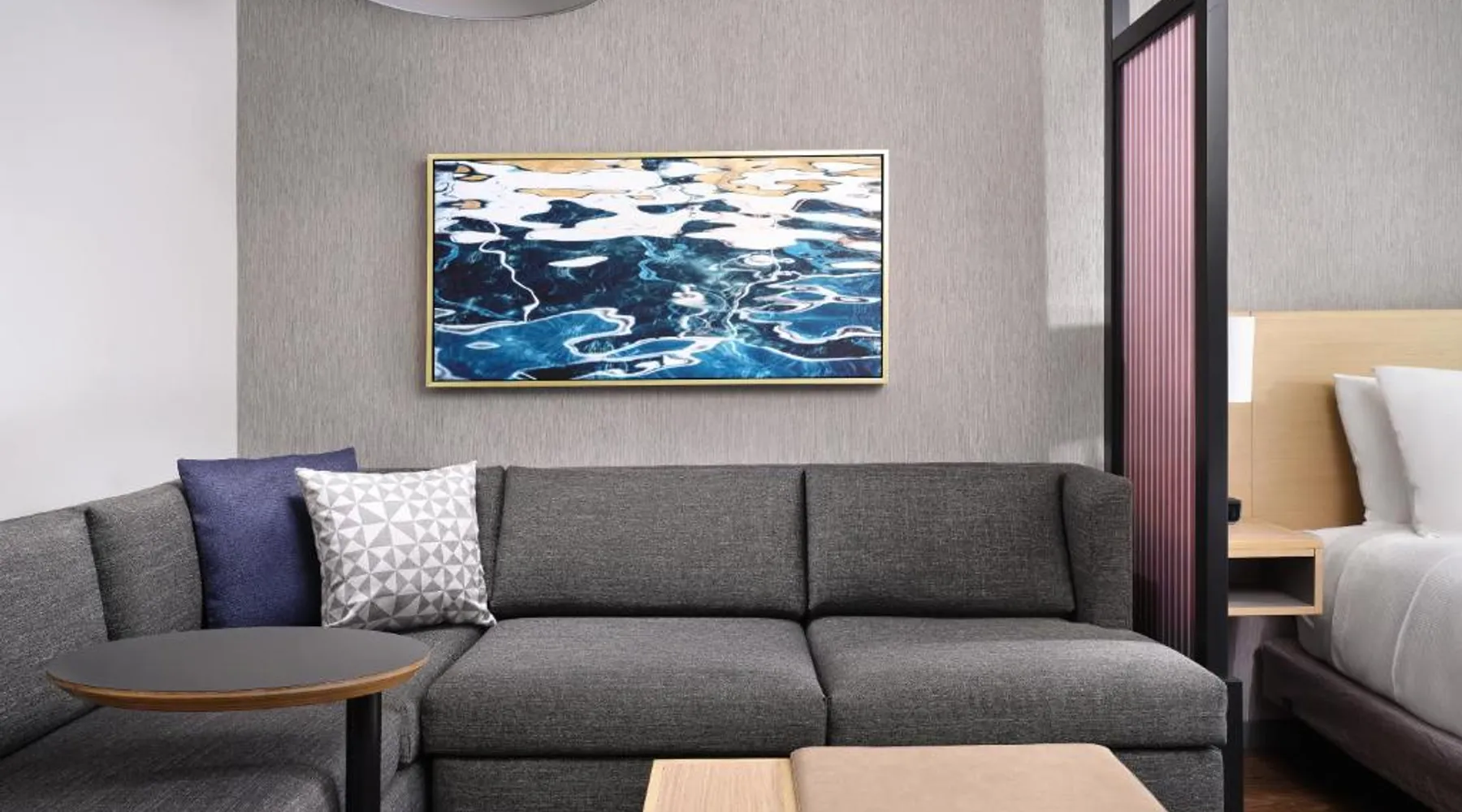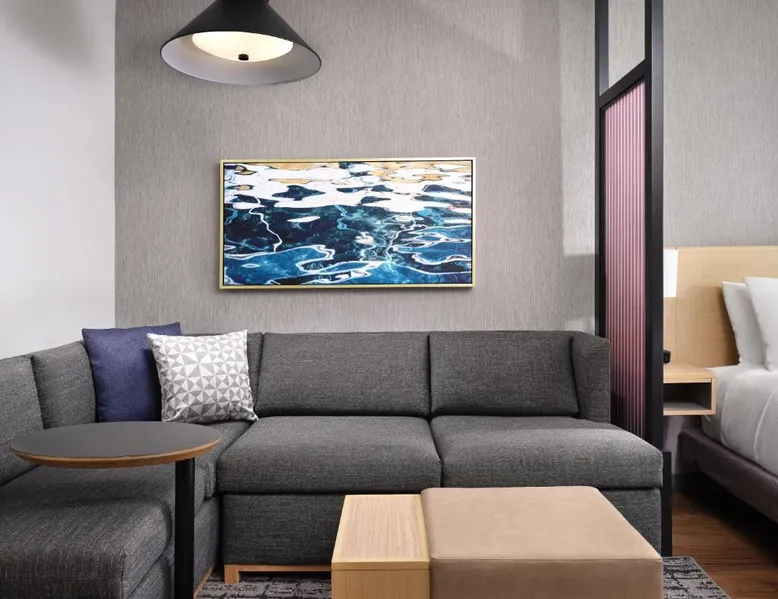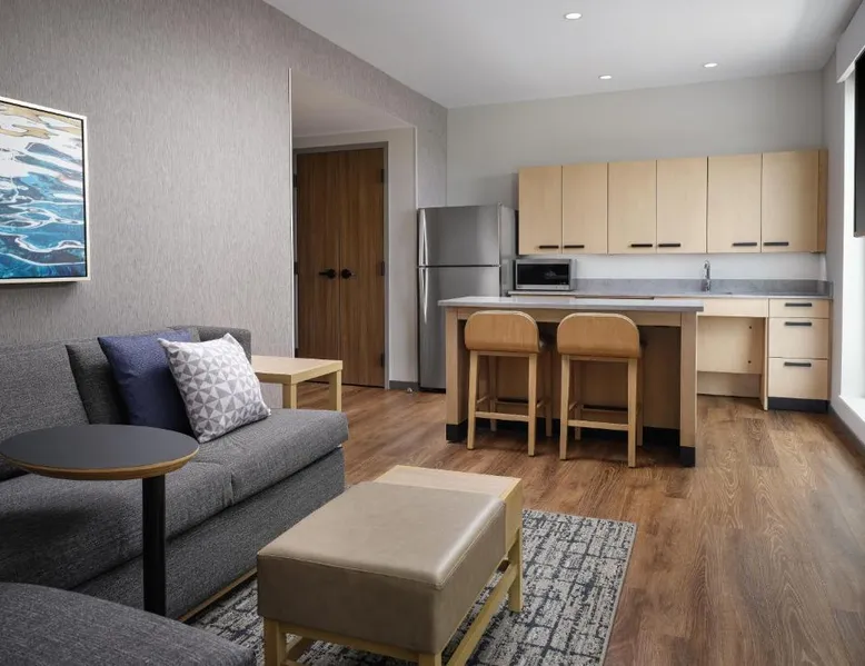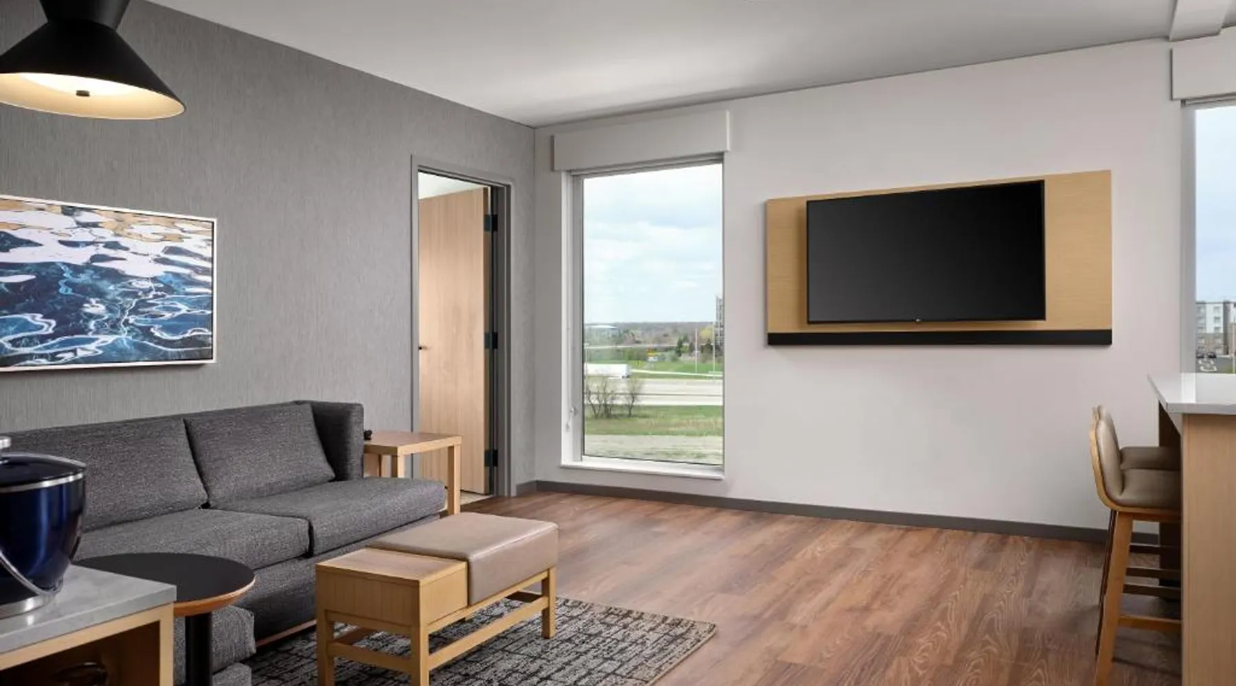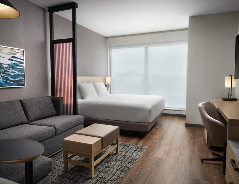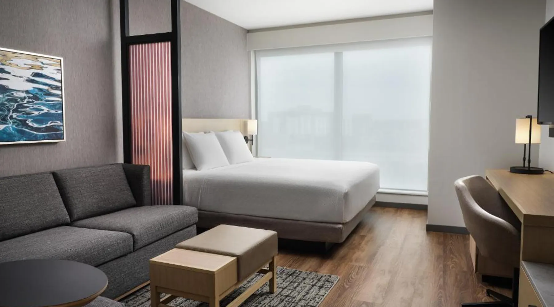 Comfortable Accommodations: The Forester Hotel in Lake Forest offers air-conditioned rooms with private bathrooms, tea and coffee makers, and free WiFi. Each room includes a work desk, seating area, and parquet floors. Dining and Leisure: Guests can enjoy a modern restaurant serving American cuisine, a bar, and a fitness center. Additional facilities include an outdoor fireplace, lounge, and outdoor seating area. Convenient Location: Located 20 mi from Chicago O'Hare International Airport, the hotel is near Six Flags Great America (12 mi) and Wrigley Field (30 mi). Free on-site private parking is available. Guest Services: The hotel provides a 24-hour front desk, daily housekeeping, room service, and express check-in and check-out. Live music and bicycle parking enhance the guest experience. Providing free toiletries, this quadruple room includes a private bathroom with a shower and a hairdryer. The quadruple room features parquet floors, a seating area with a flat-screen TV with cable channels, air conditioning, a tea and coffee maker, as well as a wardrobe. The unit offers 3 beds.