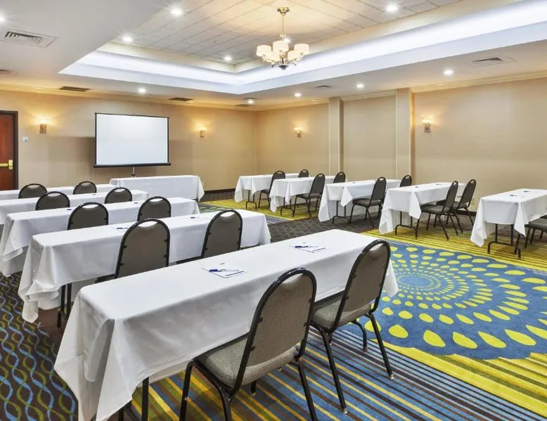 Comfortable Accommodations: Holiday Inn Express Hotel & Suites - Belleville Area by IHG in Belleville offers spacious rooms with air-conditioning, private bathrooms, and free WiFi. Each room includes a tea and coffee maker, mini-bar, and work desk. Wellness and Leisure: Guests can enjoy spa facilities, a sauna, and an indoor swimming pool. The hotel features a fitness center, steam room, and free airport shuttle service. Convenient Location: Located 8.7 mi from Detroit Metro Airport, the hotel is near attractions such as Eastern Michigan University (9.3 mi) and the Ann Arbor Hands-On Museum (17 mi). Free on-site private parking is available. Guest Services: The property offers a 24-hour front desk, housekeeping, and express check-in and check-out services. Additional amenities include a lounge, business area, and free continental breakfast. Bed type and smoking preferences are based on availability and cannot be guaranteed.