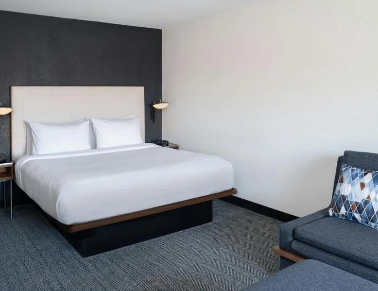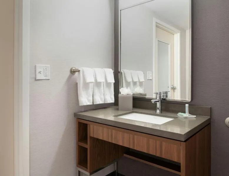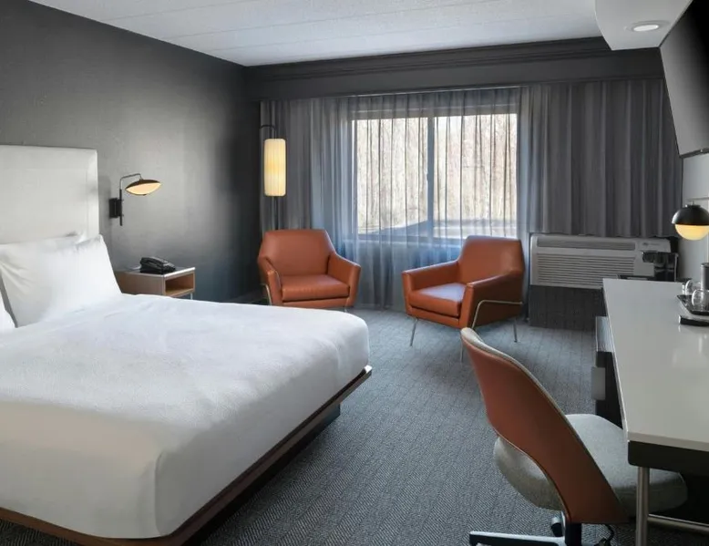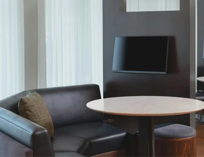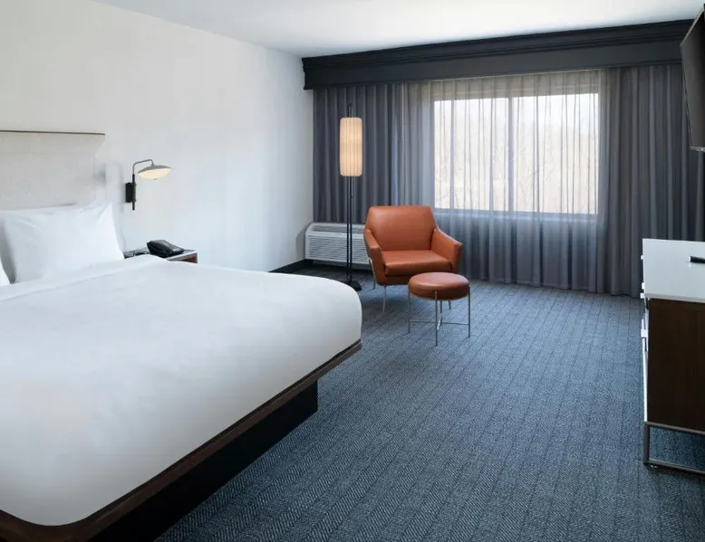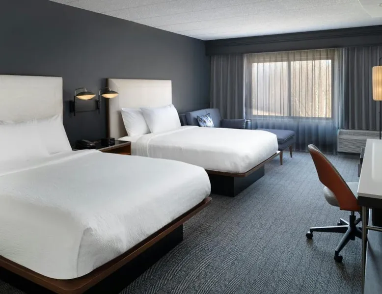 Comfortable Accommodations: Courtyard by Marriott Providence Lincoln in Lincoln offers family rooms with air-conditioning, private bathrooms, and free WiFi. Each room includes a work desk, refrigerator, and TV. Exceptional Facilities: Guests can enjoy an indoor swimming pool, fitness center, and free bicycles. Additional amenities include a hot tub, outdoor fireplace, and outdoor seating area. Dining Experience: The family-friendly restaurant serves American cuisine for dinner and cocktails. A bar provides a relaxing atmosphere for evening drinks. Convenient Location: Located 16 mi from T.F. Green Airport, the hotel is near Providence College (8.1 mi) and Brown University (9.3 mi). Free on-site parking is available. Guest Satisfaction: Highly rated for its attentive staff, convenient location, and room cleanliness. This room includes a sofa bed, a 49 inch Smart TV with streaming capabilities.