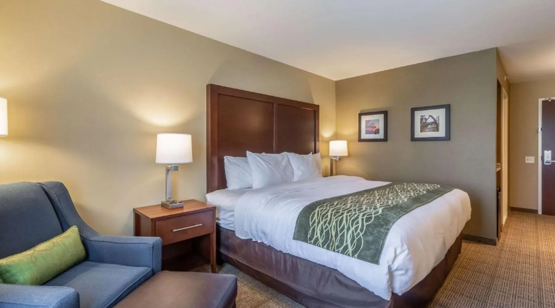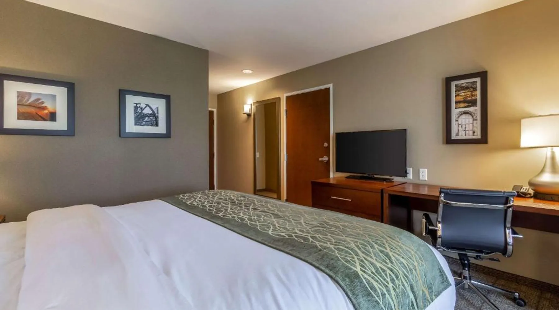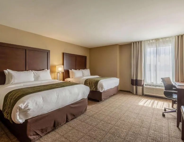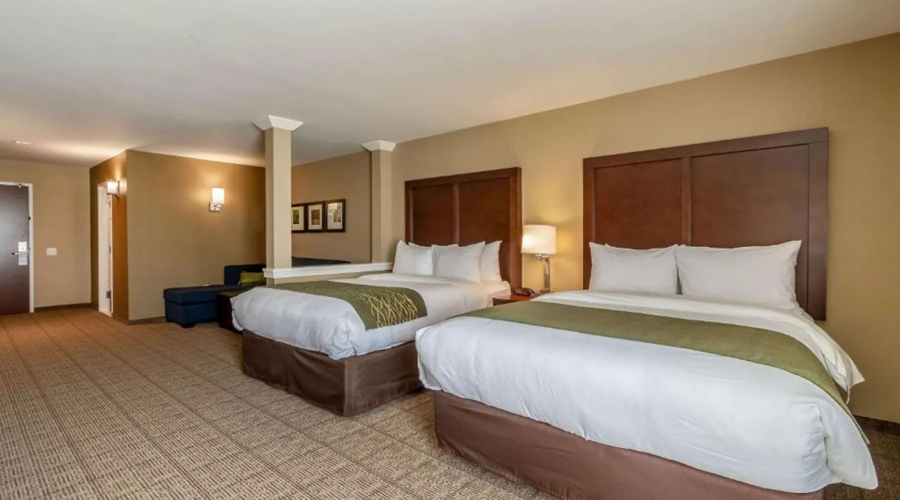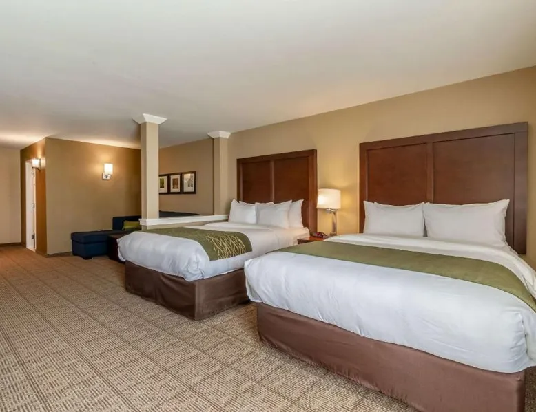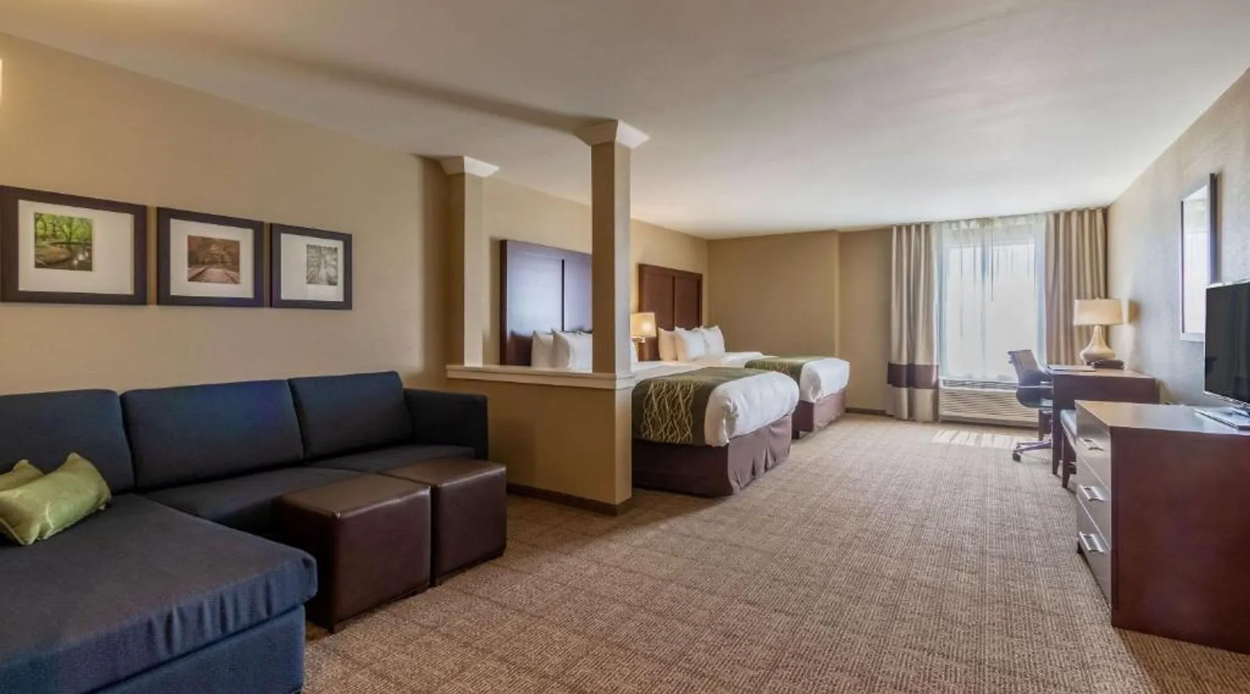 Comfortable Accommodations: Comfort Inn & Suites - Harrisburg Airport - Hershey South in Middletown offers family rooms with free WiFi, air-conditioning, and modern amenities. Leisure Facilities: Guests can enjoy a saltwater swimming pool, indoor pool, fitness center, and free airport shuttle service. Additional facilities include a lounge, business area, and electric vehicle charging station. Dining Options: The hotel serves an American breakfast with warm dishes, fresh pastries, pancakes, cheese, fruits, and juice. Location and Attractions: Located 1.9 mi from Harrisburg International Airport, the property is near attractions such as the National Civil War Museum (11 mi) and Hersheypark (12 mi). This suite features a tea and coffee maker, a seating area and a TV with cable channels.