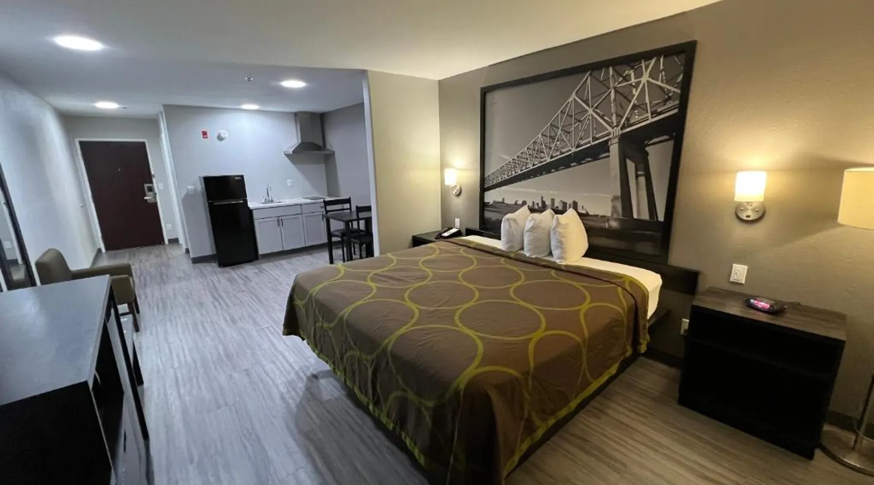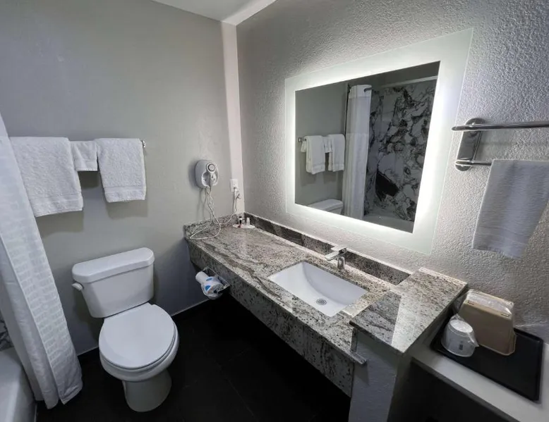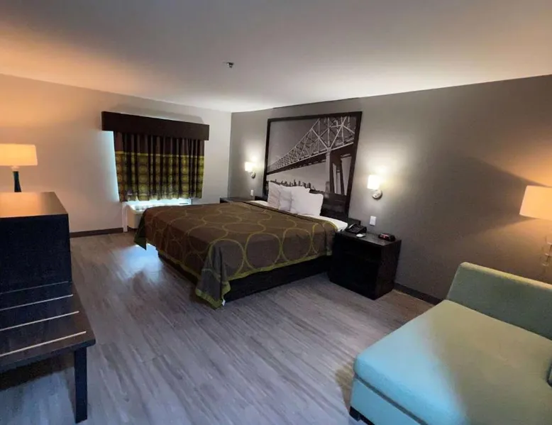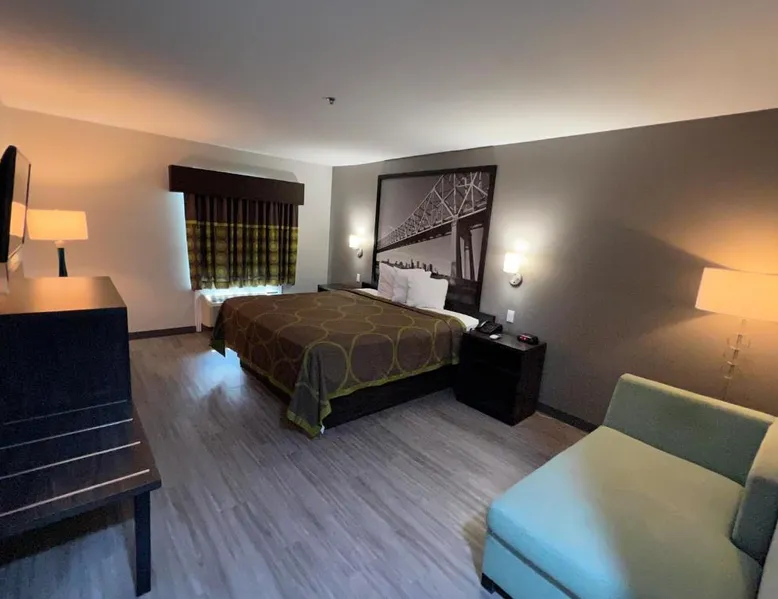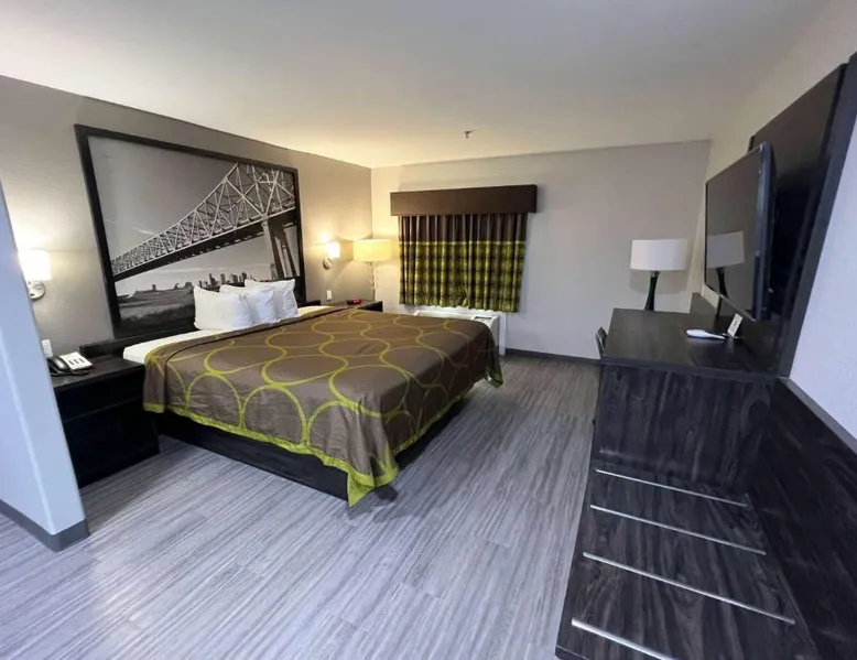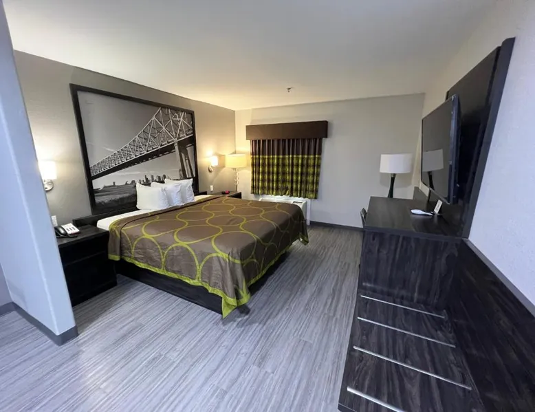 Comfortable Accommodations: Super 8 by Wyndham Lake Charles/Sulfur in Lake Charles offers family rooms with air-conditioning, private bathrooms, and free WiFi. Each room includes a refrigerator, work desk, and TV. Convenient Facilities: Guests benefit from a 24-hour front desk, business area, and free toiletries. Additional amenities include a sofa, microwave, and carpeted floors. Breakfast and Parking: A continental breakfast is served daily. The hotel provides free parking for all guests. Prime Location: Located 5 mi from Lake Charles Regional Airport, the hotel is near attractions such as McNeese State University (2.4 mi) and Lake Charles Historic District (2.5 mi). Guests appreciate the room cleanliness, convenient location, and value for money. This accessible room offers a desk, cable TV, microwave and refrigerator. Complimentary toiletries are provided. In the bathroom you will find an accessible bath or shower, shower chair and grab rails.