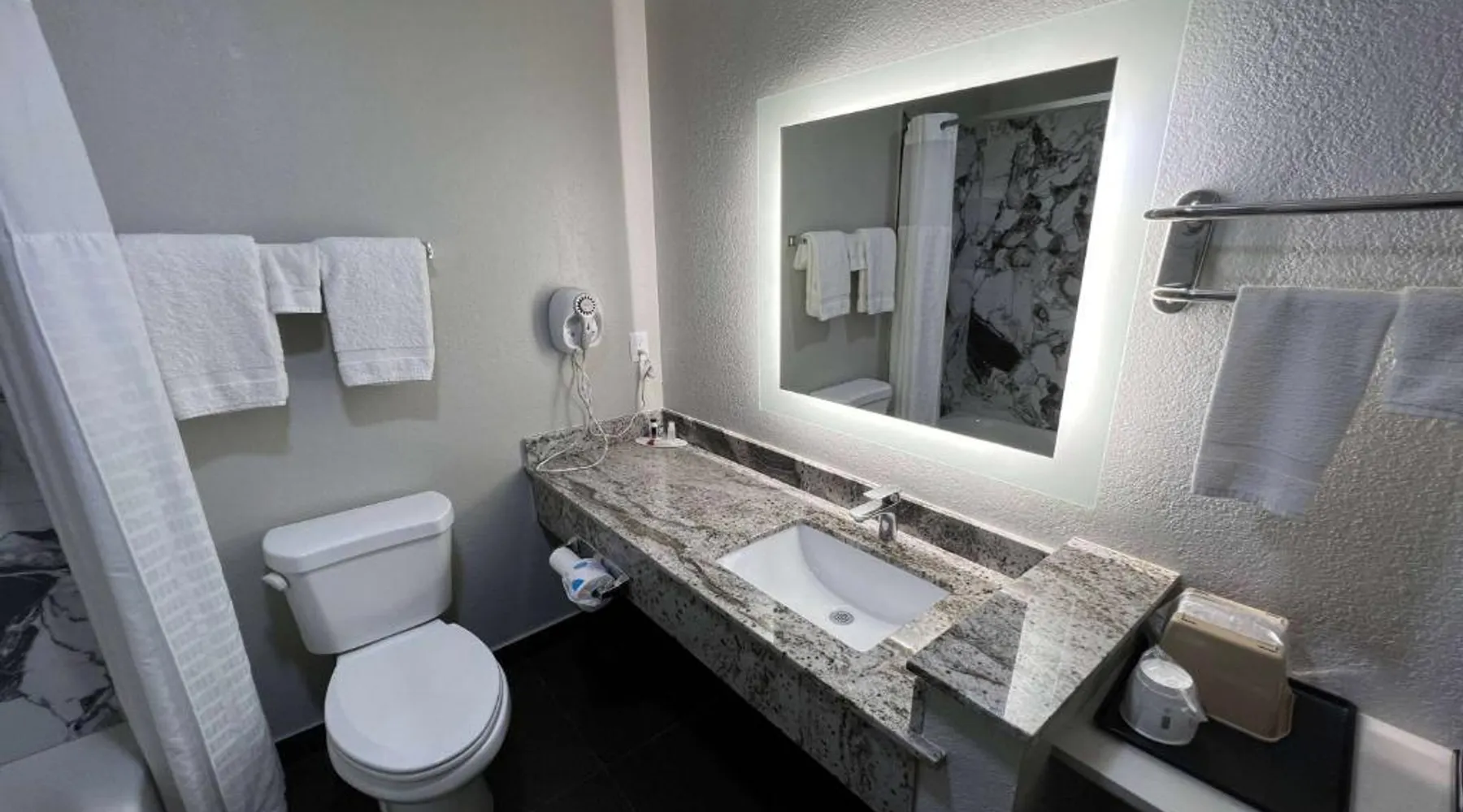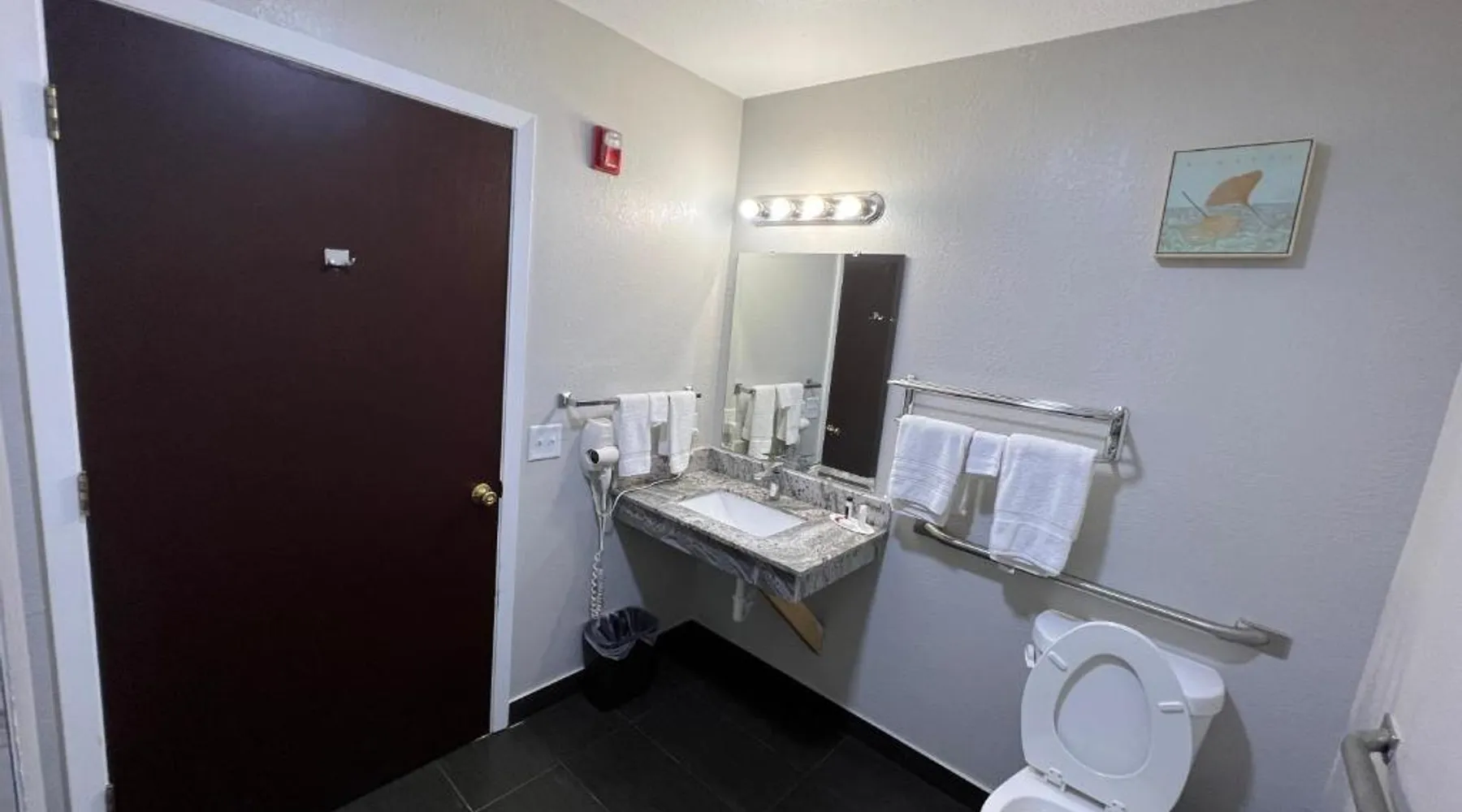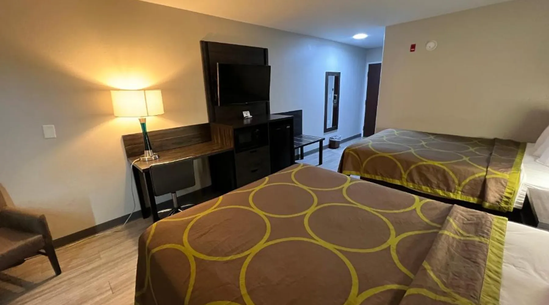 Comfortable Accommodations: Super 8 by Wyndham Lake Charles/Sulfur in Lake Charles offers family rooms with air-conditioning, private bathrooms, and free WiFi. Each room includes a refrigerator, work desk, and TV. Convenient Facilities: Guests benefit from a 24-hour front desk, business area, and free toiletries. Additional amenities include a sofa, microwave, and carpeted floors. Breakfast and Parking: A continental breakfast is served daily. The hotel provides free parking for all guests. Prime Location: Located 5 mi from Lake Charles Regional Airport, the hotel is near attractions such as McNeese State University (2.4 mi) and Lake Charles Historic District (2.5 mi). Guests appreciate the room cleanliness, convenient location, and value for money. This accessible room offers a desk, cable TV, microwave and refrigerator. Complimentary toiletries are provided. In the bathroom you will find an accessible bath or shower, shower chair and grab rails.