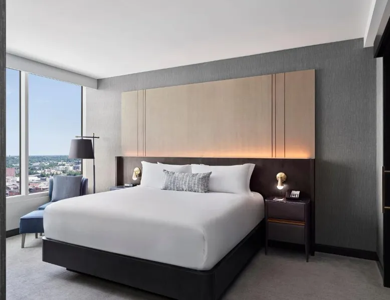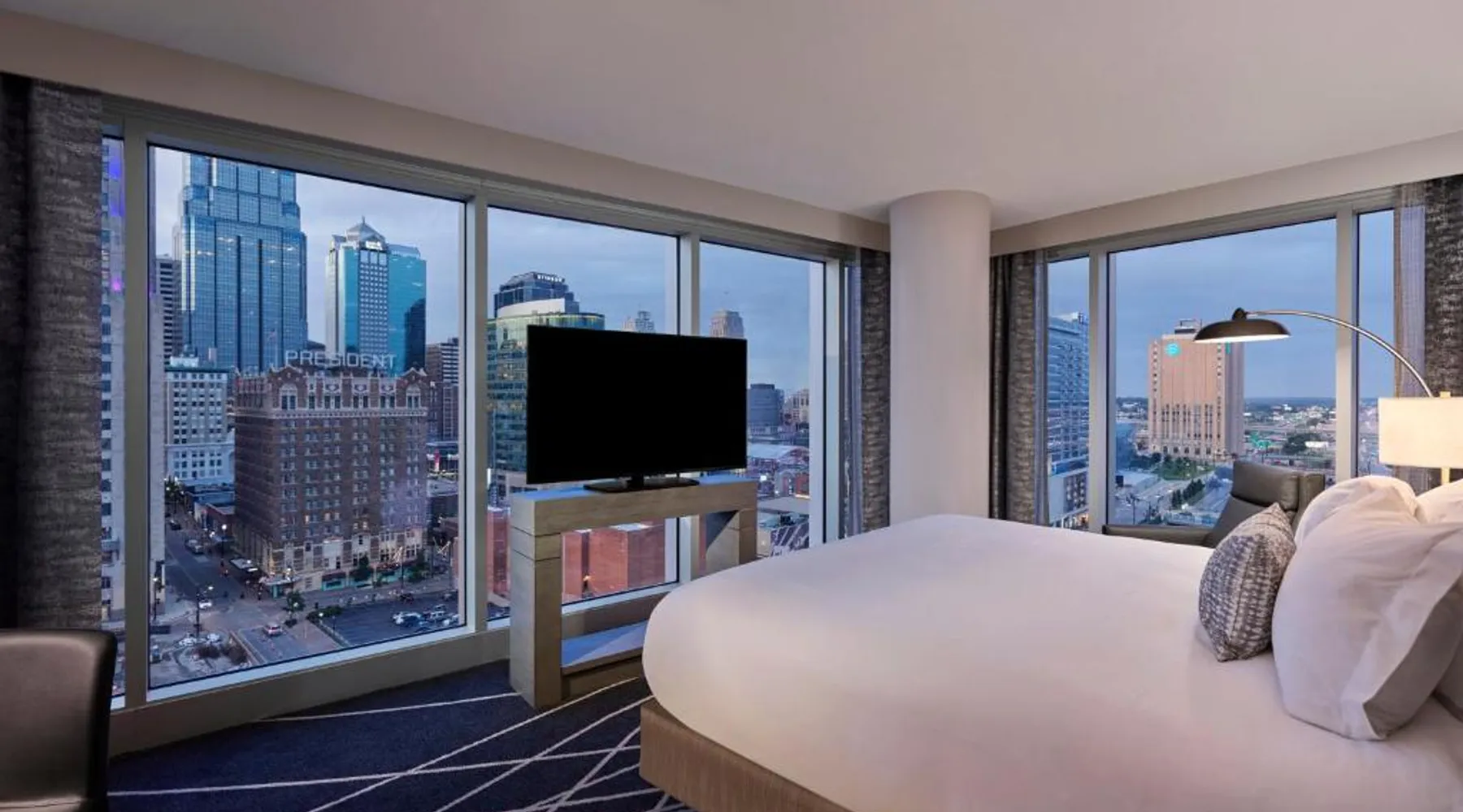 Comfortable Accommodations: Loews Kansas City in Kansas City offers family rooms with air-conditioning, private bathrooms, and city views. Each room includes a work desk, wardrobe, and free WiFi. Exceptional Facilities: Guests enjoy spa facilities, an indoor swimming pool, fitness center, terrace, restaurant, and bar. Additional amenities include a hot tub, lounge, and 24-hour front desk. Prime Location: Located 16 mi from Kansas City International Airport, the hotel is a short walk from Kansas City Convention Center and Union Station. Nearby attractions include Legoland Discovery Center and an ice-skating rink. Guest Satisfaction: Highly rated for its attentive staff, bar, and scenic location. The spacious triple room features air conditioning, a tea and coffee maker, a wardrobe, a safe deposit box and a TV.