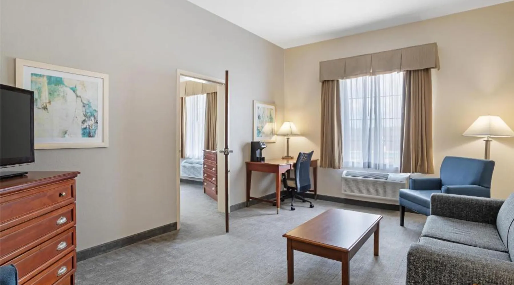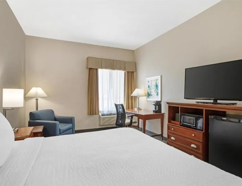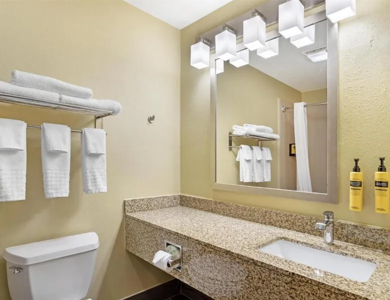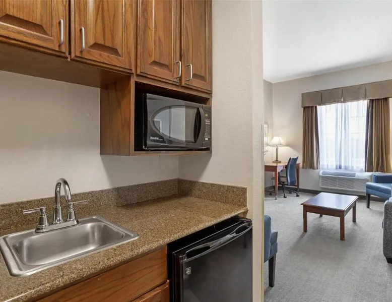 Comfortable Accommodations: Best Western Plus Executive Hotel & Suites in Sulfur offers family rooms with air-conditioning, tea and coffee makers, and free WiFi. Each room includes a work desk, refrigerator, and microwave. Exceptional Facilities: Guests can enjoy a fitness center, seasonal outdoor swimming pool, and outdoor seating area. Additional amenities include a minimarket, business area, and barbecue facilities. Convenient Location: Located 11 mi from Lake Charles Regional Airport, the hotel is near attractions such as Isle Of Capri Casino (5.6 mi) and Creole Nature Trail All-American Road (6.2 mi). Free on-site parking is available. Guest Satisfaction: Highly rated for its attentive staff, room cleanliness, and comfort, the hotel ensures a pleasant stay for all visitors. This room includes a sofa bed, microwave and refrigerator.