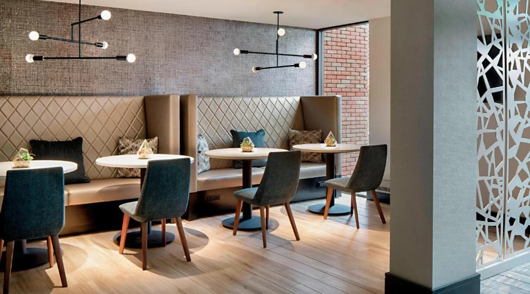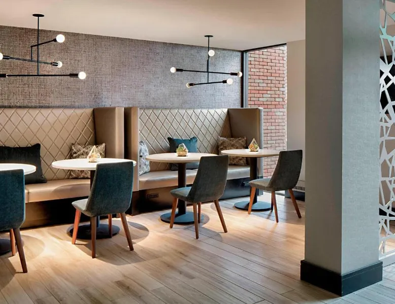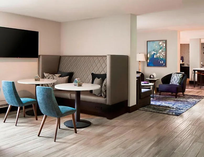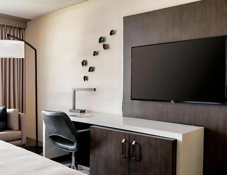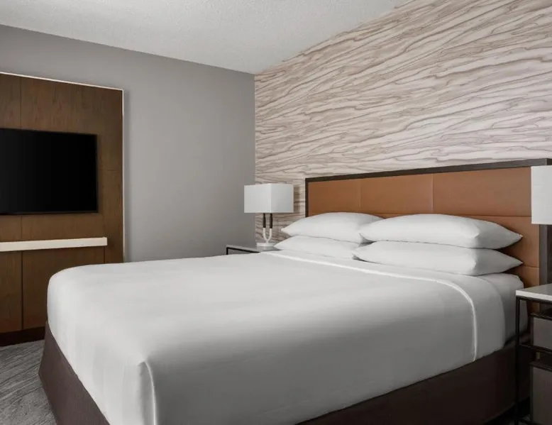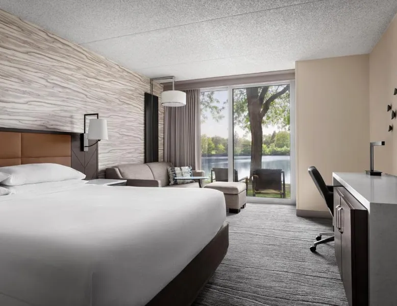 This Lincolnshire hotel offers an 18-hole golf course, award-winning theater and 5 on-site restaurants and lounges. O'Hare International Airport is within a 30 minutes’ drive of the hotel. Decorated with vibrant carpeting and wallpaper, each modern guest room at the Lincolnshire Marriott Resort includes a 25-inch cable TV. A spacious work desk and a seating area with leather chairs are also provided in every room. Marble bath vanities are also featured in all rooms. Guests can enjoy the indoor pool or the outdoor pool at the Lincolnshire Marriott. A fitness center with state of the art cardiovascular equipment is also offered on site. King's Wharf Restaurant offers prime steaks and fresh seafood. The Fairfield Inn Restaurant serves American cuisine for breakfast, lunch and dinner. There is also a bar lounge that offers quick bites and a coffee bar. This room has a cable TV, desk and coffee maker. The room includes Concierge Lounge access featuring complimentary snacks, continental breakfast and nonalcoholic drinks. Business services and alcoholic drinks are available for a fee.