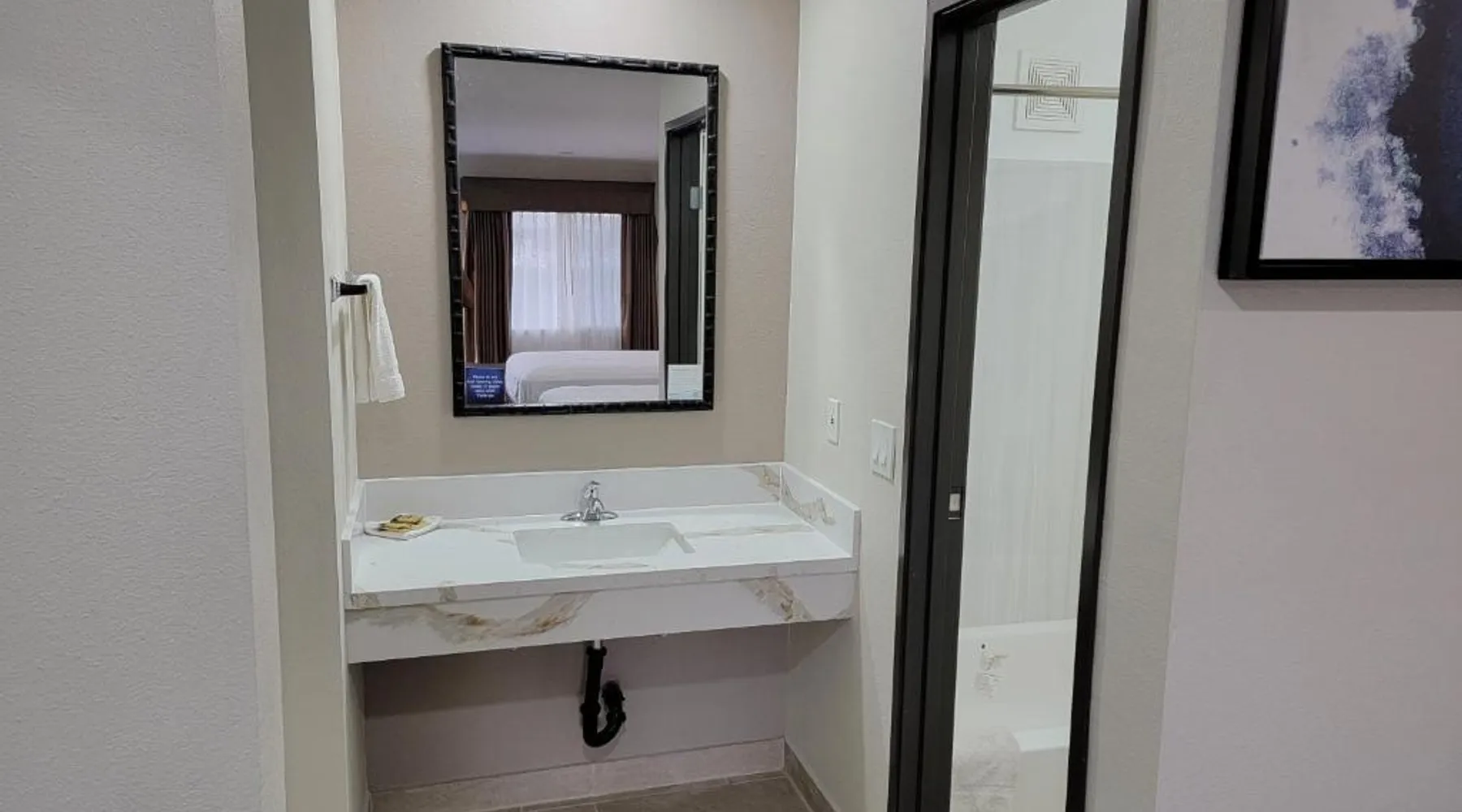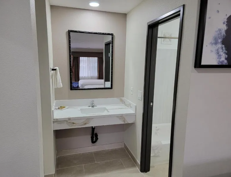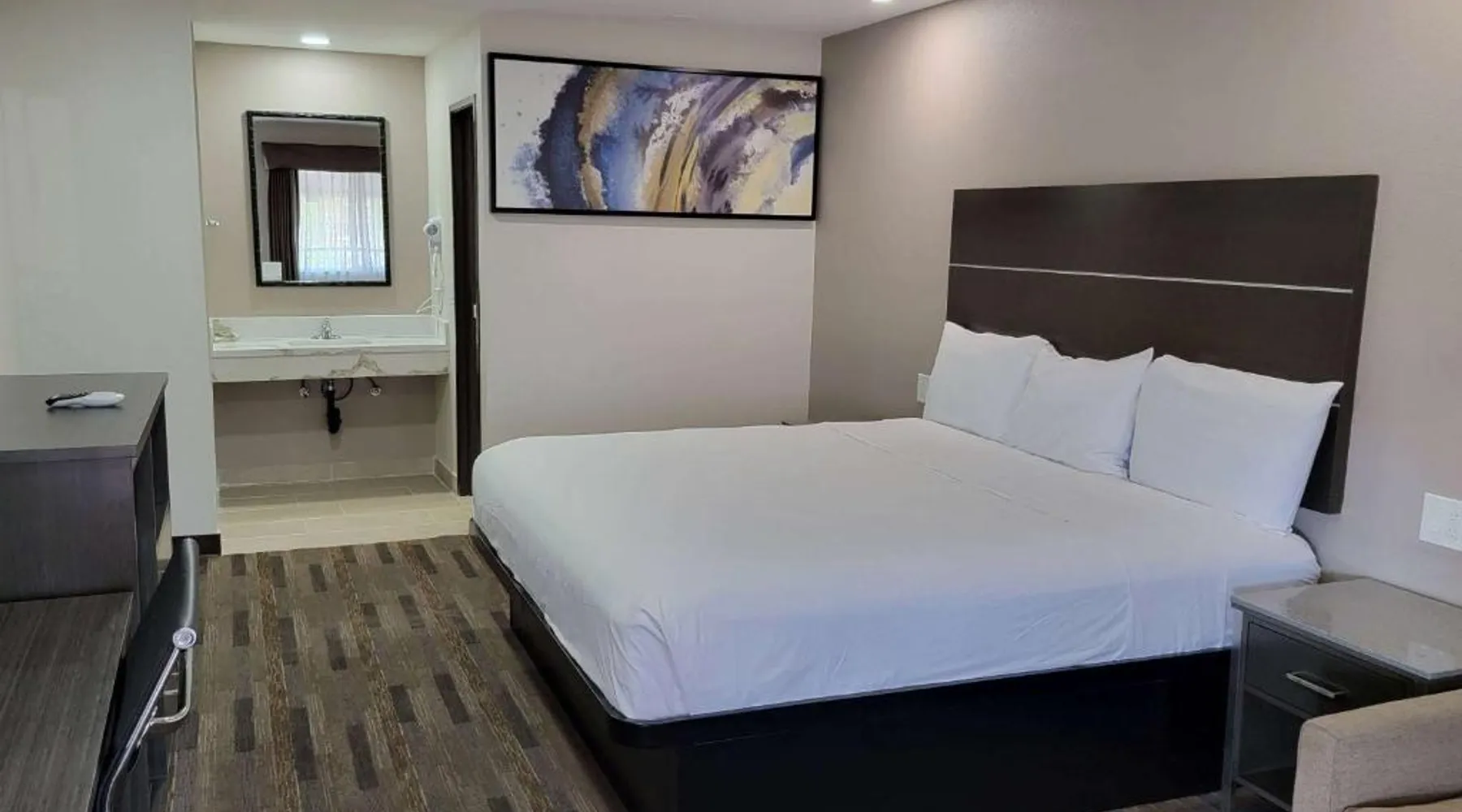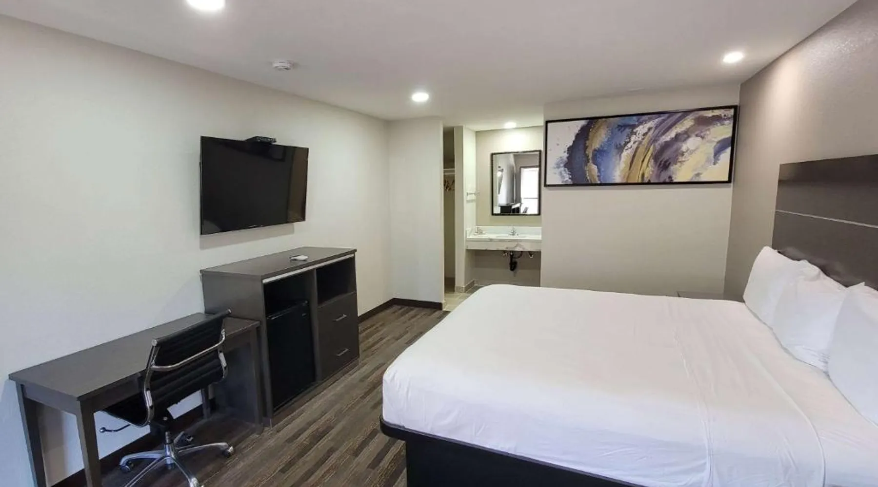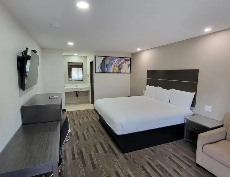 Travelodge Buena Park is located in Buena Park, 2 mi from Knotts Berry Farm. The rooms are equipped with a private bathroom equipped with a bath or shower. There is a 24-hour front desk at the property. A microwave is available in the office. The nearest airport is Long Beach Airport, 9.3 mi from the property. This accessible room features air conditioning and flat-screen TV.