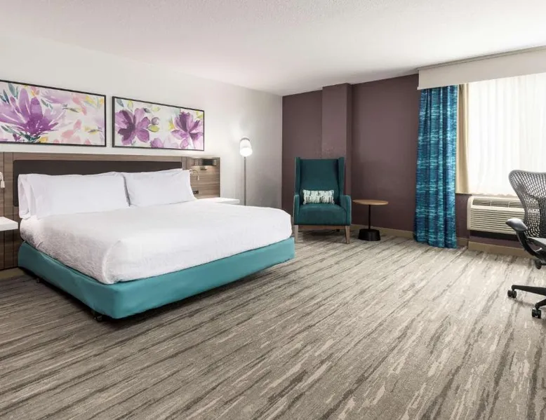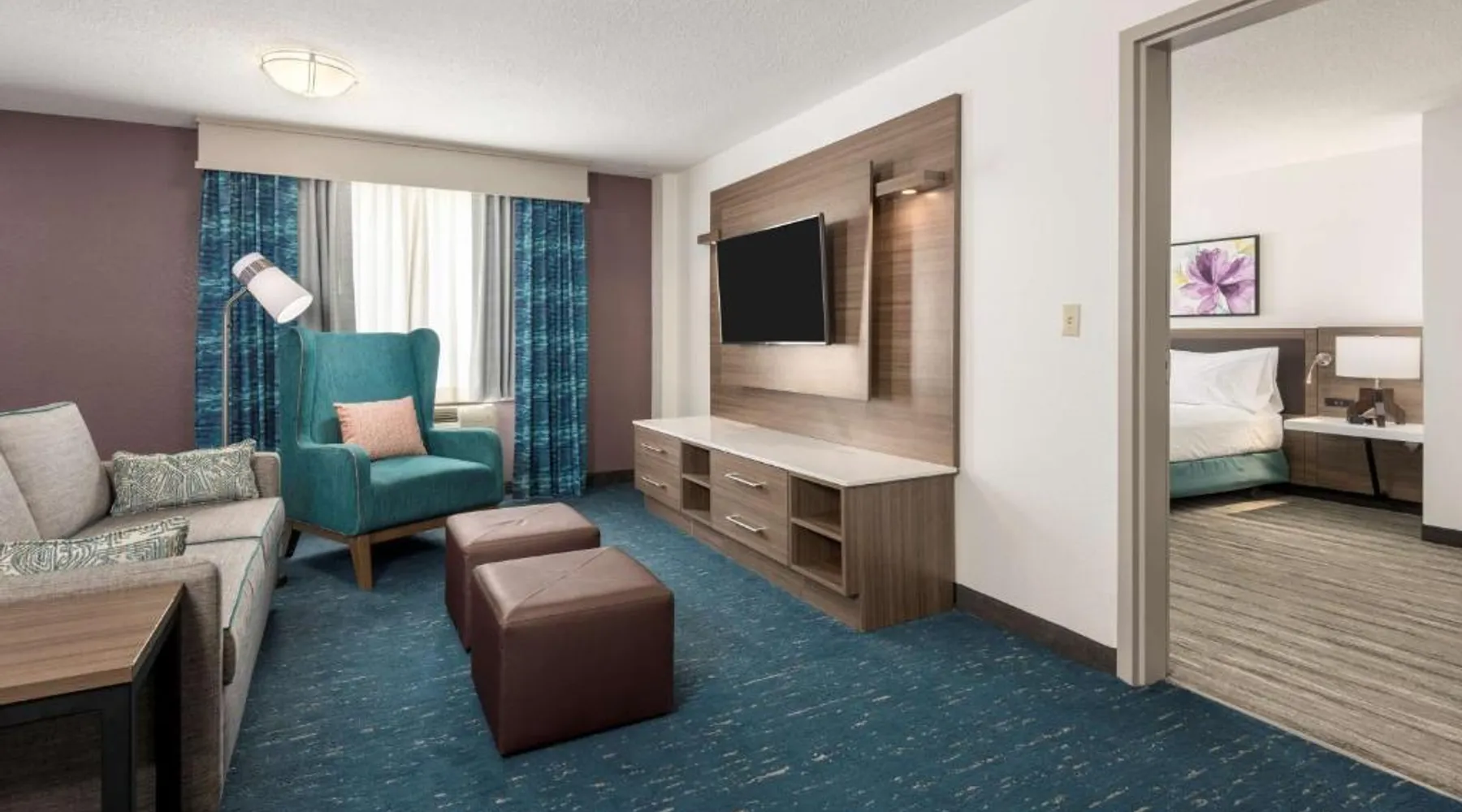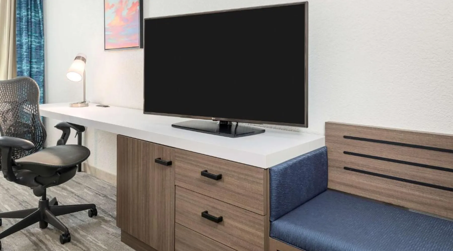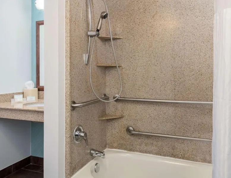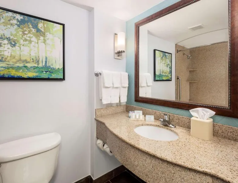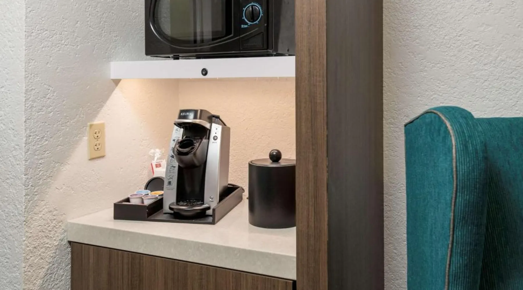 Comfortable Accommodations: Rooms feature air-conditioning, private bathrooms, tea and coffee makers, hairdryers, refrigerators, work desks, free toiletries, microwaves, and TVs. Additional amenities include baths, sofa beds, seating areas, and showers. Dining and Leisure: The family-friendly restaurant serves American cuisine for dinner. Guests can also enjoy a bar and free WiFi. The hotel offers a fitness center, sun terrace, and outdoor seating area. Convenient Location: Located in Lafayette, the hotel is 3.7 mi from the airport. Nearby attractions include Cajun Field Football Stadium (less than 0.6 mi), Cajundome Convention Center (1969 feet), and M.L. Tigue Moore Field (12-minute walk). Guests appreciate the location, staff, and service support. A seating area with a flat-screen TV is featured in this room. It also includes a microwave, fridge, and coffee maker.