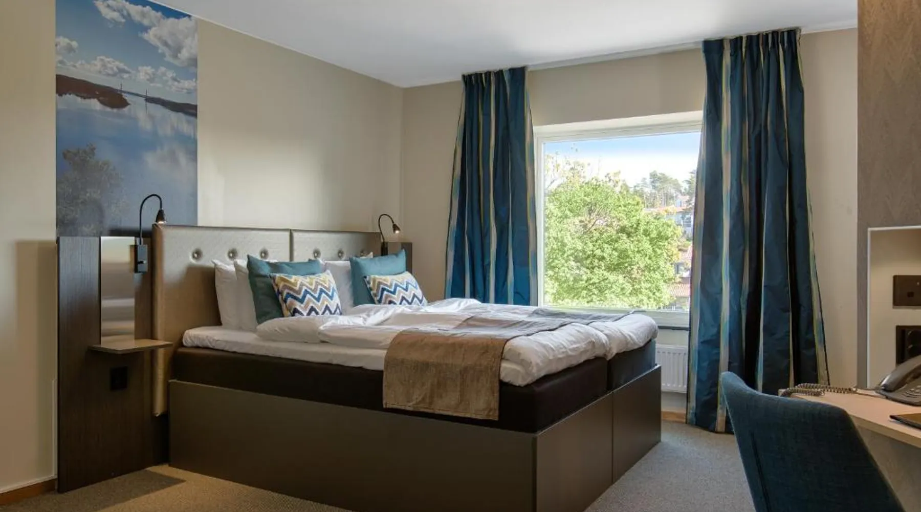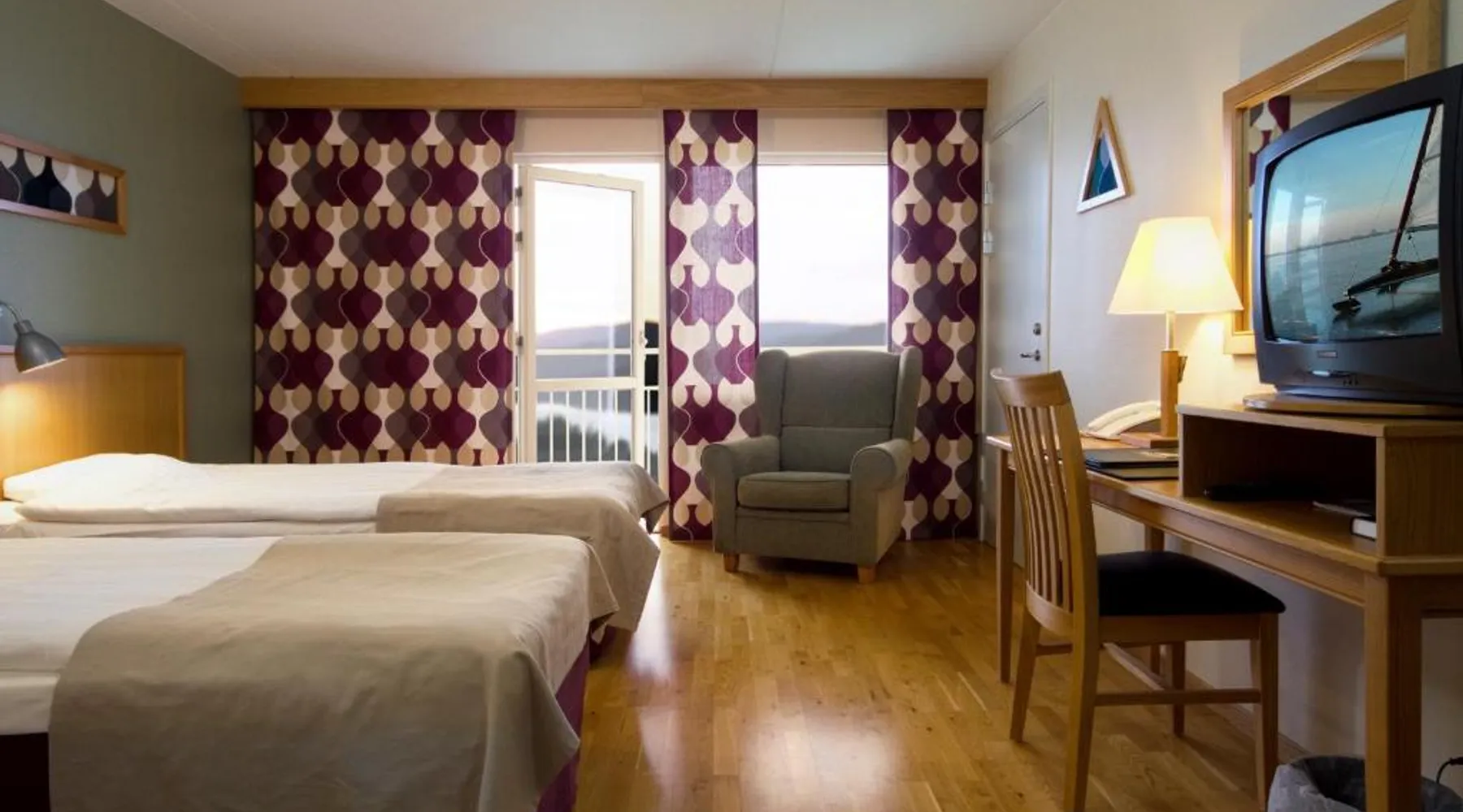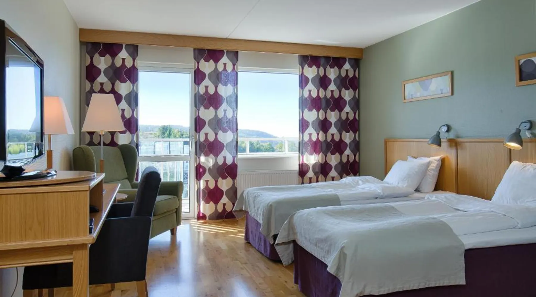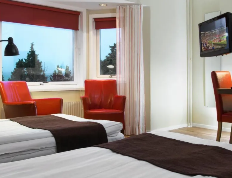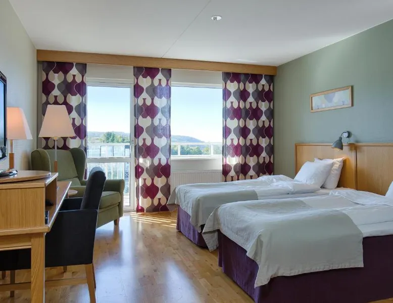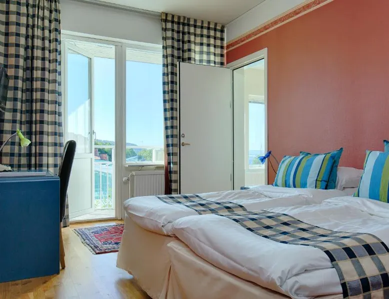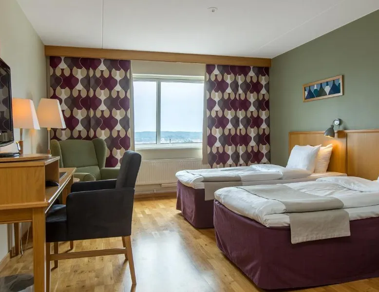 Located next to the Byfjord in Uddevalla, Hotell Bohusgården features a spa and wellness area. WiFi and parking services are free of charge. All rooms have a TV. Bohusgården Hotell’s rooms also feature a private bathroom and bright, modern décor. Some have a balcony offering views of the fjord. The spa at Bohusgården Hotell & Konferens includes a swimming pool, whirlpool, herbal baths, sun therapy, outdoor tub, gym and sauna. Entry can be purchased with the reception. The on-site restaurant is open all week during summer and on Fridays and Saturdays for the rest of the year. Breakfast is served throughout the week. Gustavsberg Nature Reserve is a near neighbor of Bohusgården, while Uddevalla Östra Train Station is 5 minutes’ drive away. A seating area with a flat-screen TV, a desk, a balcony and a private bathroom are available in this twin/double room. The unit has 2 beds.