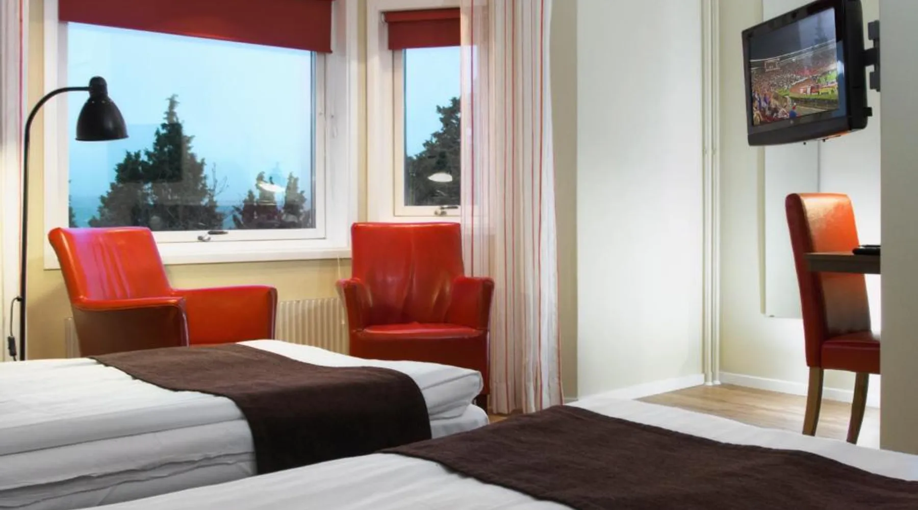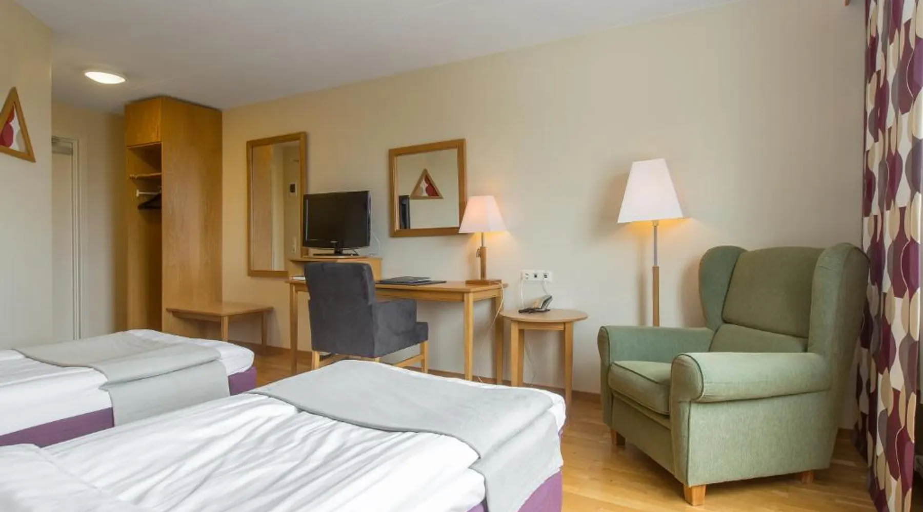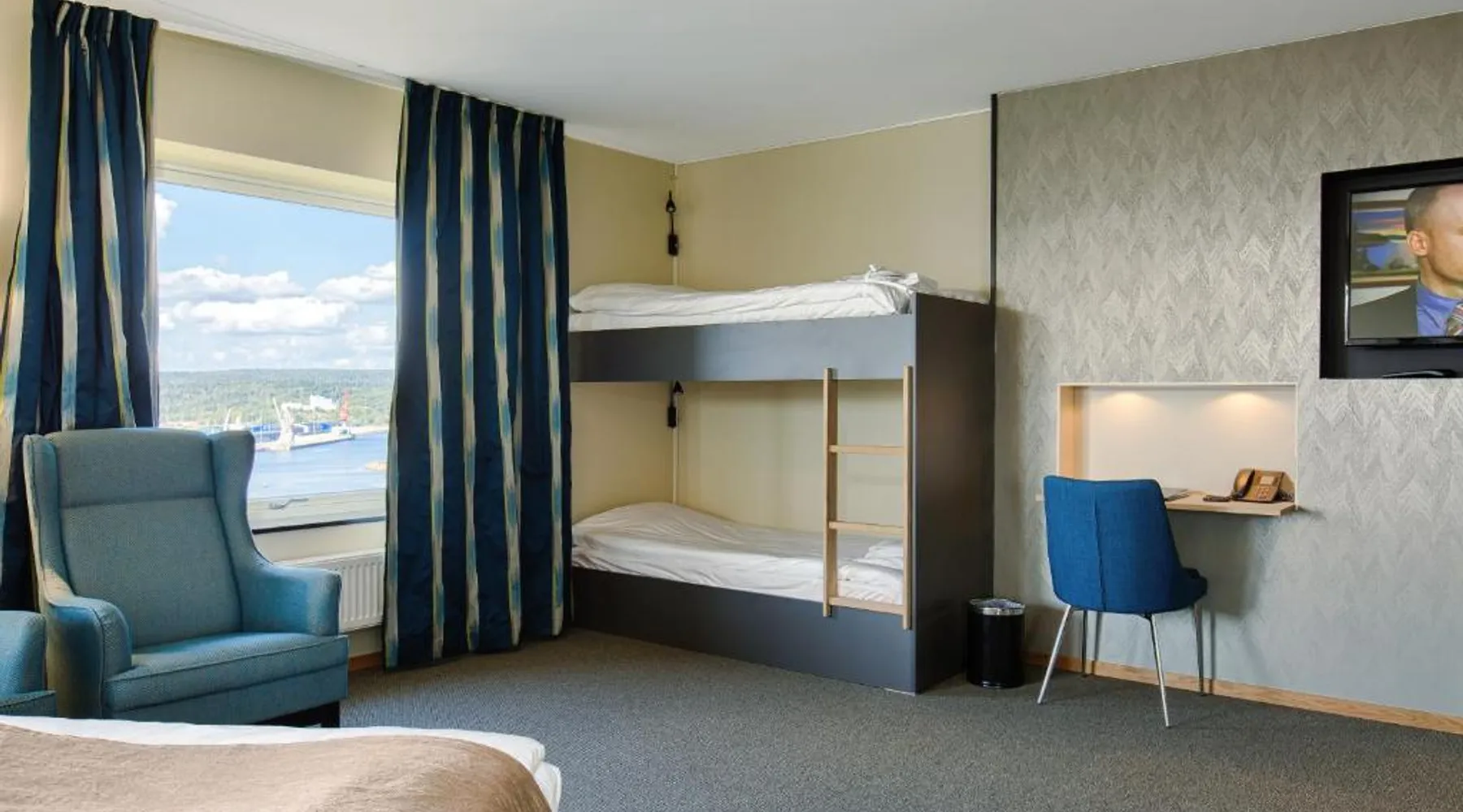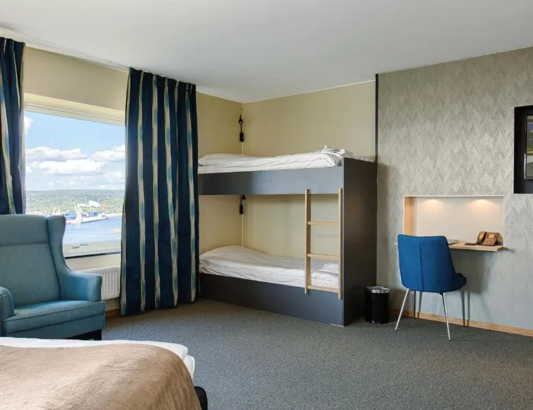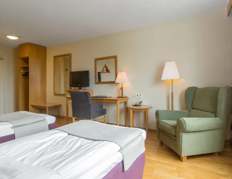 Located next to the Byfjord in Uddevalla, Hotell Bohusgården features a spa and wellness area. WiFi and parking services are free of charge. All rooms have a TV. Bohusgården Hotell’s rooms also feature a private bathroom and bright, modern décor. Some have a balcony offering views of the fjord. The spa at Bohusgården Hotell & Konferens includes a swimming pool, whirlpool, herbal baths, sun therapy, outdoor tub, gym and sauna. Entry can be purchased with the reception. The on-site restaurant is open all week during summer and on Fridays and Saturdays for the rest of the year. Breakfast is served throughout the week. Gustavsberg Nature Reserve is a near neighbor of Bohusgården, while Uddevalla Östra Train Station is 5 minutes’ drive away. A seating area with a flat-screen TV, a desk, a balcony and a private bathroom are available in this twin/double room. The unit has 2 beds.