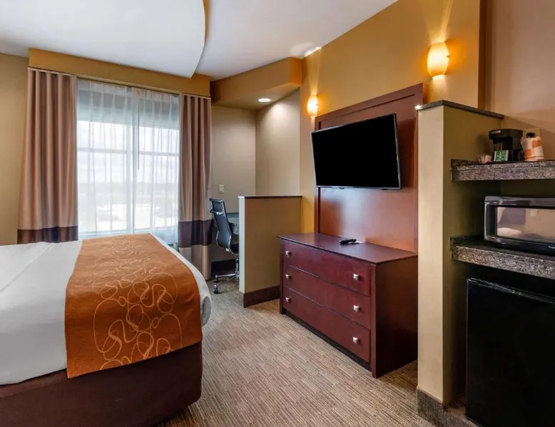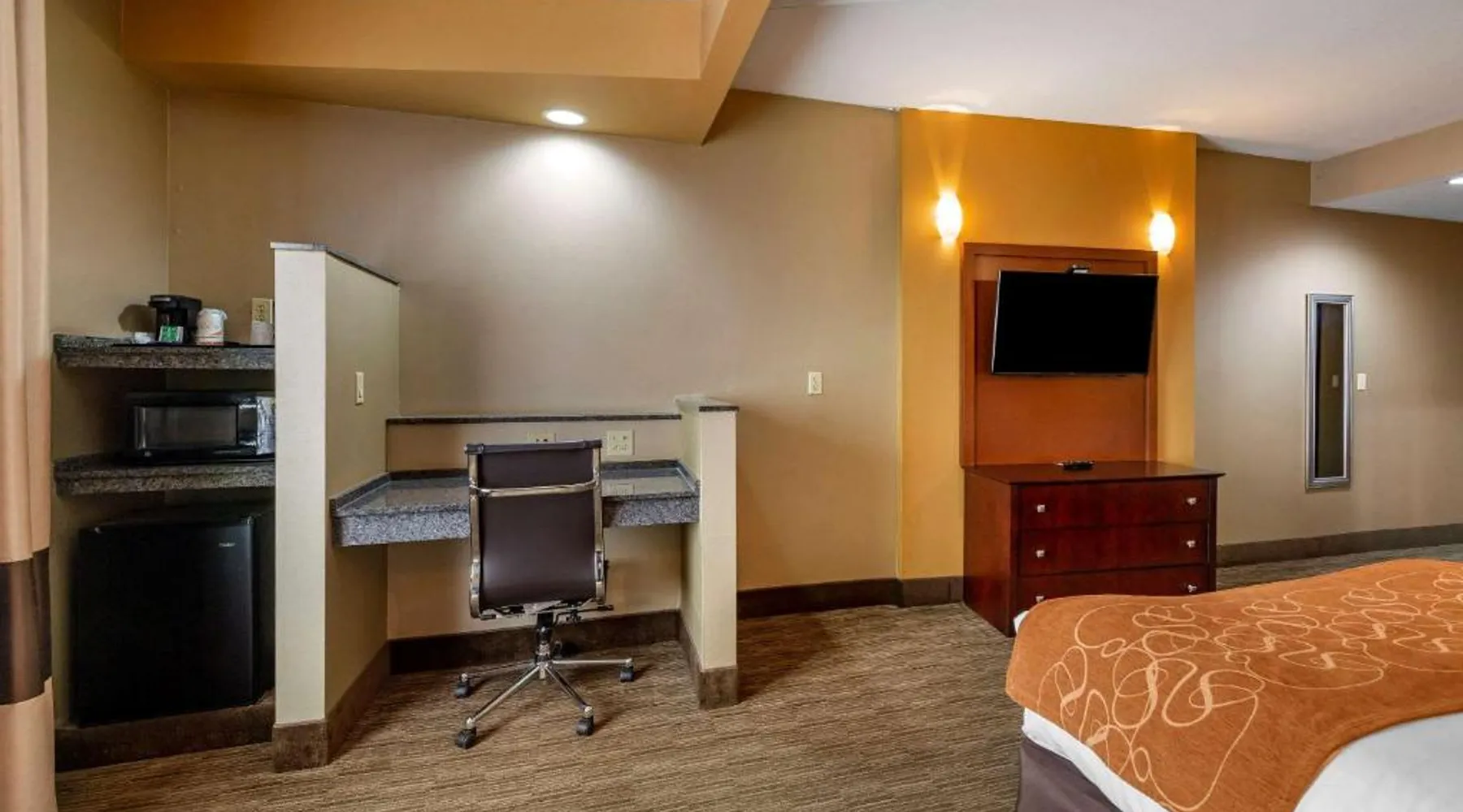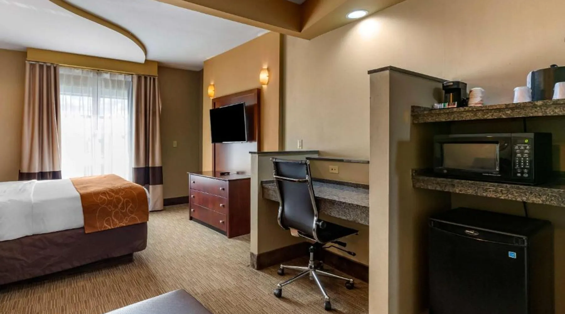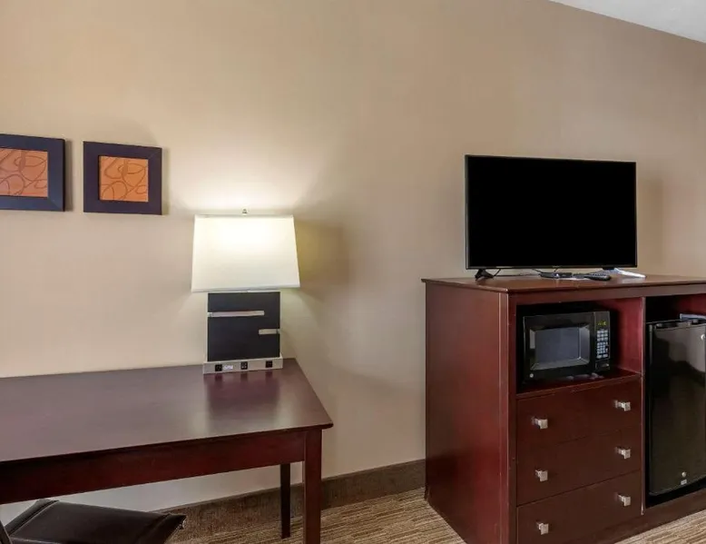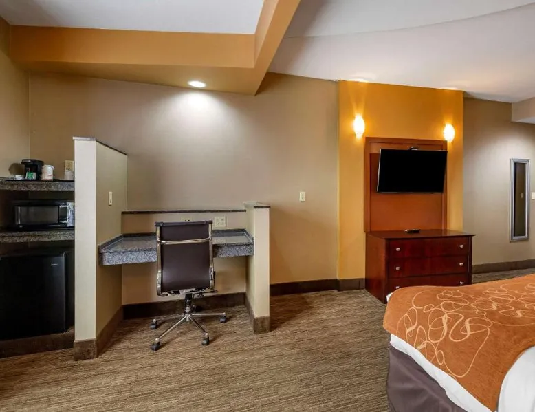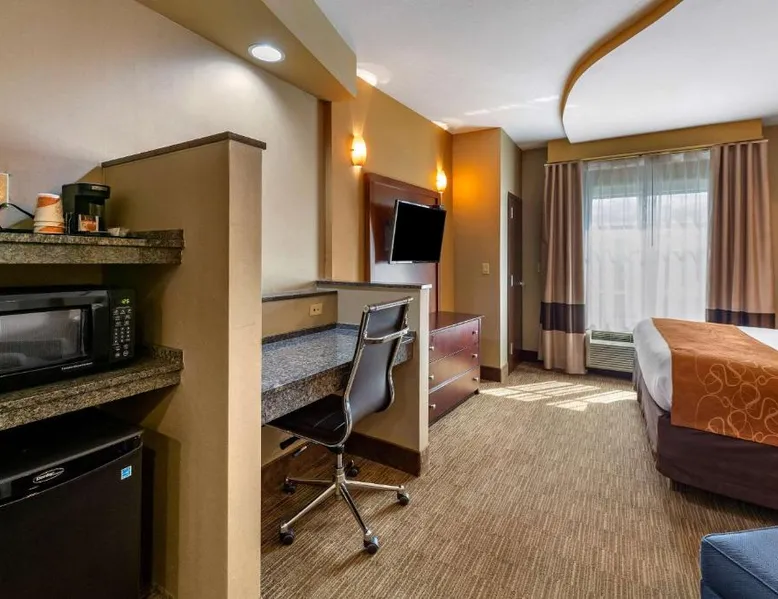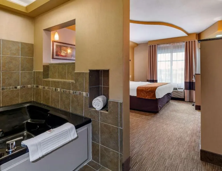 The stylishly designed Comfort Suites hotel is an ultimate luxury hotel. The hotel is conveniently located just one mile from Fort Meigs. This hotel is minutes from Bowling Green State University, the Stranahan Theater, the Toledo Zoo, the SeaGate Convention Center and COSI Toledo hands-on science museum. Additional nearby points of interest include the Toledo Speedway, Raceway Park harness racetrack, the Toledo Botanical Garden, Valentine Theater and Fifth Third Field. The Toledo Express Airport is 11 miles away. Many shopping opportunities are located minutes from this Ohio hotel. A variety of restaurants is within walking distance. Hotel amenities and features include:Free wired and wireless high-speed Internet access, board room and state-of-the-art fitness center. Your Morning Breakfast is full of hot options to start your day. Enjoy our free hot breakfast featuring eggs, meat, yogurt, fresh fruit, cereal and more, including your choice of hot waffle flavors. If you're leaving early, a Your Suite Success Grab & Go bag is available for the two hours prior to breakfast. All architecturally designed suites include:32-inch LCD television, luxurious bedding, stylish leather sofas and gallery lighting. Our whirlpool suites feature a walk-in spa rain shower with multiple shower heads and two 32-inch LCD televisions. This suite features a private bathroom and air conditioning. This suite provides a flat-screen TV.